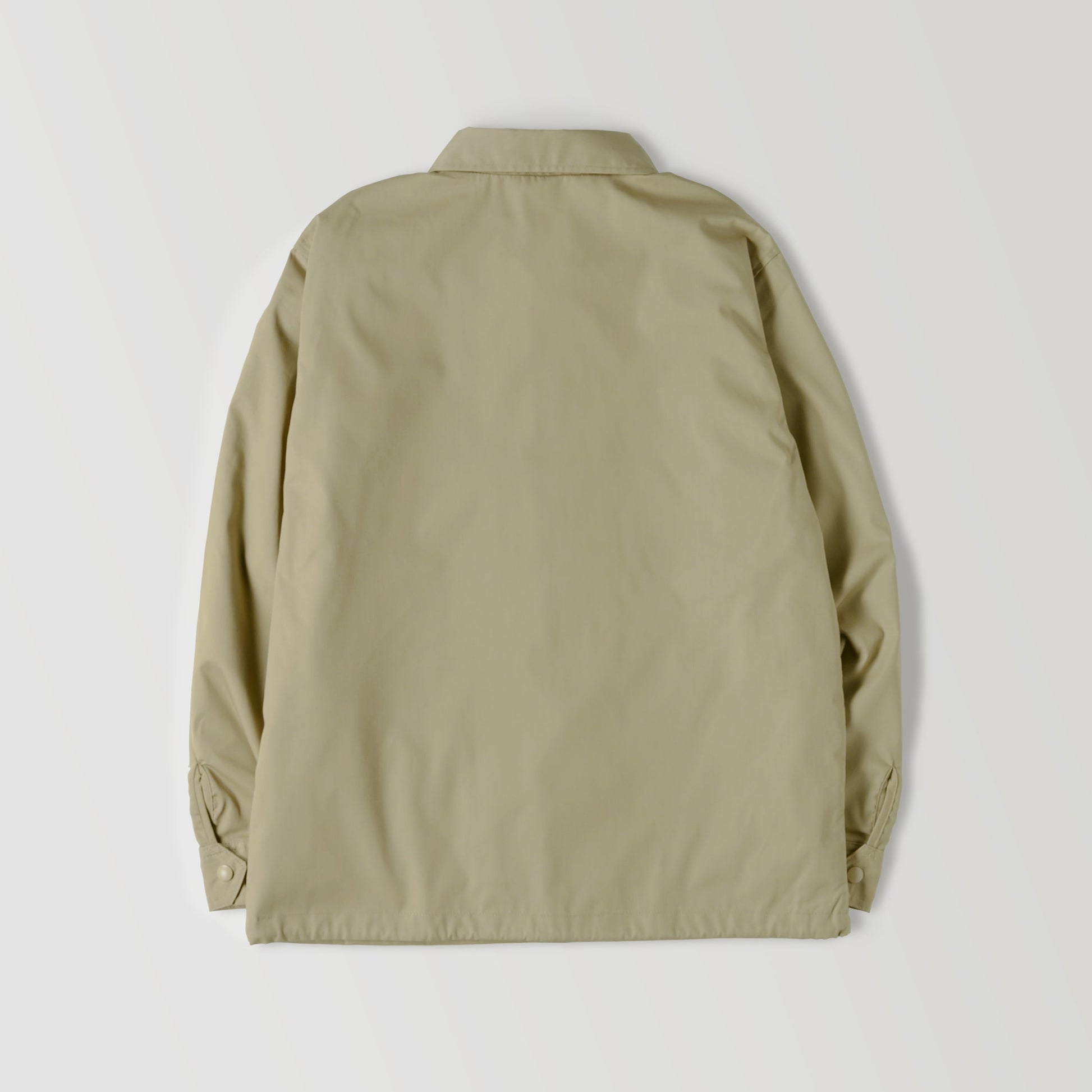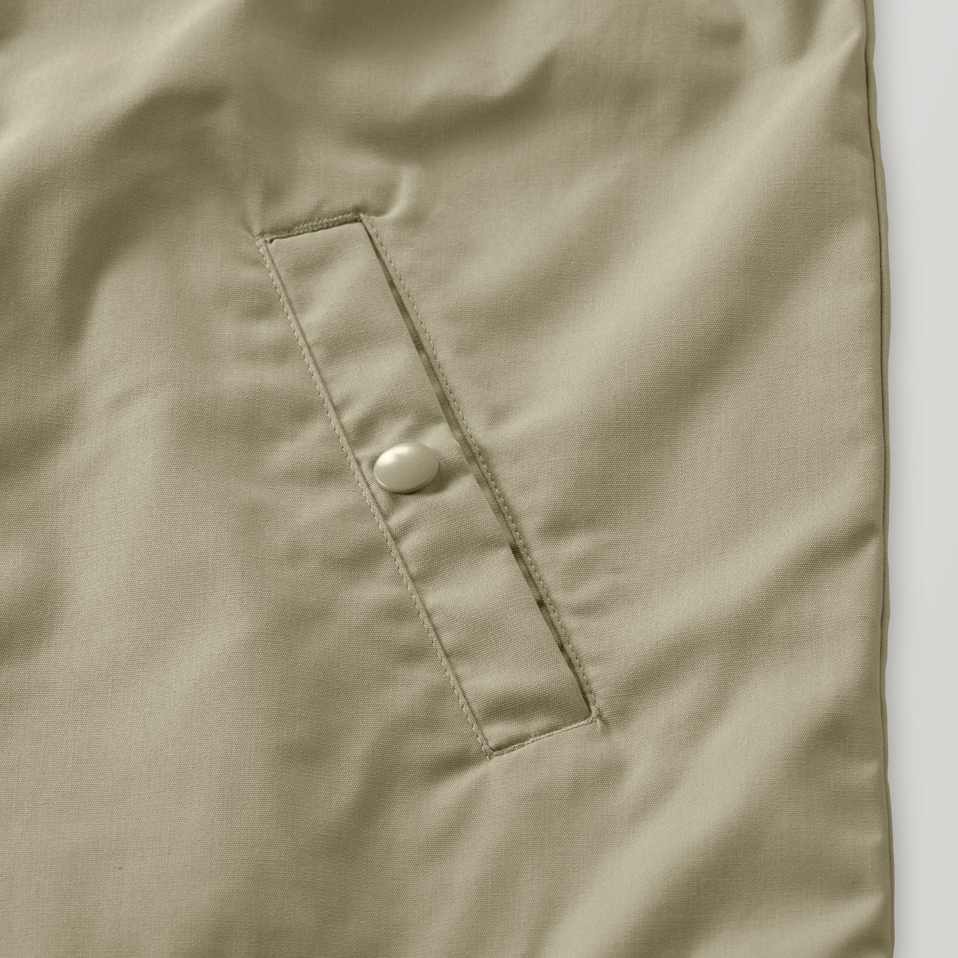 吸湿性と防しわ性のあるウェザー生地を使用したコーチジャケットです。 撥水加工を施した表地は水や油を弾くので汚れにくく、裏地付きなので保温性に優れています。 素材も軽いので羽織やすく、ポケットについたスナップボタンの細かい配慮も魅力の利便性の良いジャケットです。