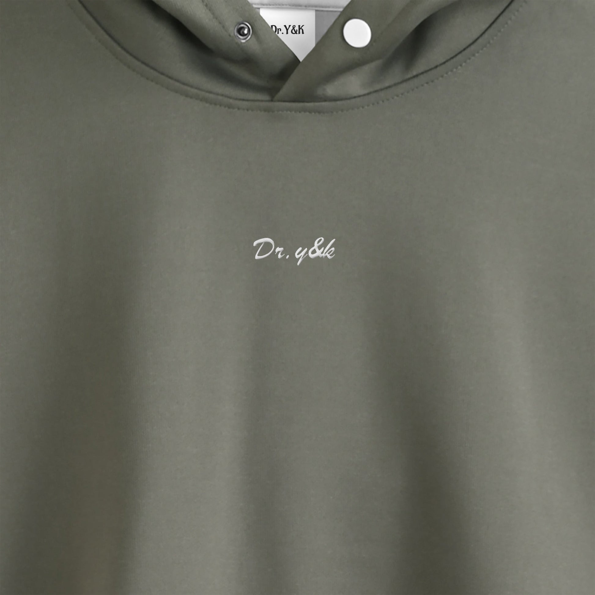 フード前部分にスナップボタンをあしらったアクティブパーカー。 柔らかく弾力があり快適な質感の生地。 紐ではないスナップボタンで、個性を演出できるアイテム。