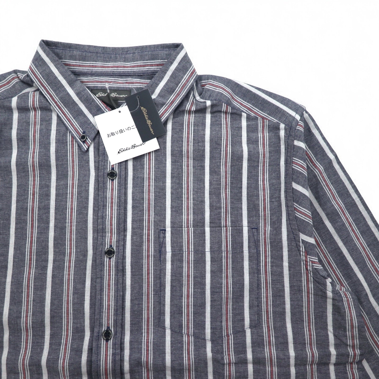 Eddie Bauer ダブルクロス ボタンダウンシャツ L ブルー コットン ストライプ 未使用品