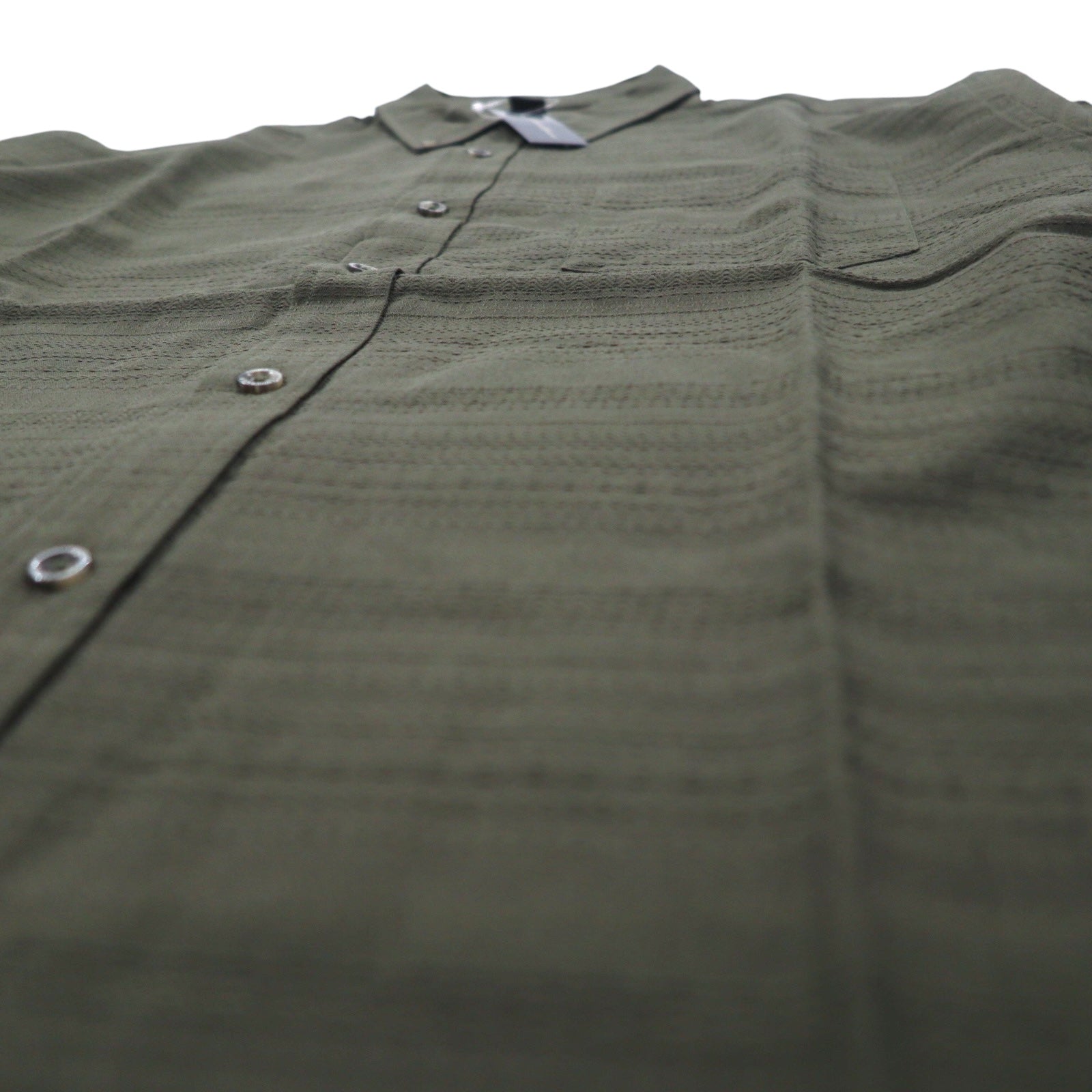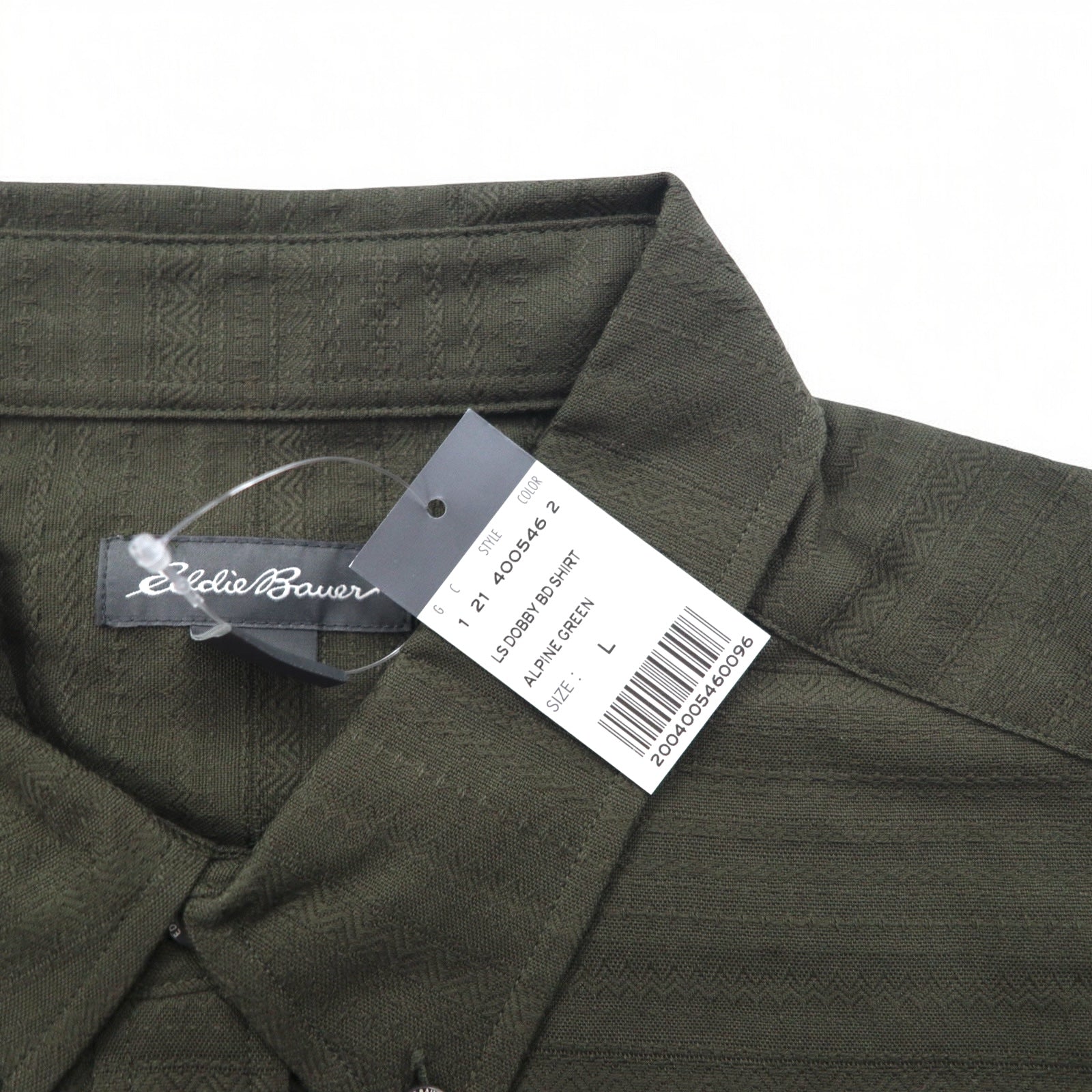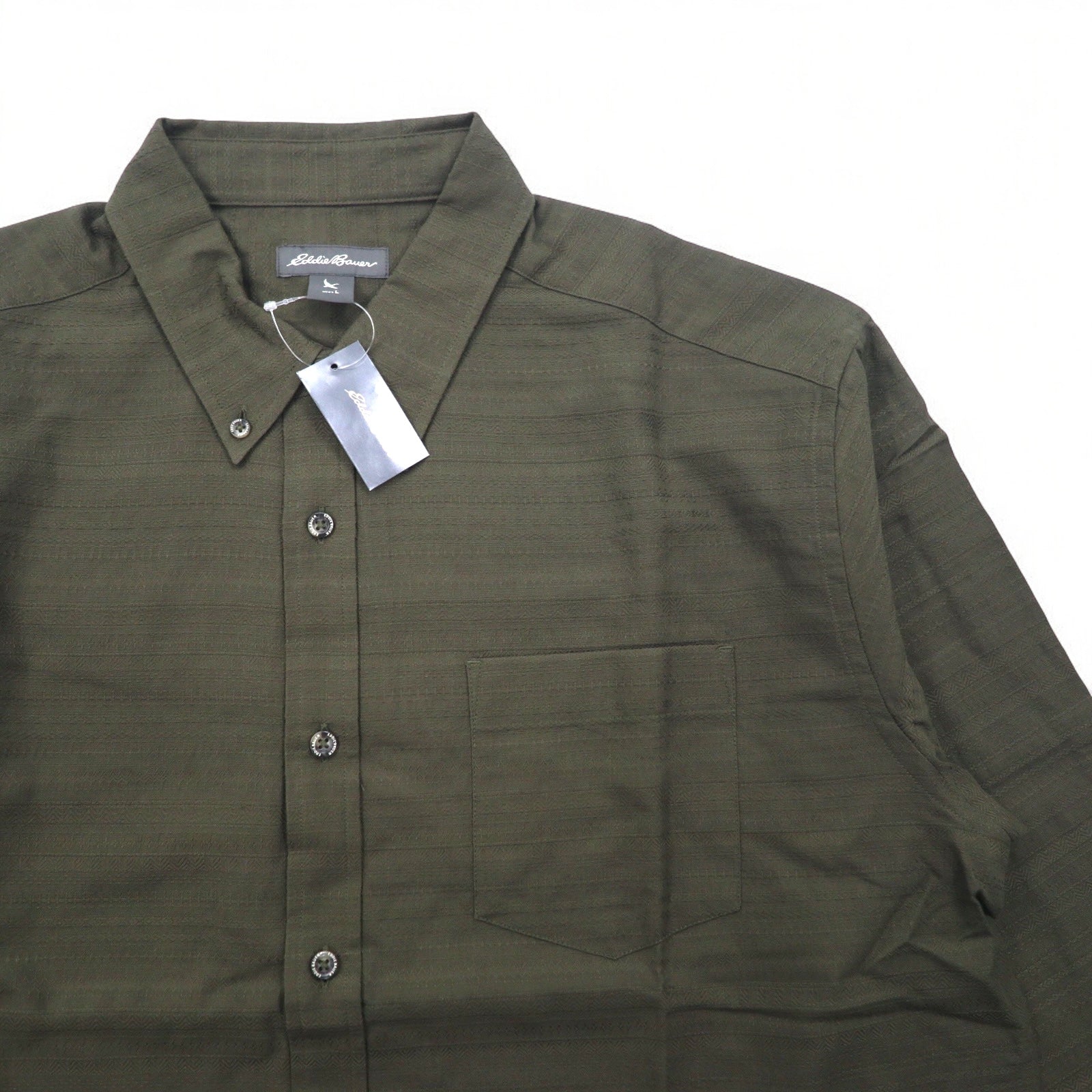 Eddie Bauer ドビー織 ボタンダウンシャツ L カーキ コットン 総柄 未使用品
