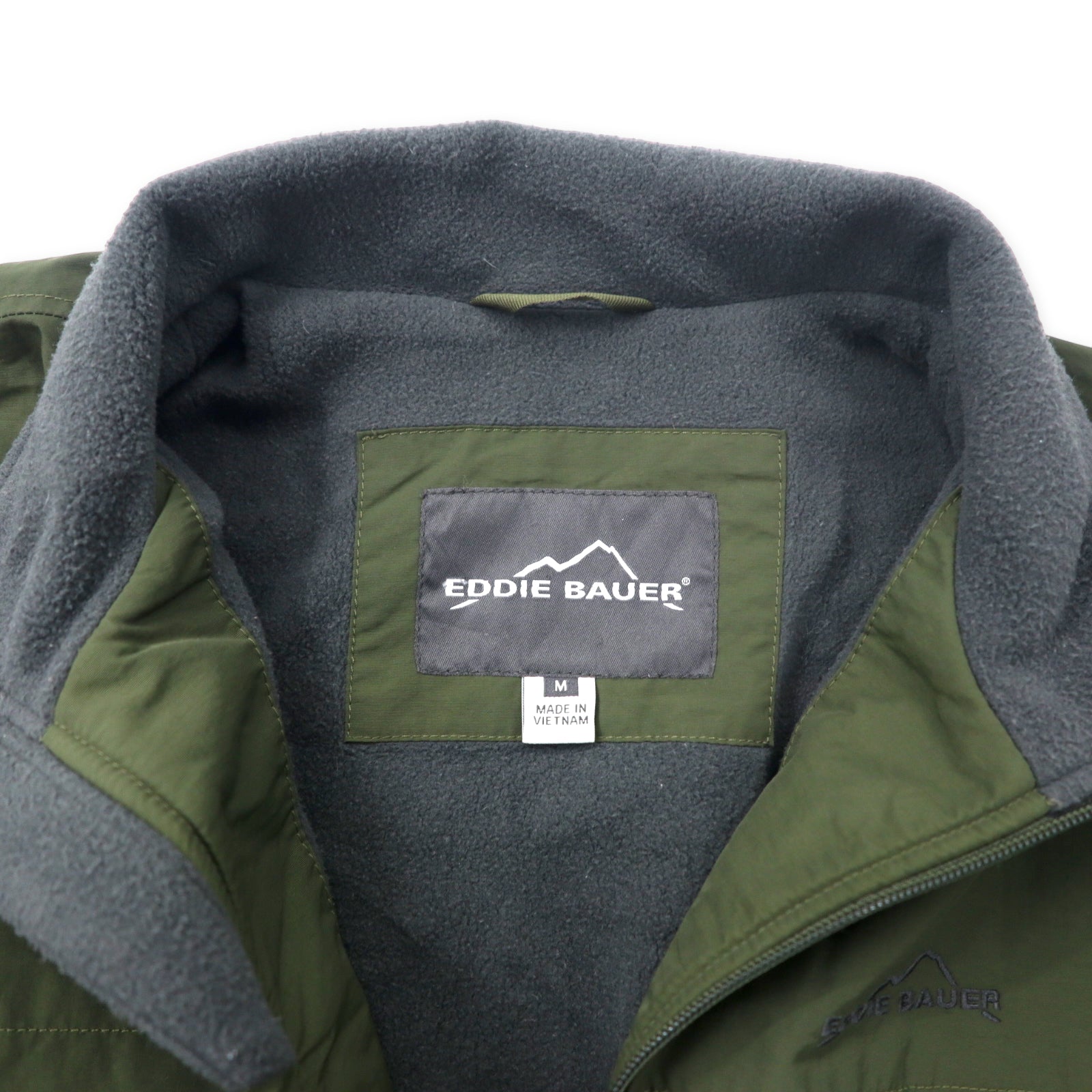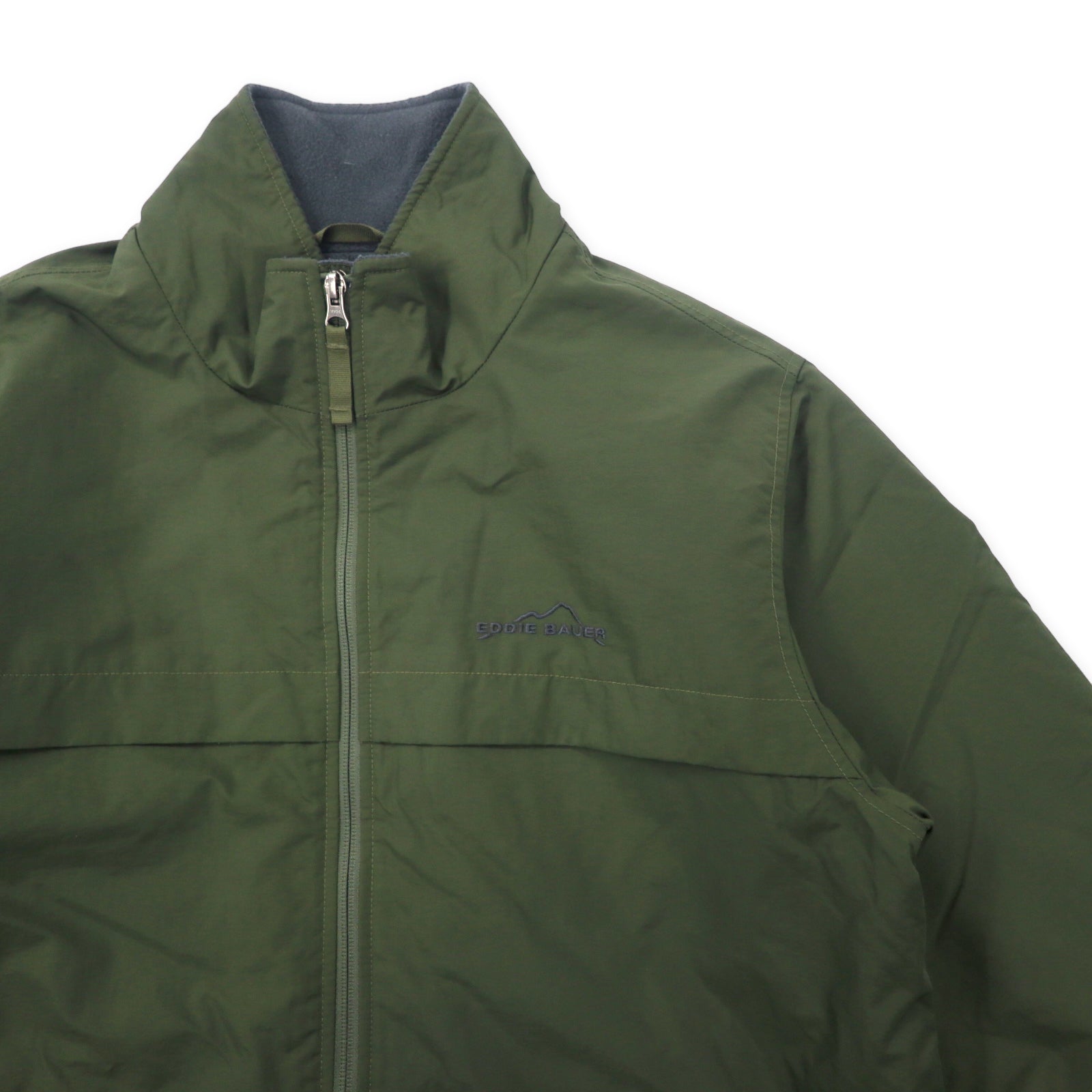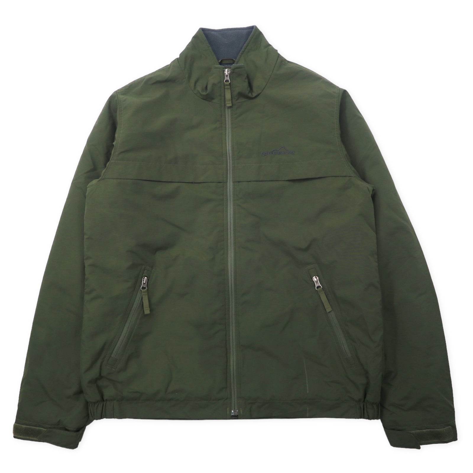 Eddie Bauer フリースライニング ナイロンジャケット M カーキ ワンポイントロゴ刺繍