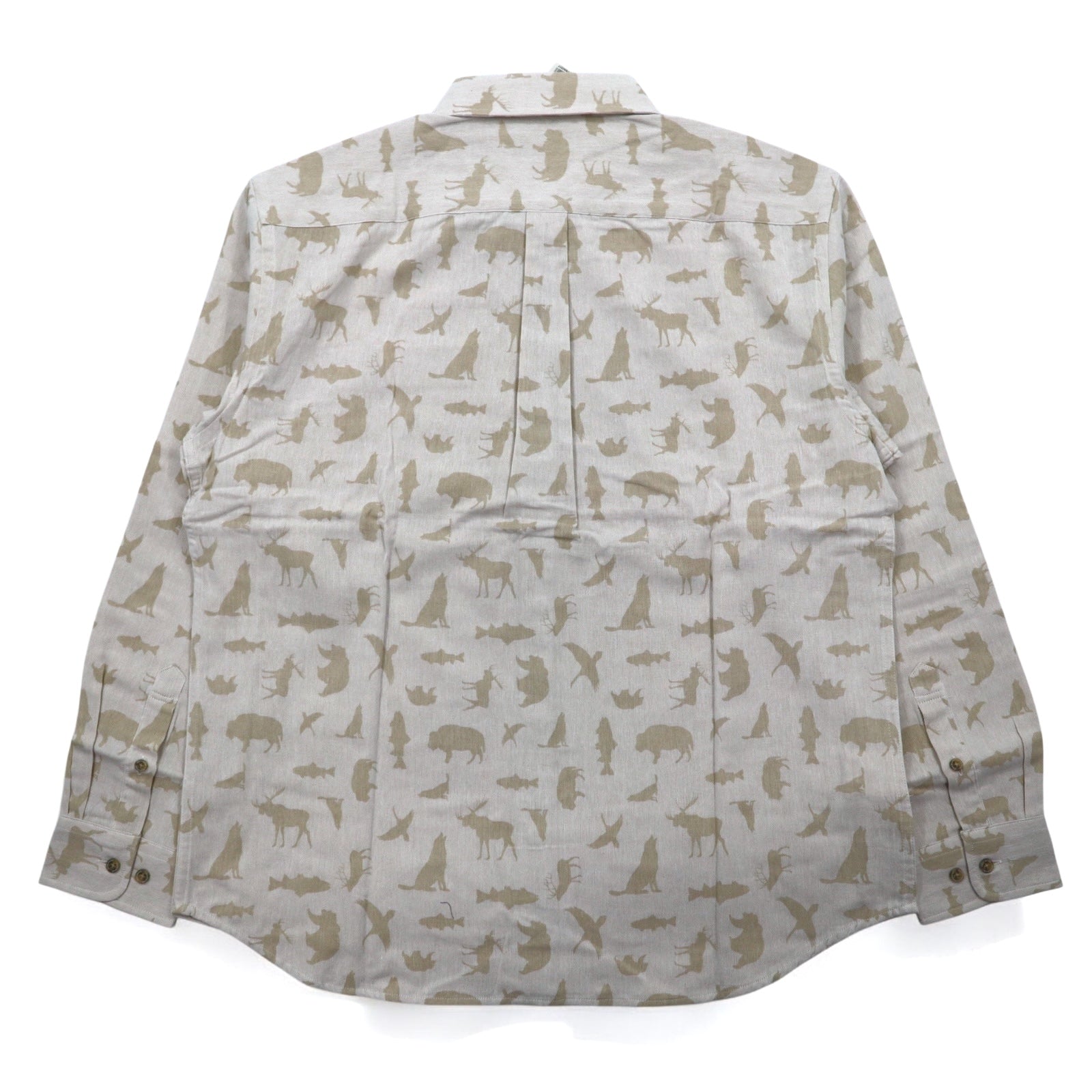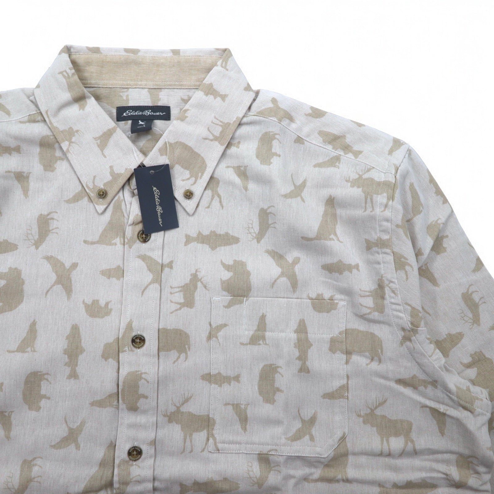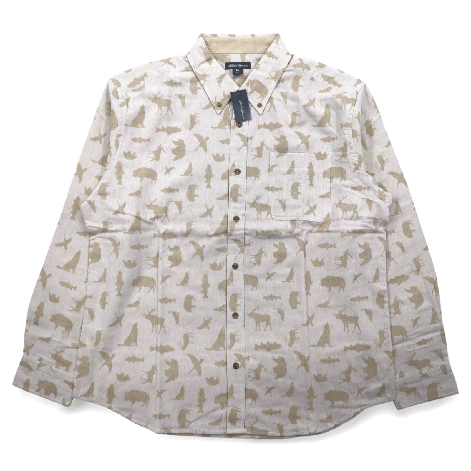 Eddie Bauer ボタンダウンシャツ L ベージュ コットン 総柄 アニマル 未使用品