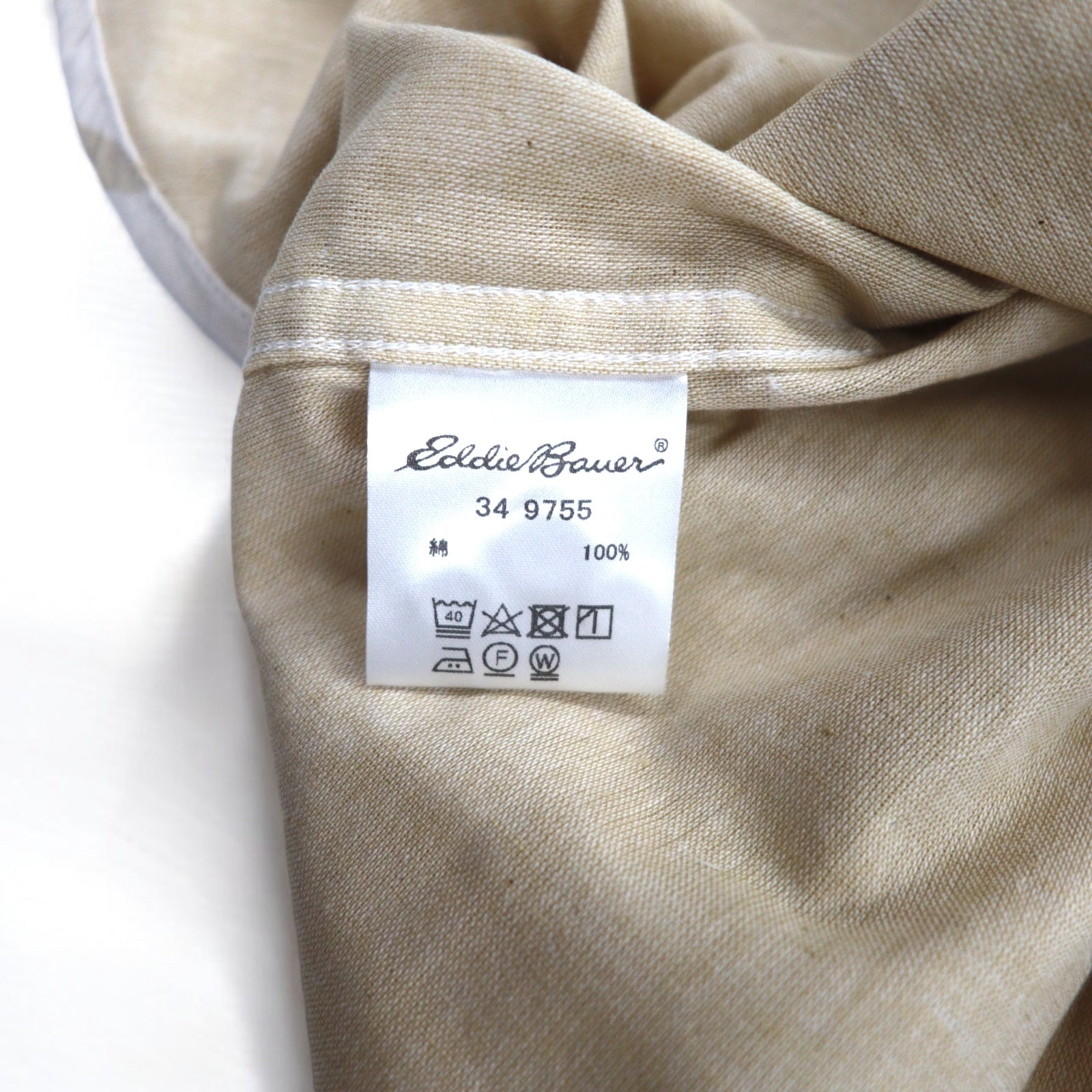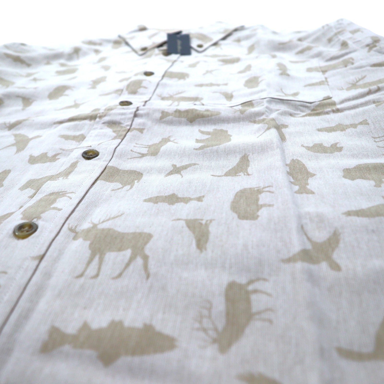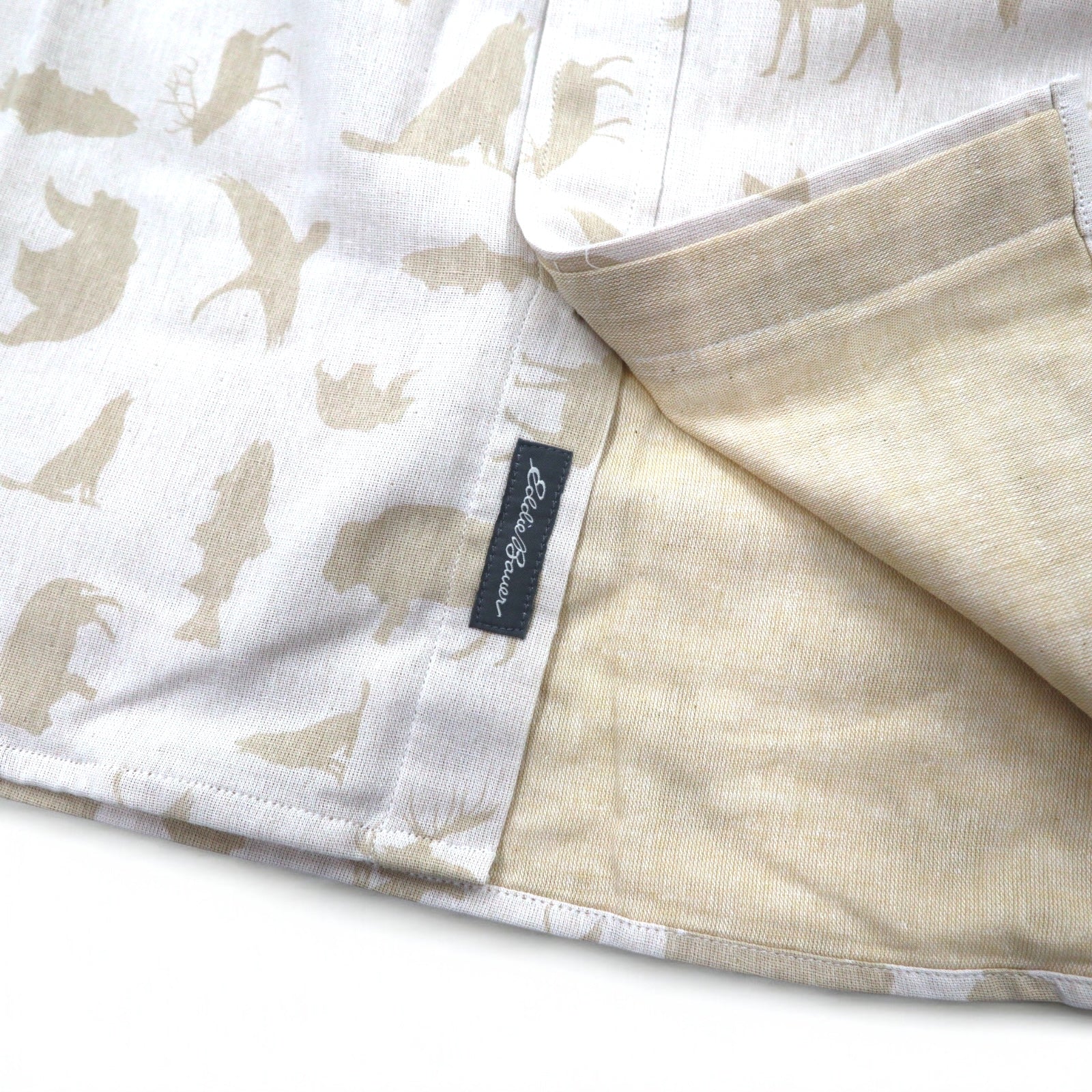 Eddie Bauer ボタンダウンシャツ L ベージュ コットン 総柄 アニマル 未使用品