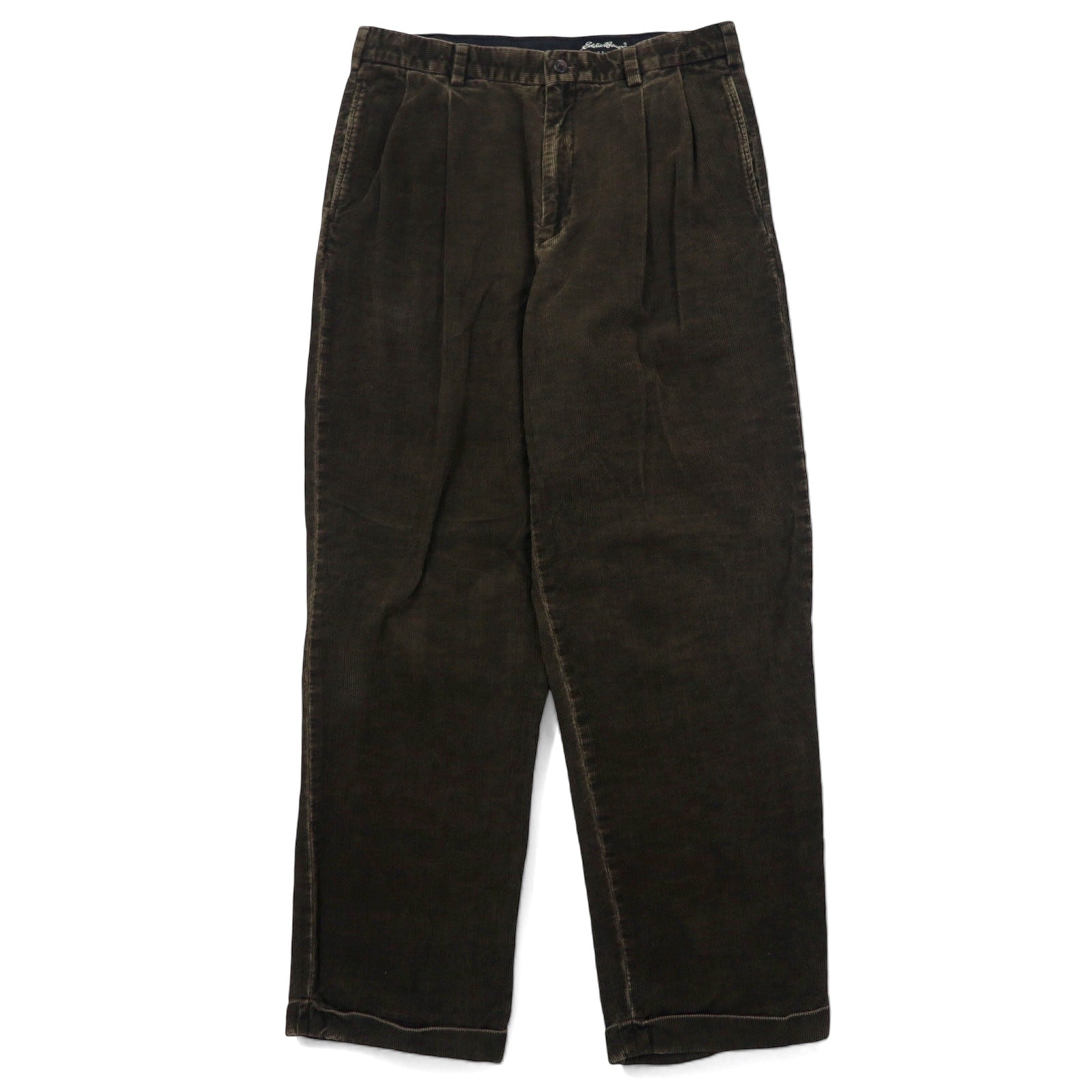 Eddie Bauer 90年代 タック ワイド コーデュロイパンツ 33 カーキ コットン ドミニカ共和国製
