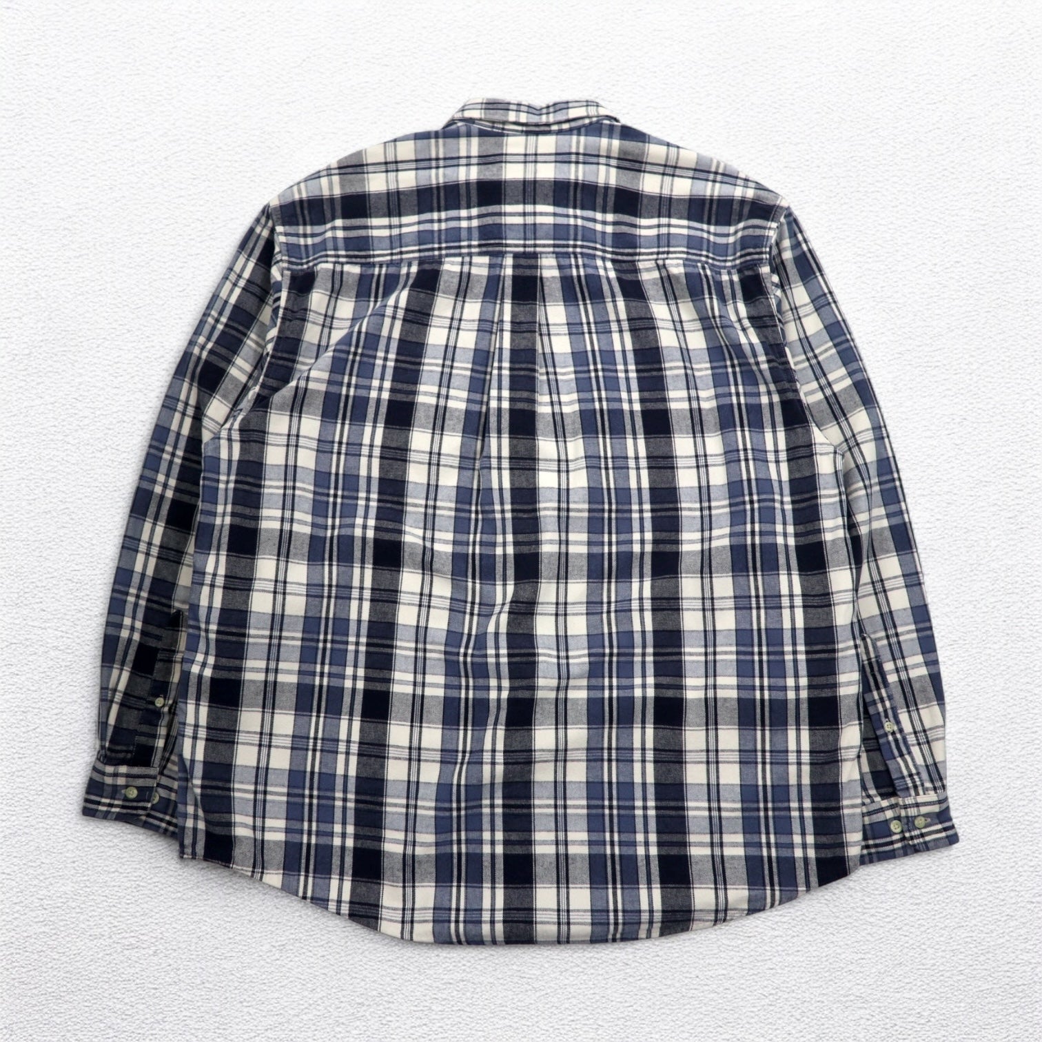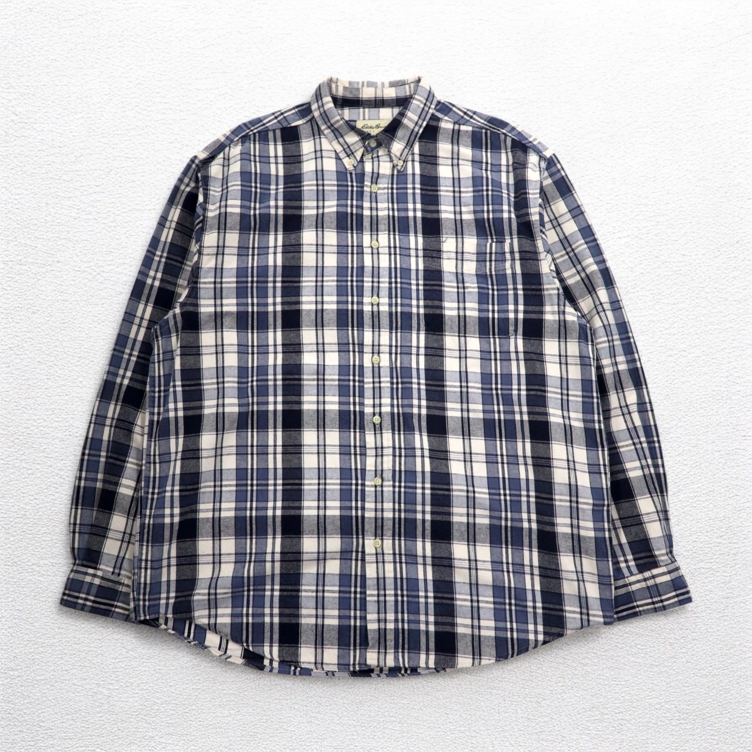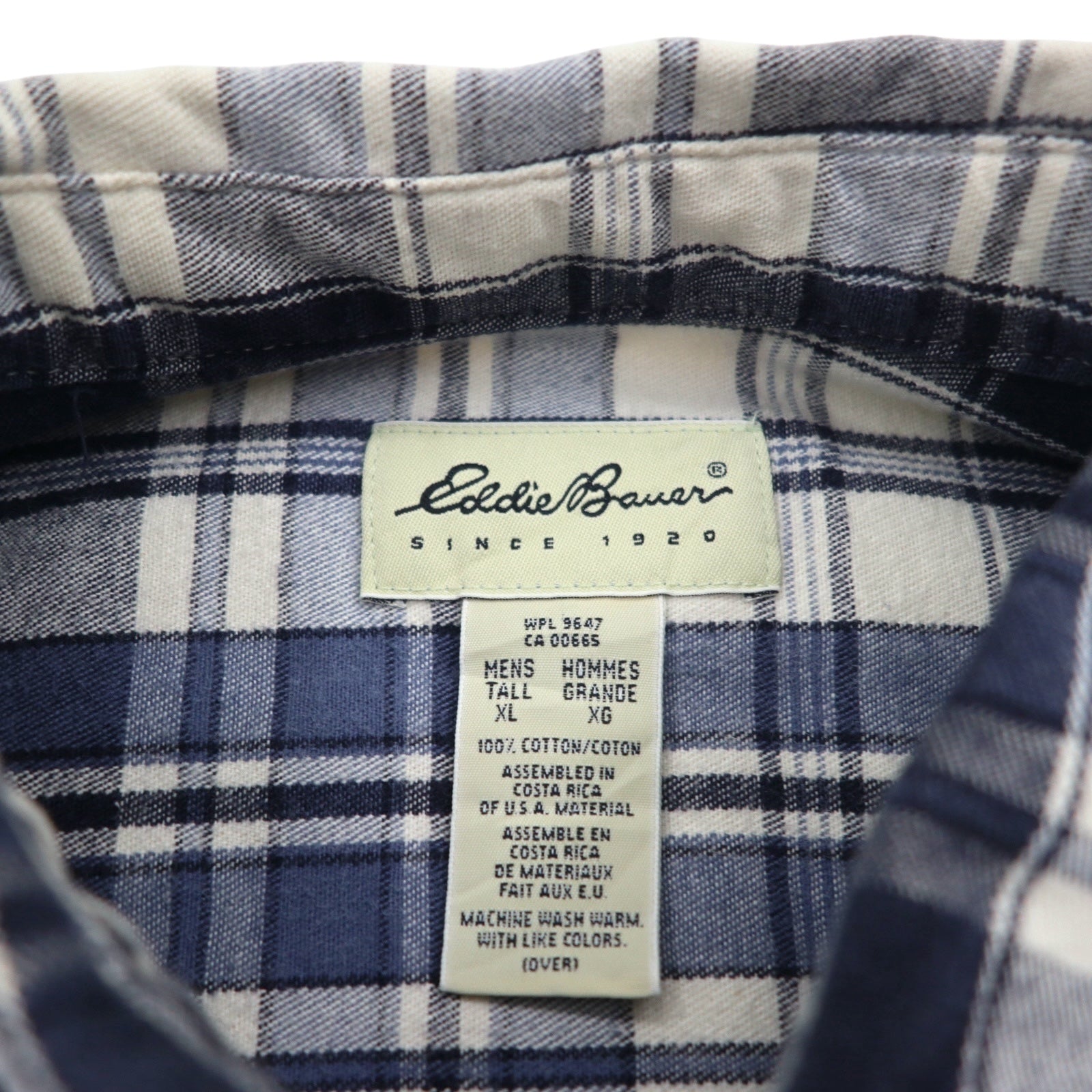 Eddie Bauer 90年代 ボタンダウン フランネルシャツ XL ホワイト ネイビー チェック コットン