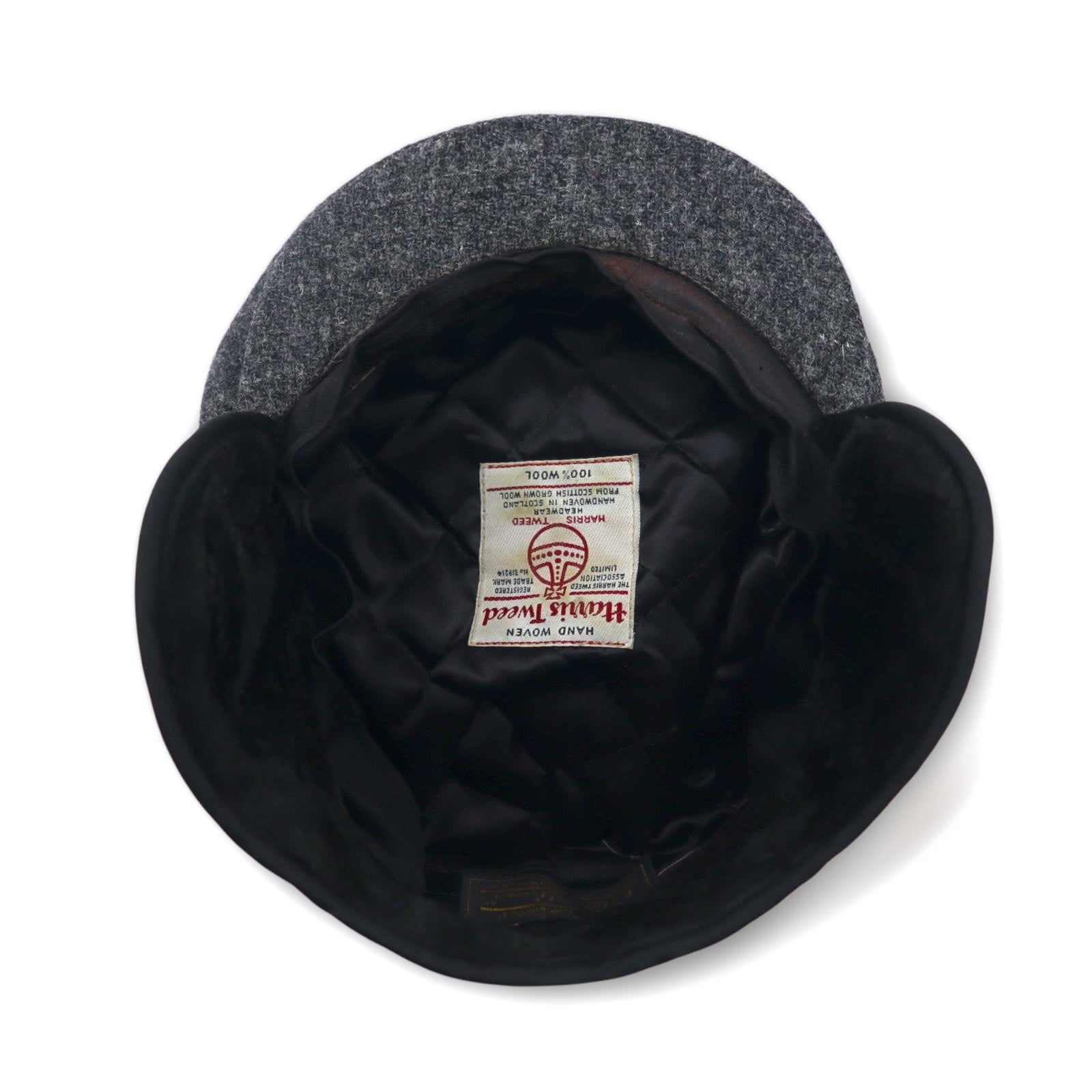 Eddie Bauer × Harris Tweed 90年代 イヤーフラップ ツイード ハンチング キャップ M グレー Thinsulate キルティングライナー 耳あて