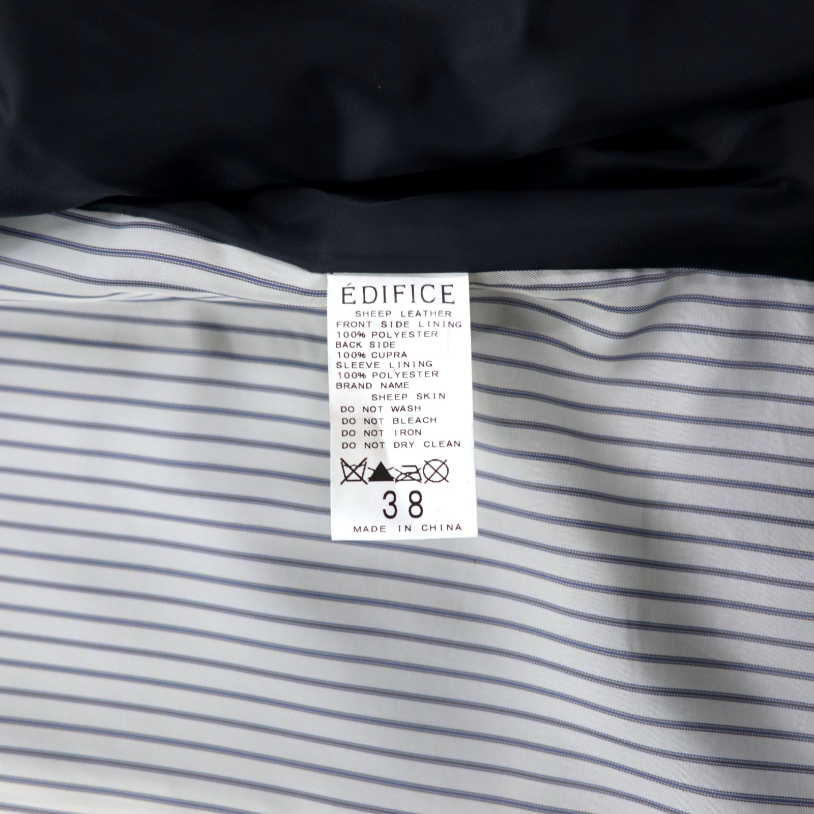 EDIFICE シングル ライダースジャケット ラムレザージャケット 38 ブラック 羊革 ダブルジップ