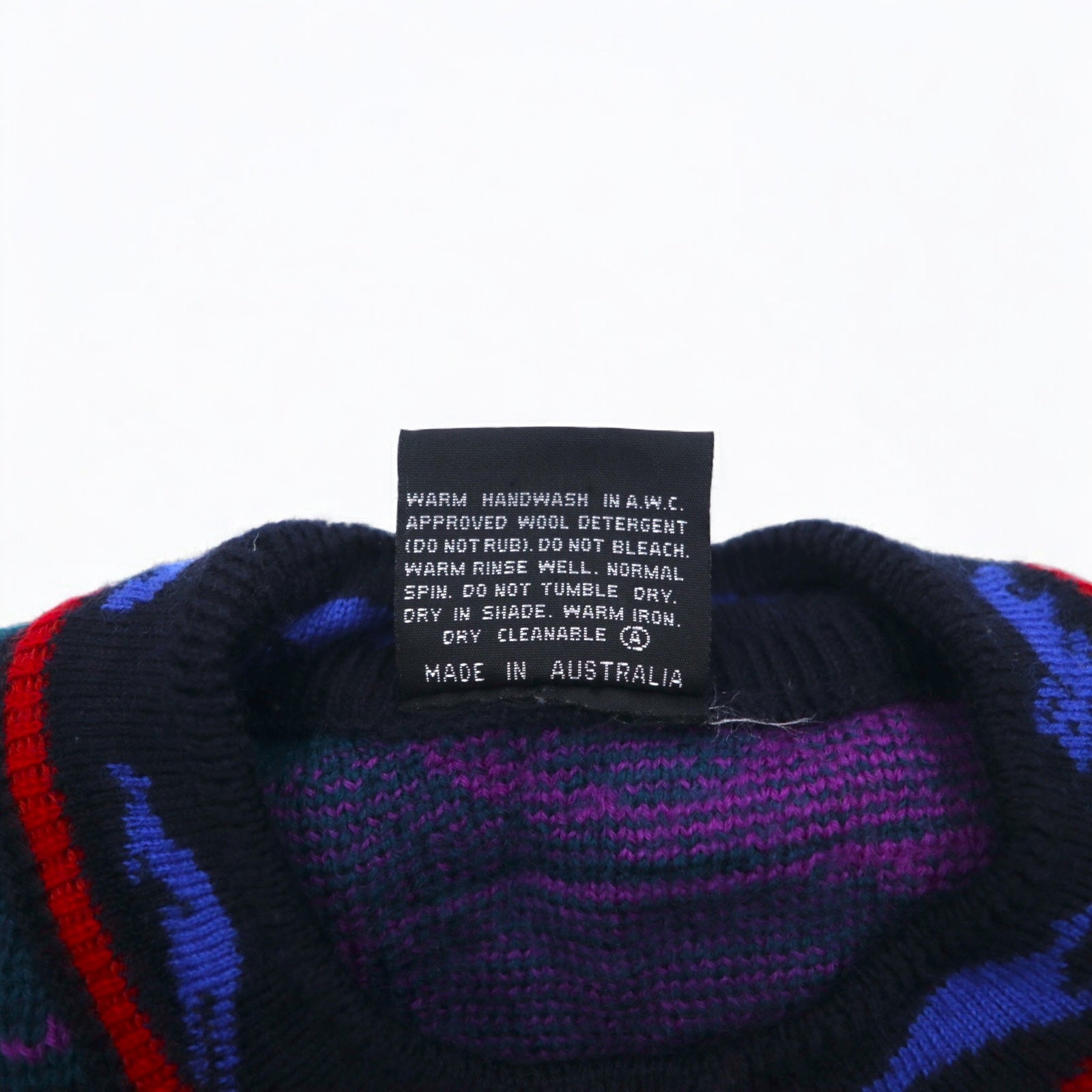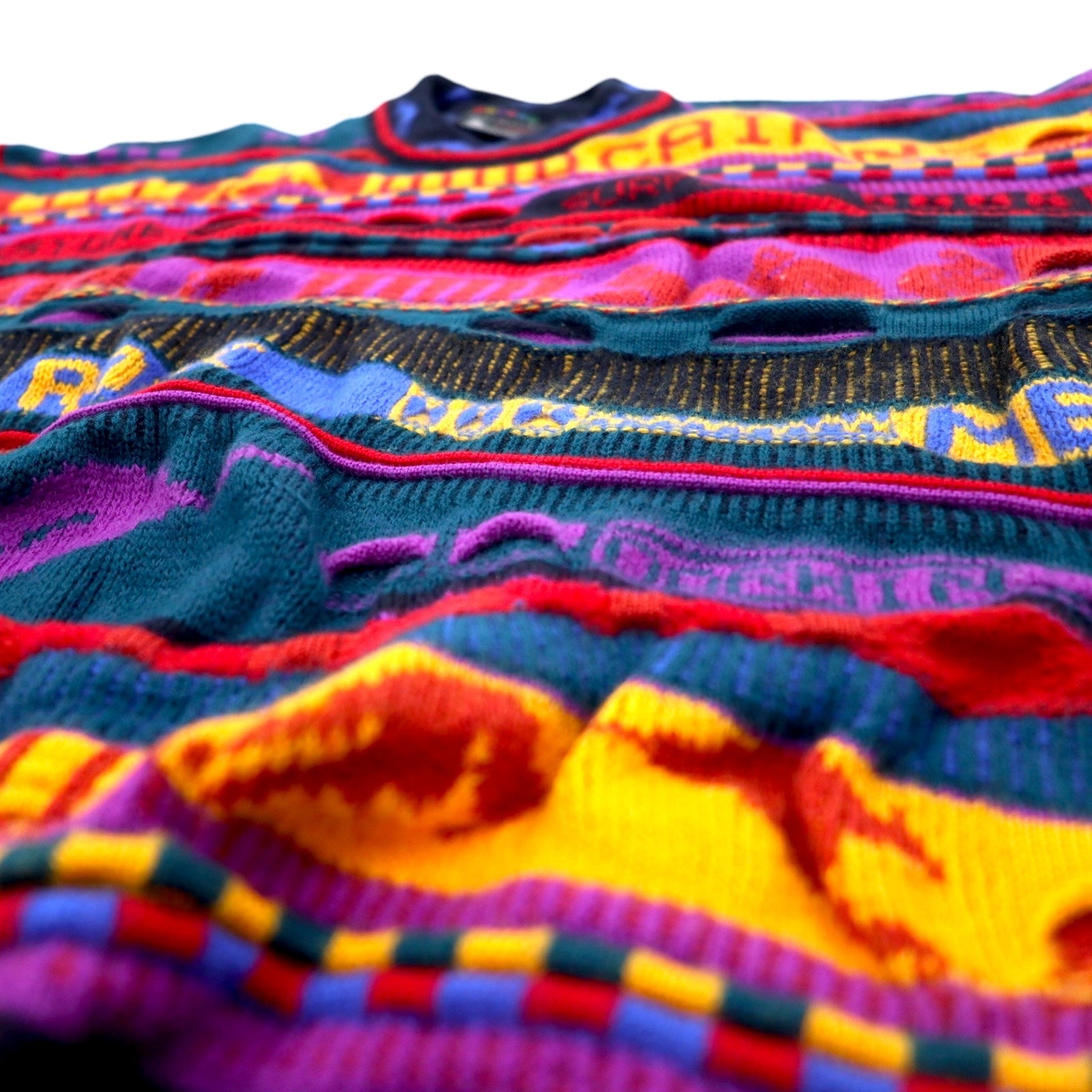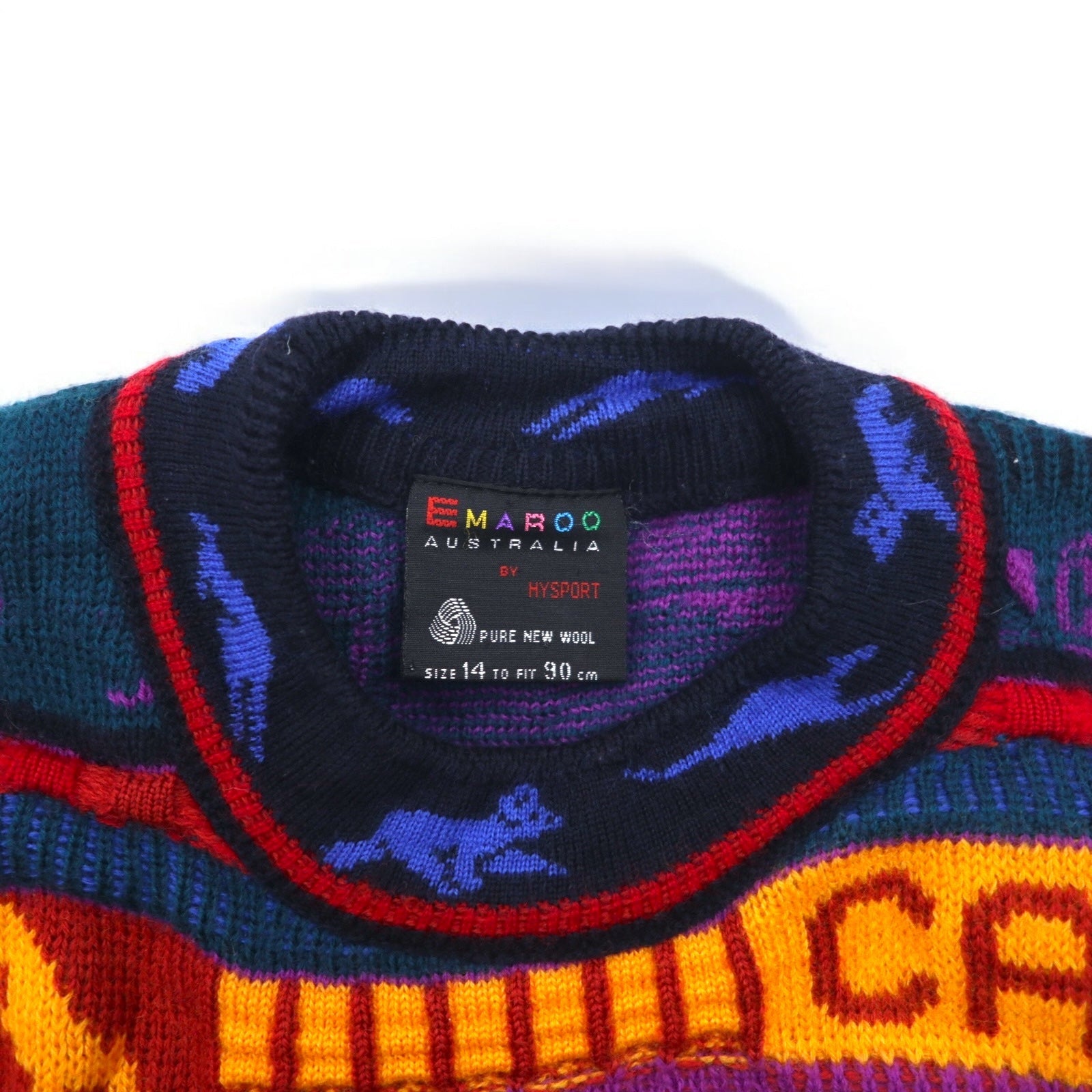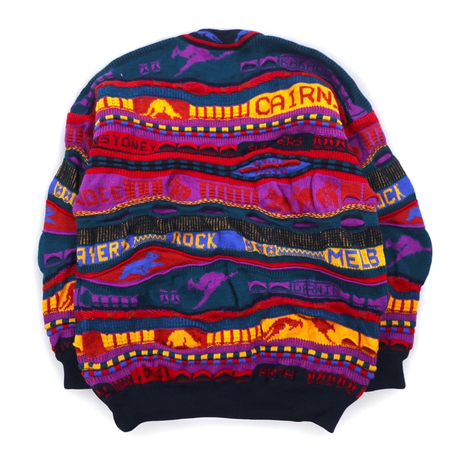 EMAROO AUSTRALIA 90年代 オーストラリア製 3D ニット セーター S マルチカラー ウール 総柄 HYSPORT
