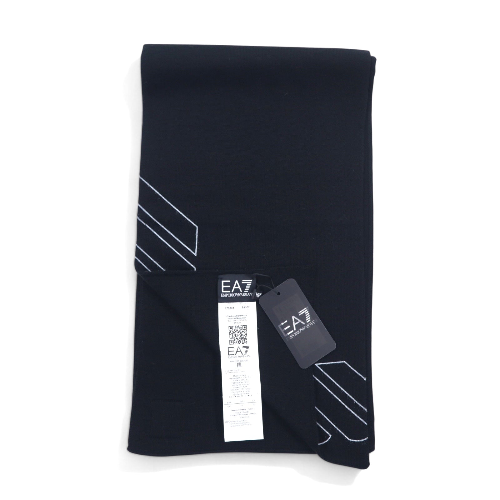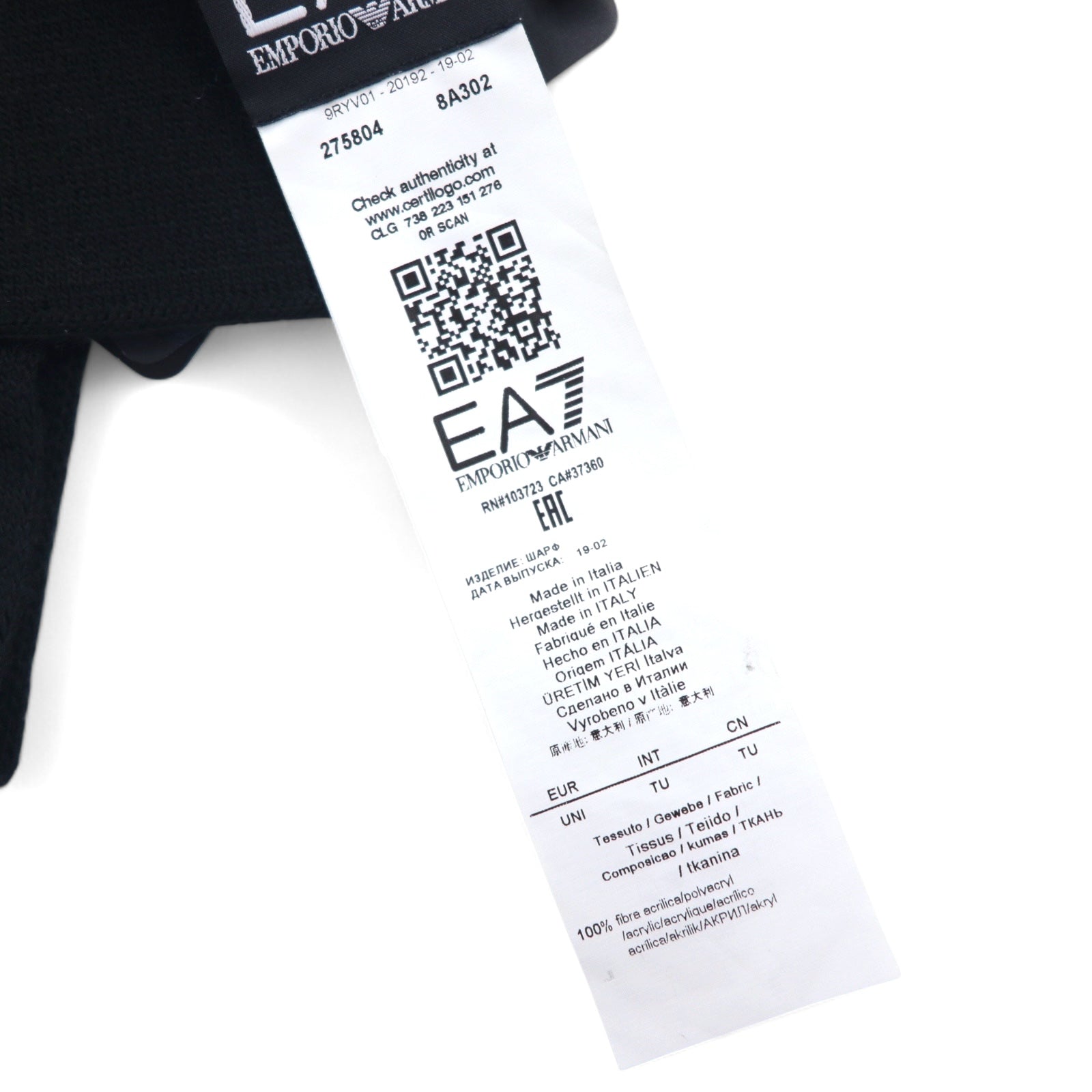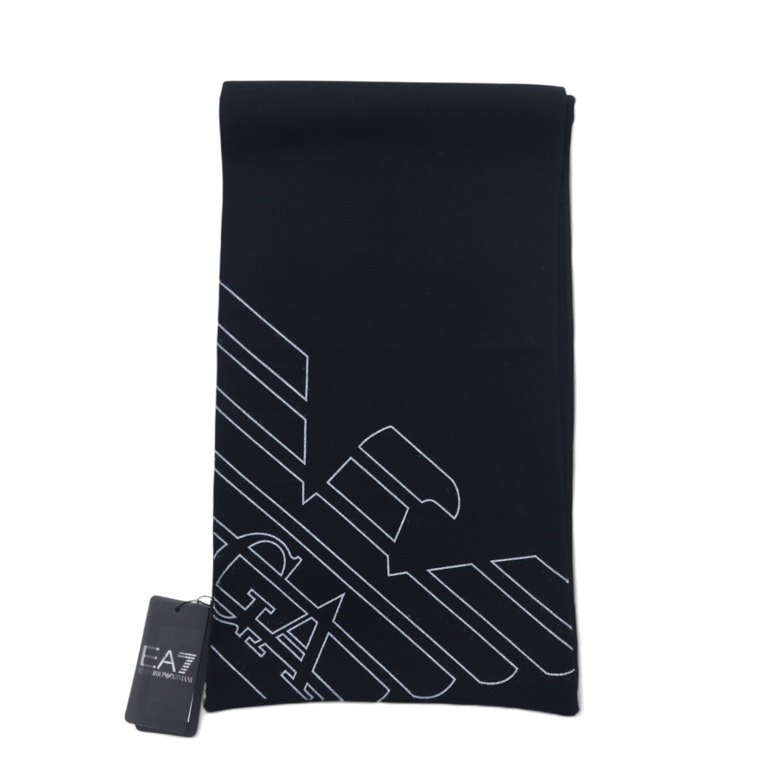 EMPORIO ARMANI イタリア製 ロゴプリント マフラー ブラック アクリル 275804 8A302 未使用品