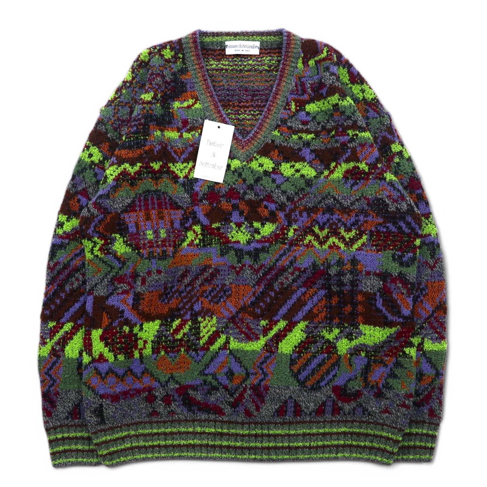 Fantasie di Settembre イタリア製 90年代 総柄 ジャガード ニット セーター L マルチカラー デッドストック 未使用品