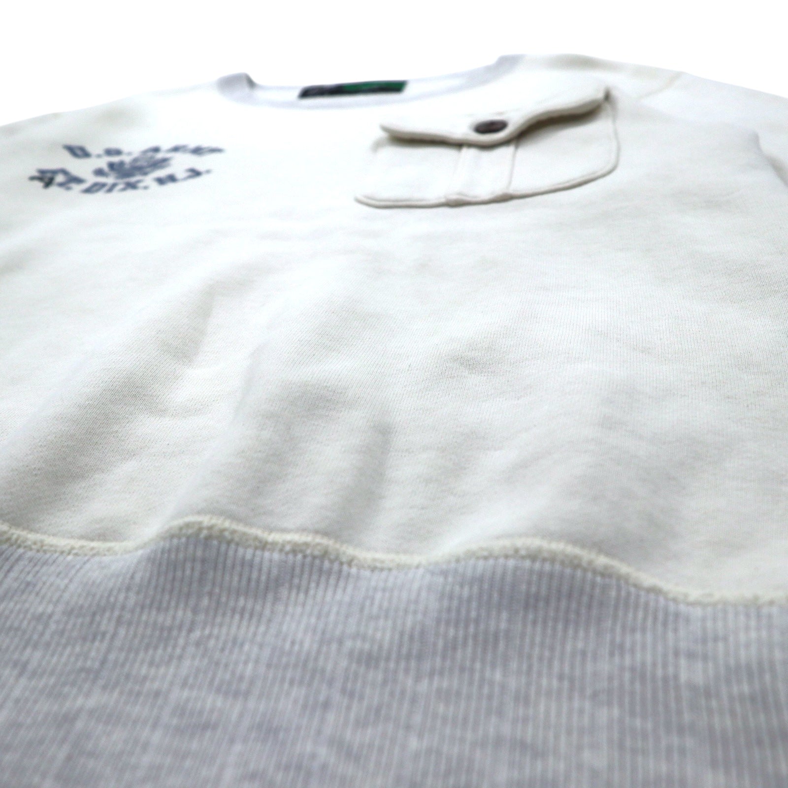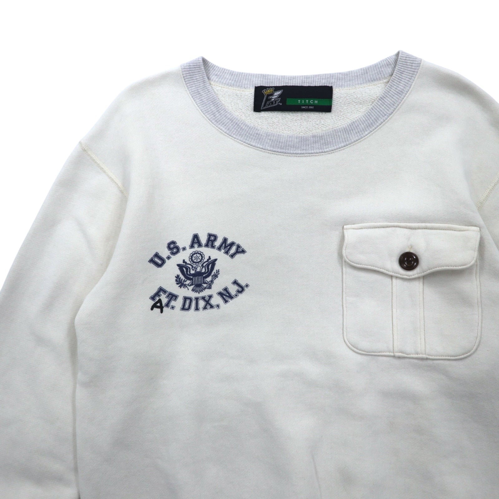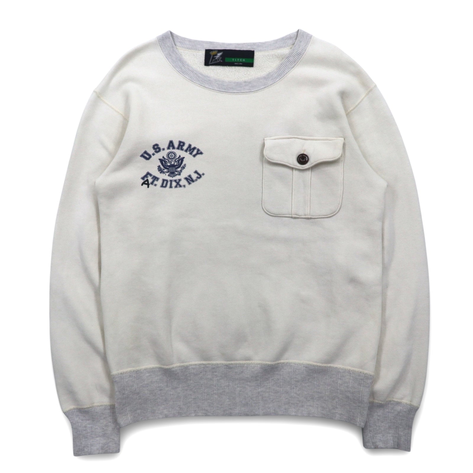 FAT クルーネック スウェット M オフホワイト グレー U.S.ARMY フラップポケット