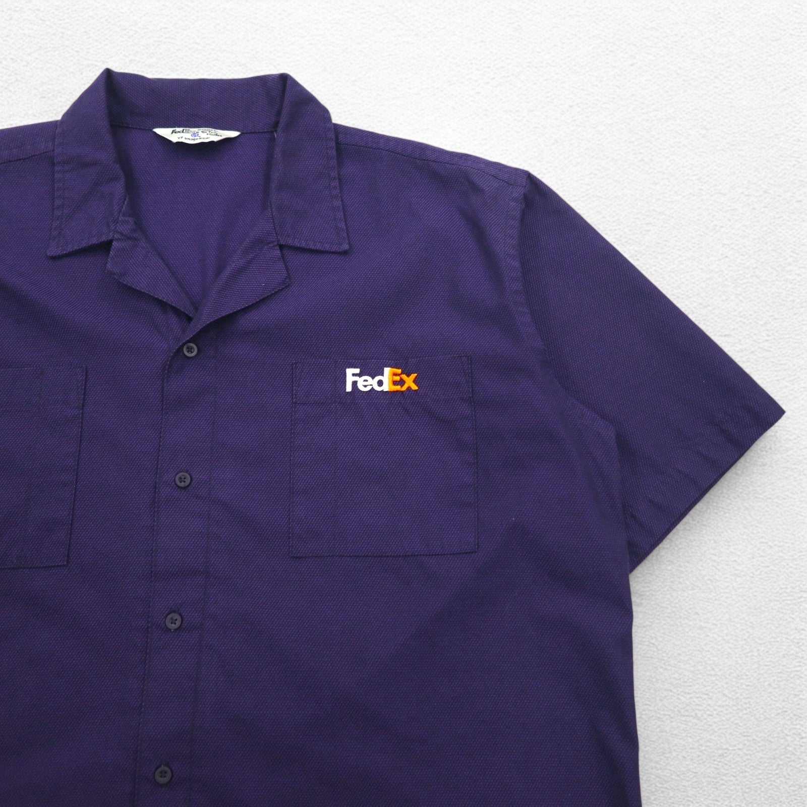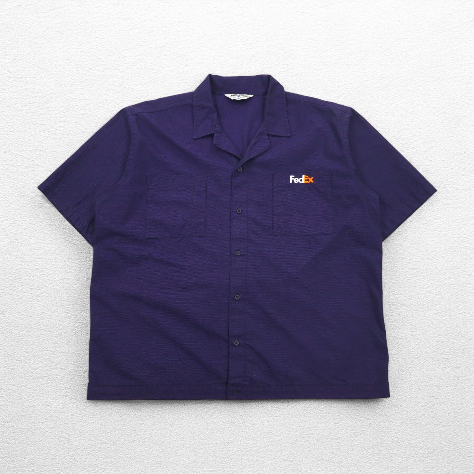 FedEx 90年代 開襟 ワークシャツ 半袖 オープンカラー XL パープル アメリカ 企業 ボックスシルエット Designed By Stan Herman VF Imagewear