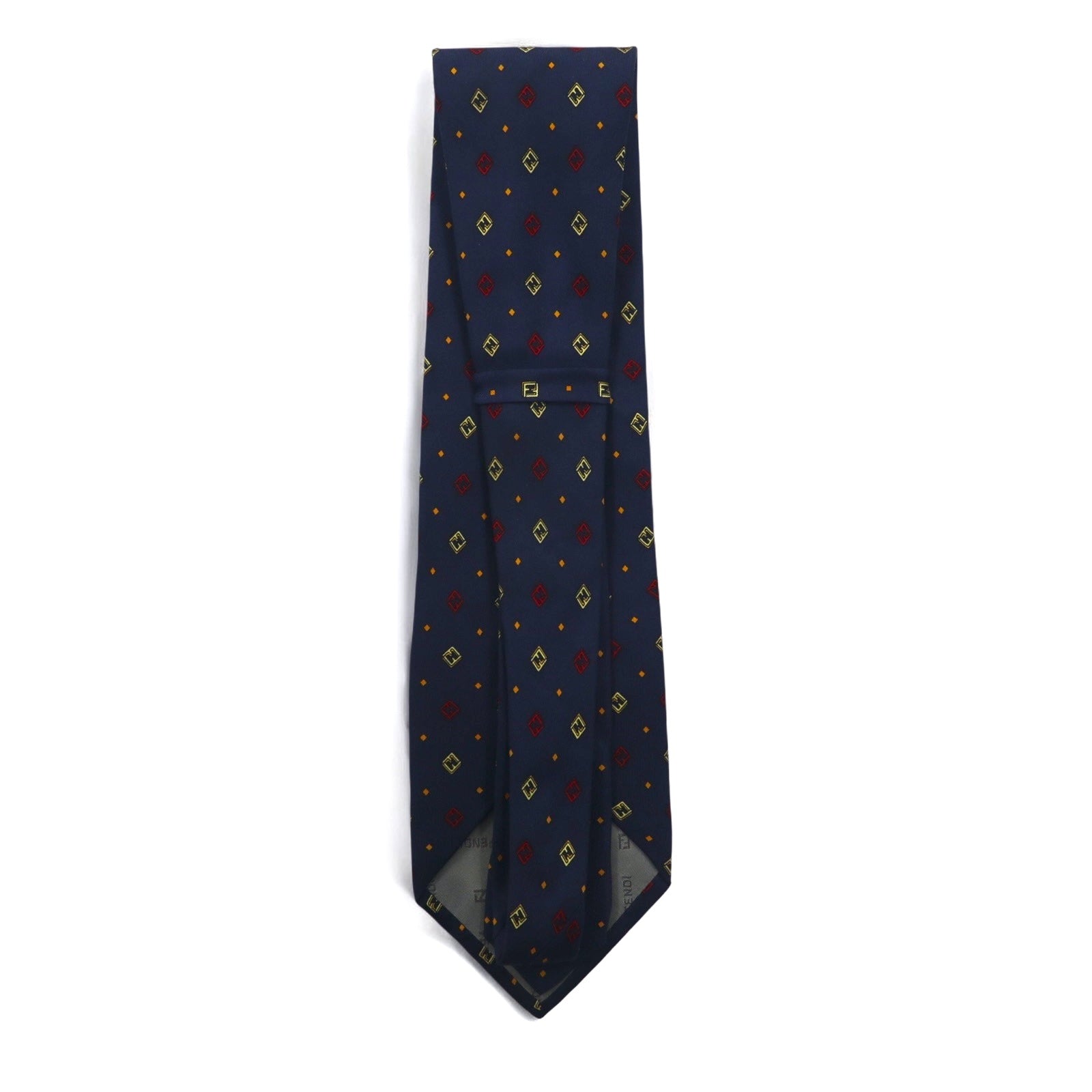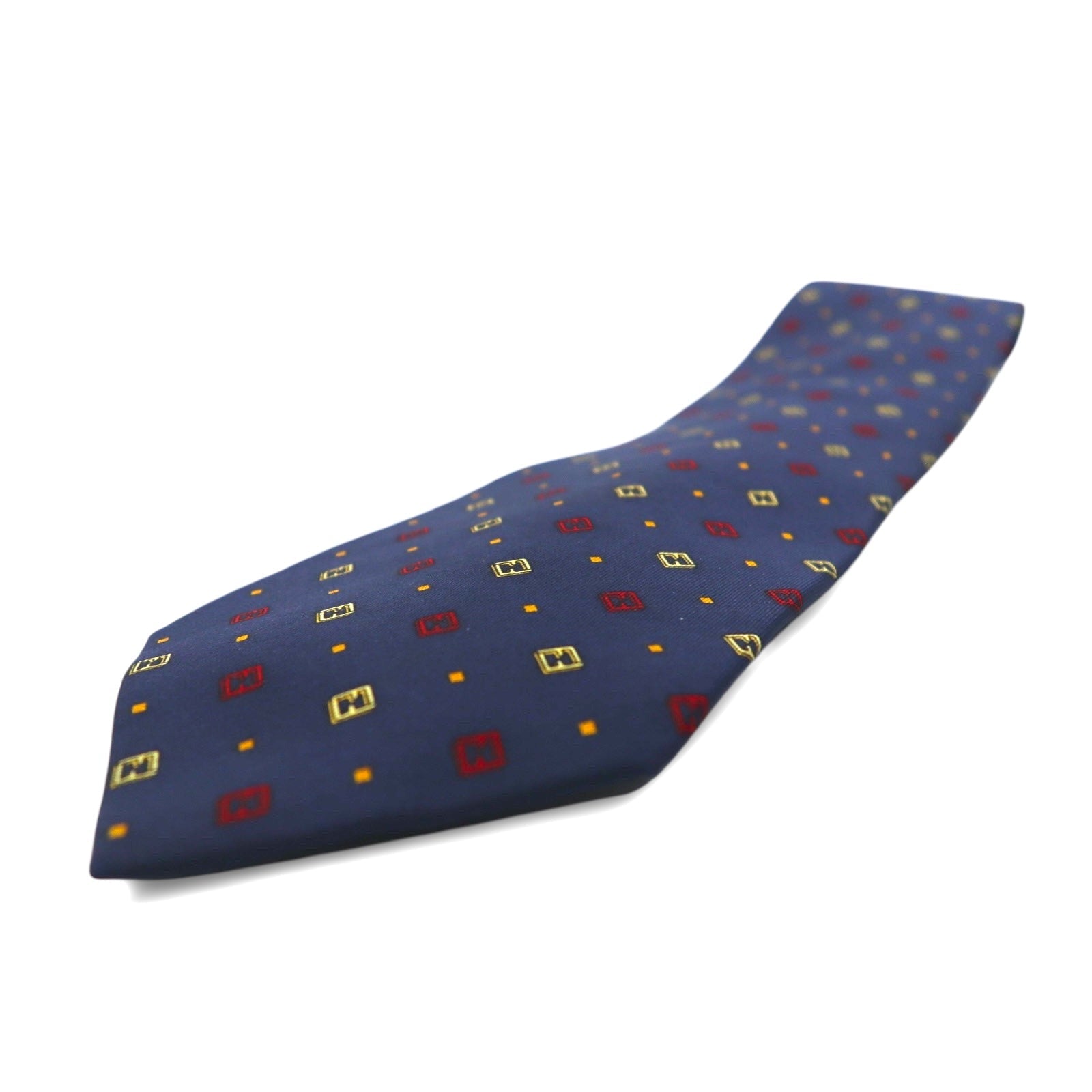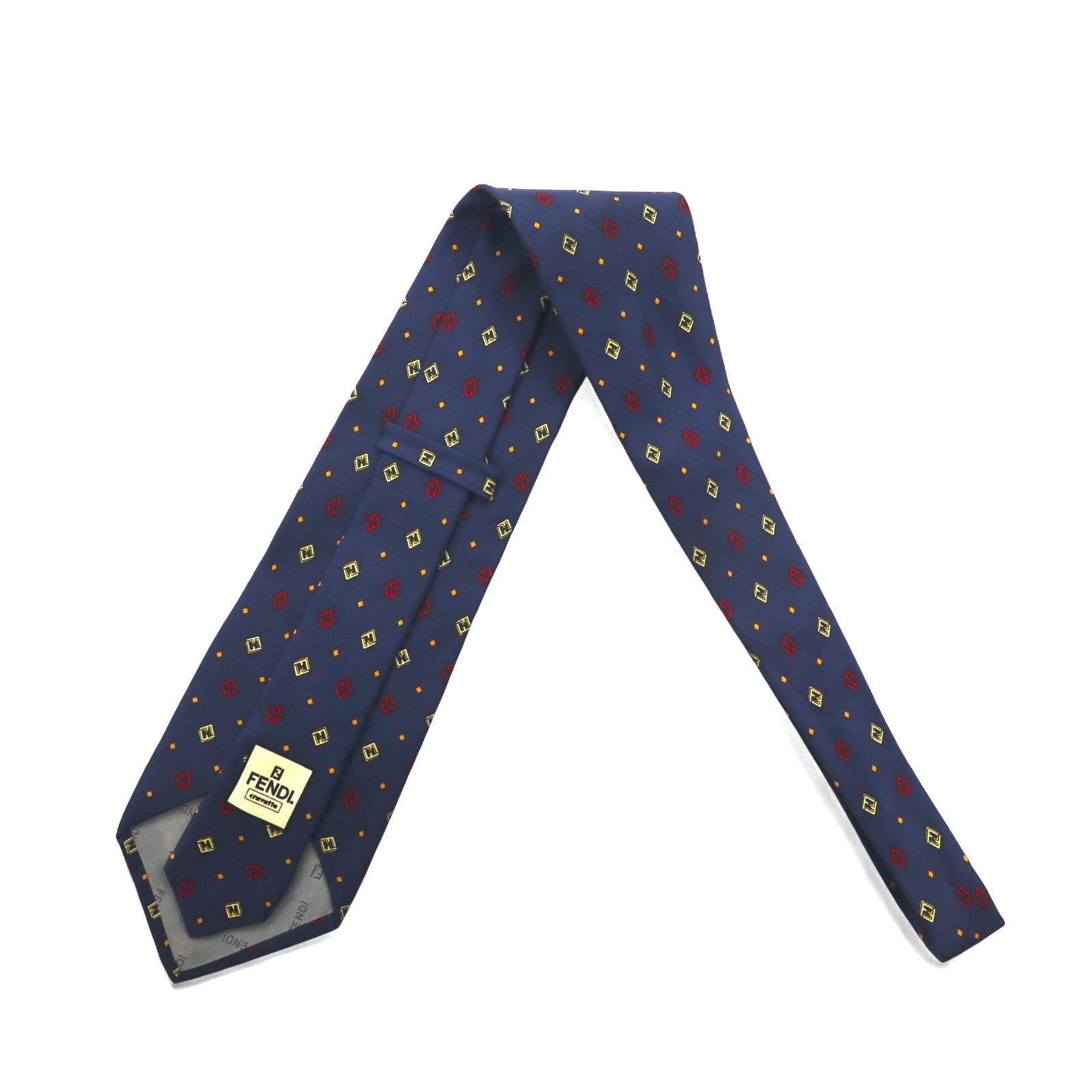 FENDI イタリア製 ヴィンテージ ズッカ FFロゴ ネクタイ ネイビー シルク 小紋 総柄
