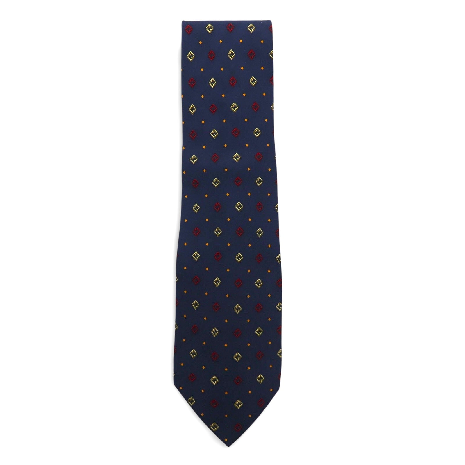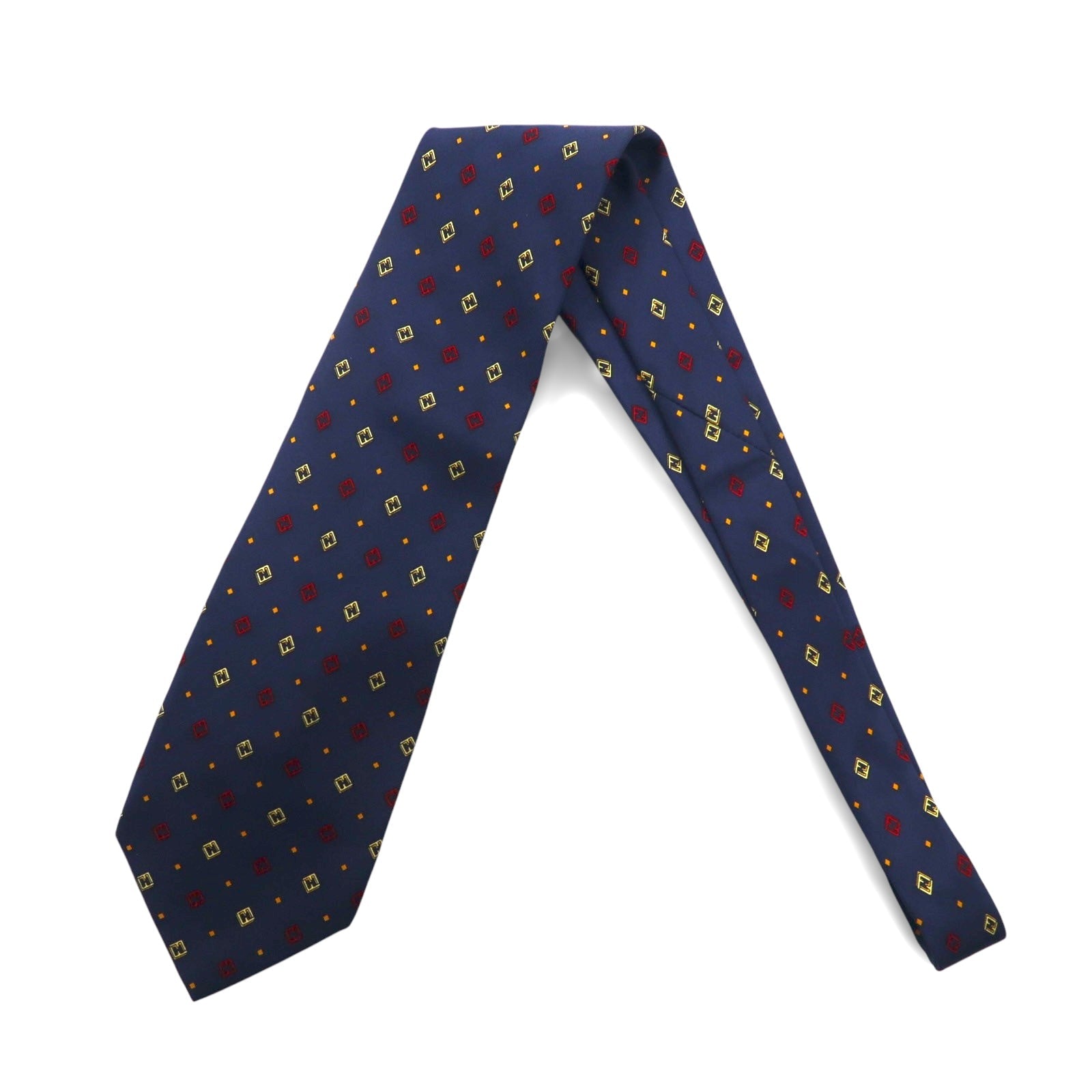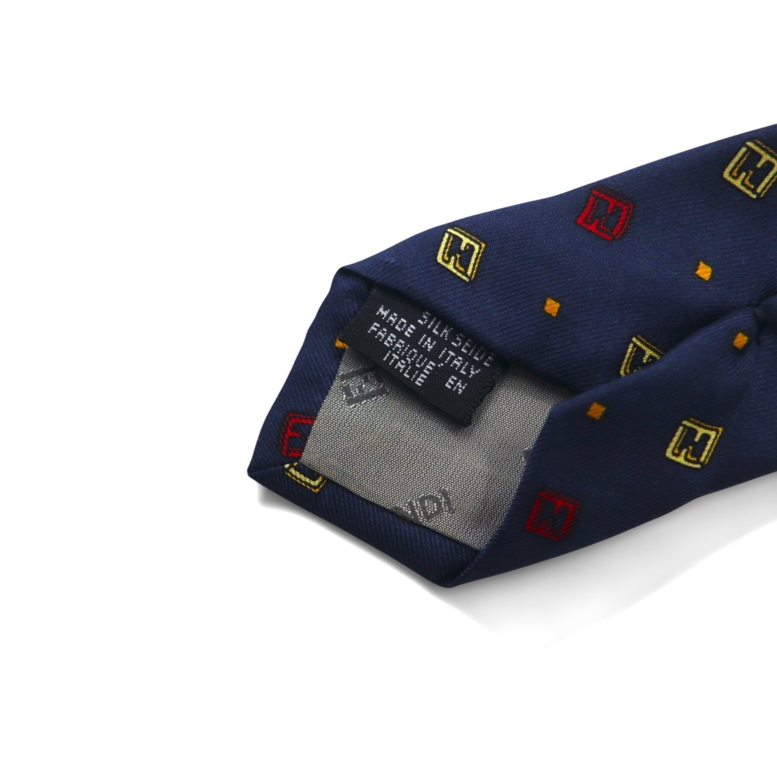 FENDI イタリア製 ヴィンテージ ズッカ FFロゴ ネクタイ ネイビー シルク 小紋 総柄