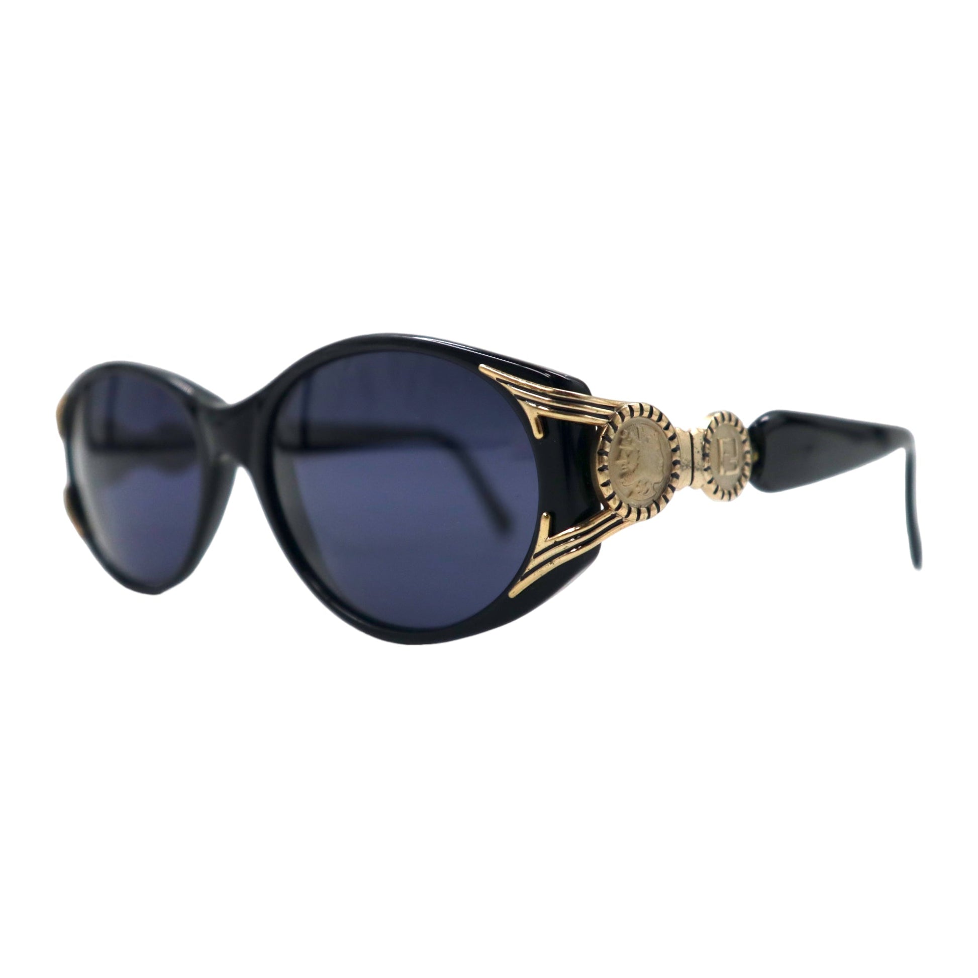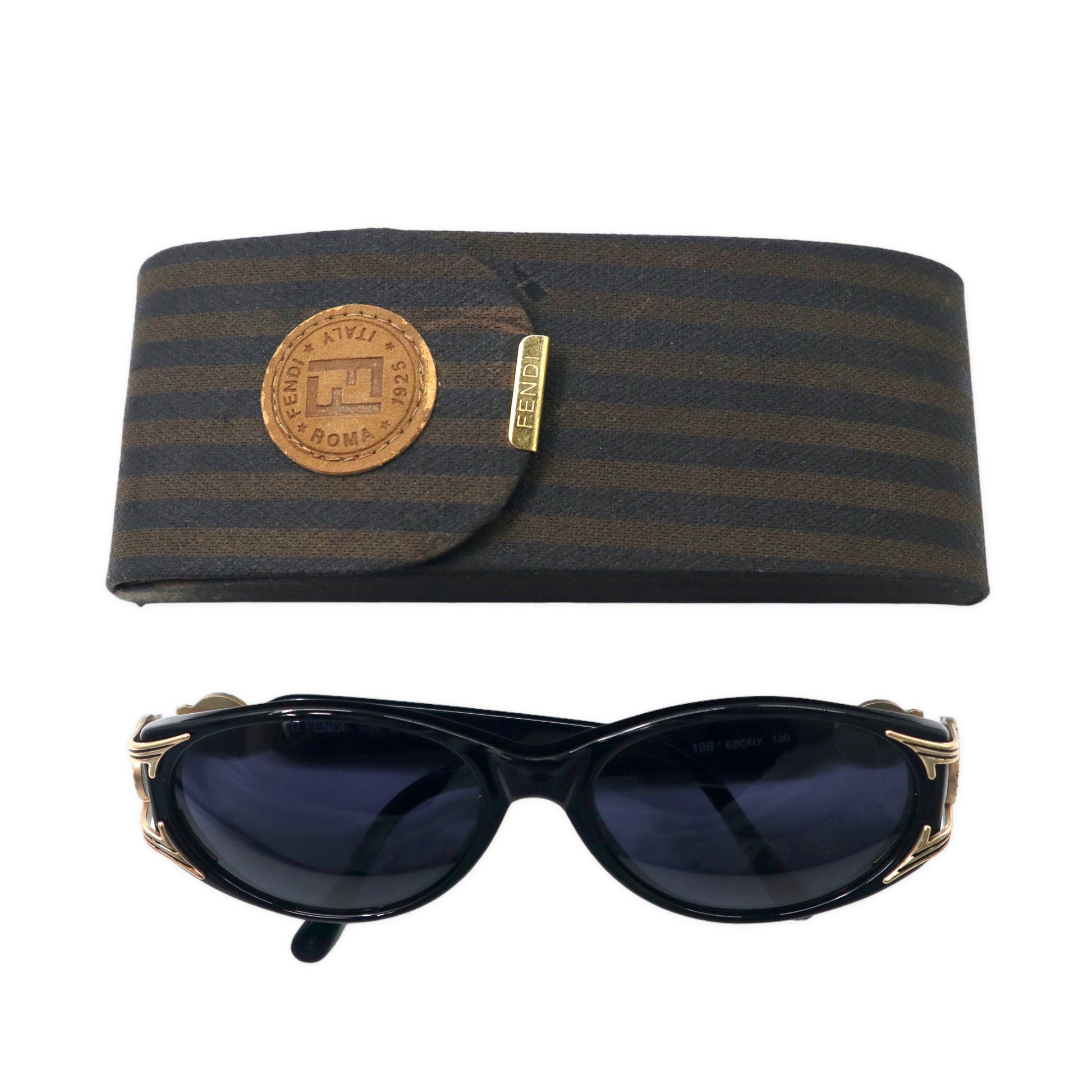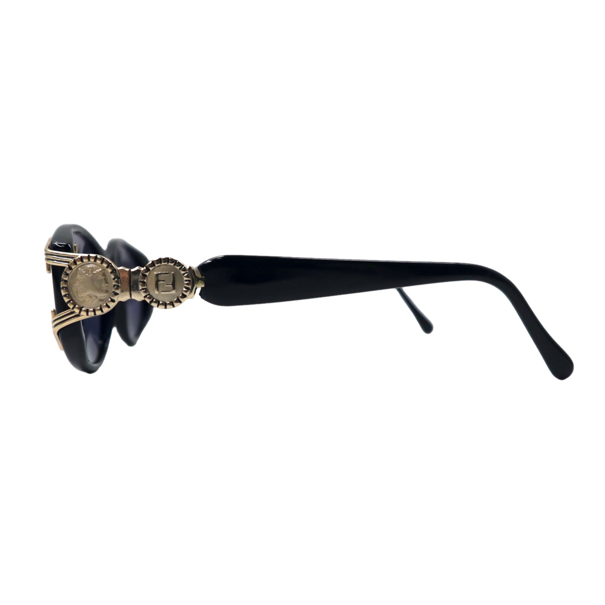 FENDI セルフレーム サングラス ブラック ゴールド サイドロゴ コイン FS 138 EBONY 130 オールド イタリア製