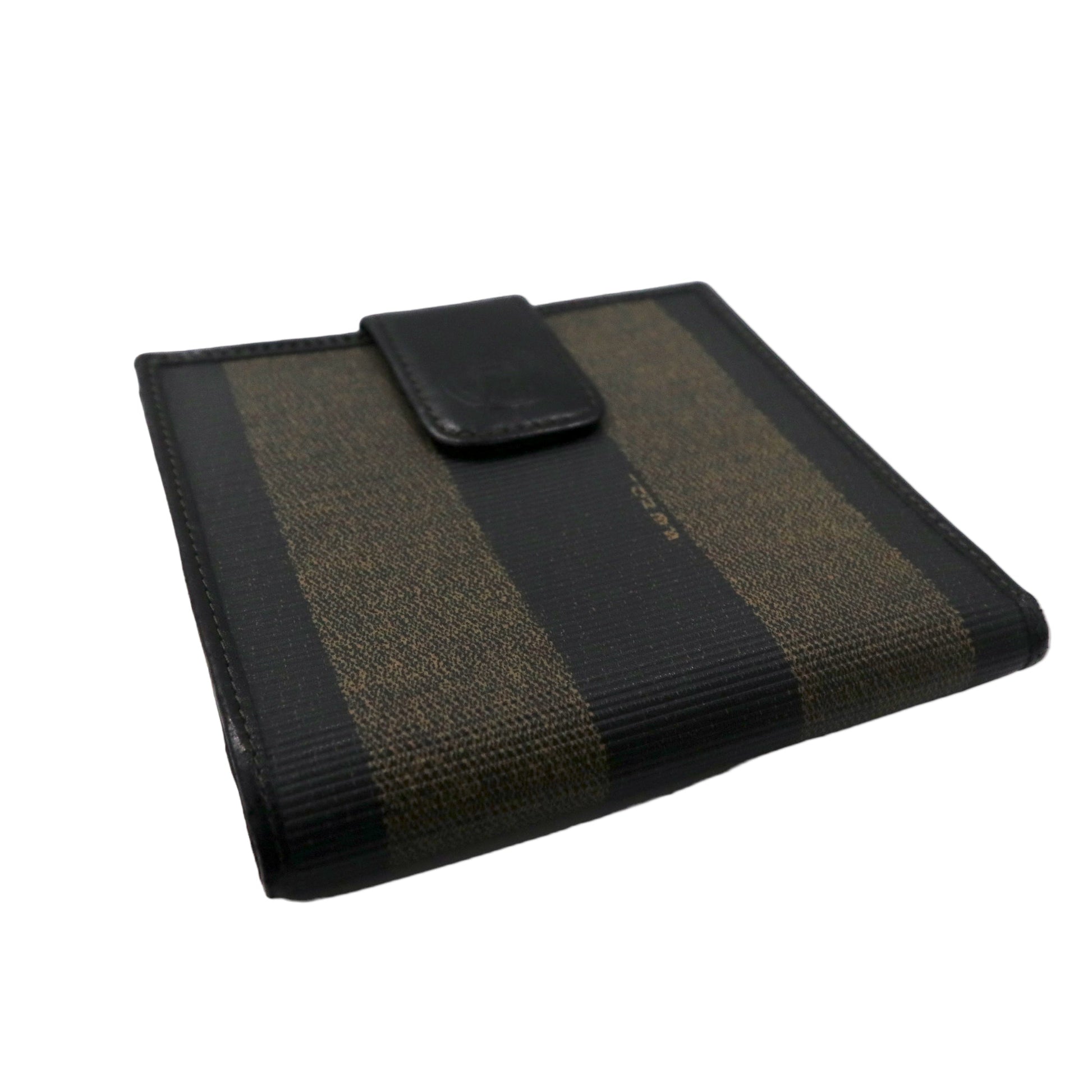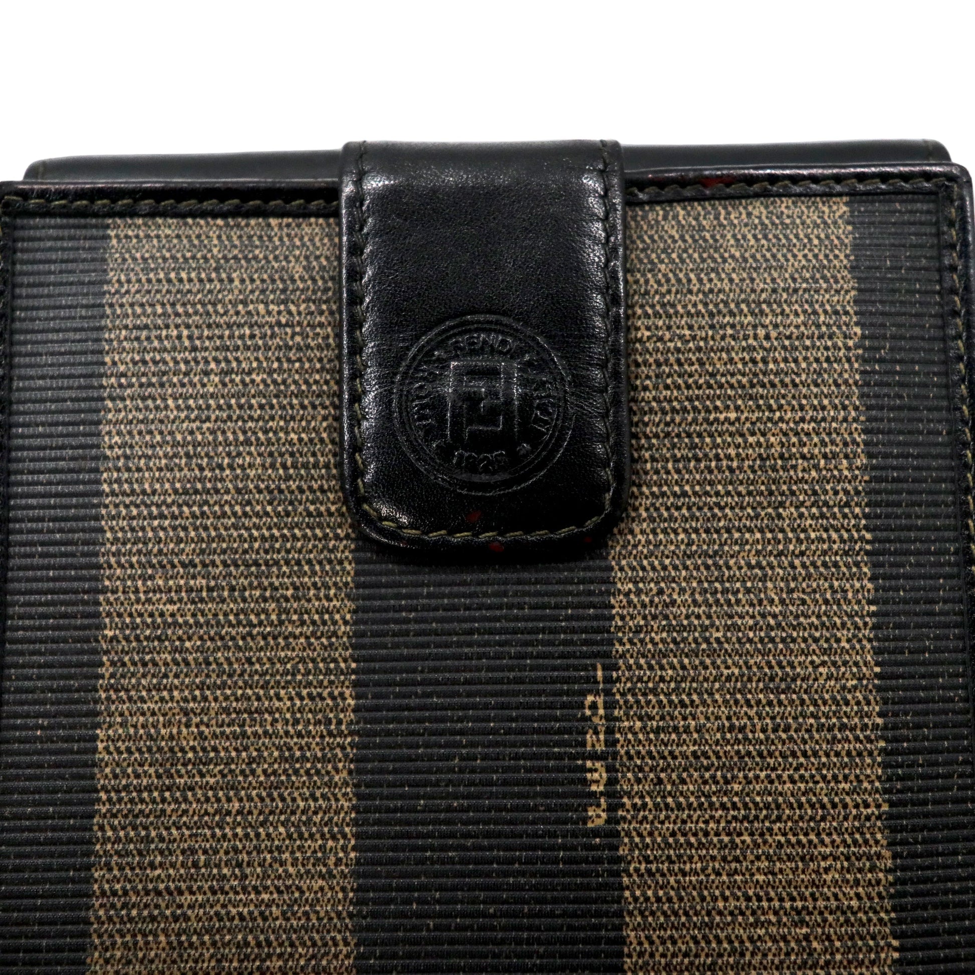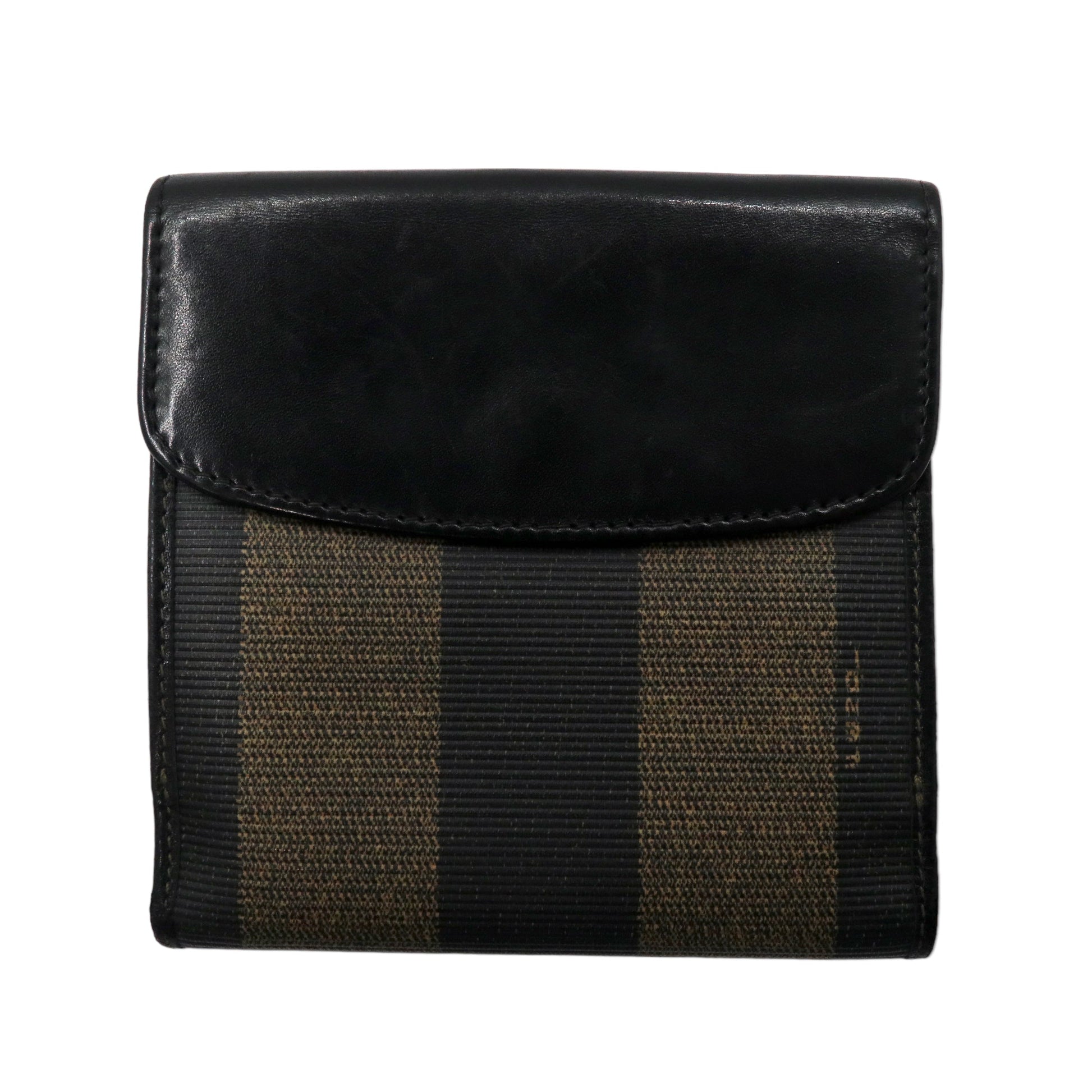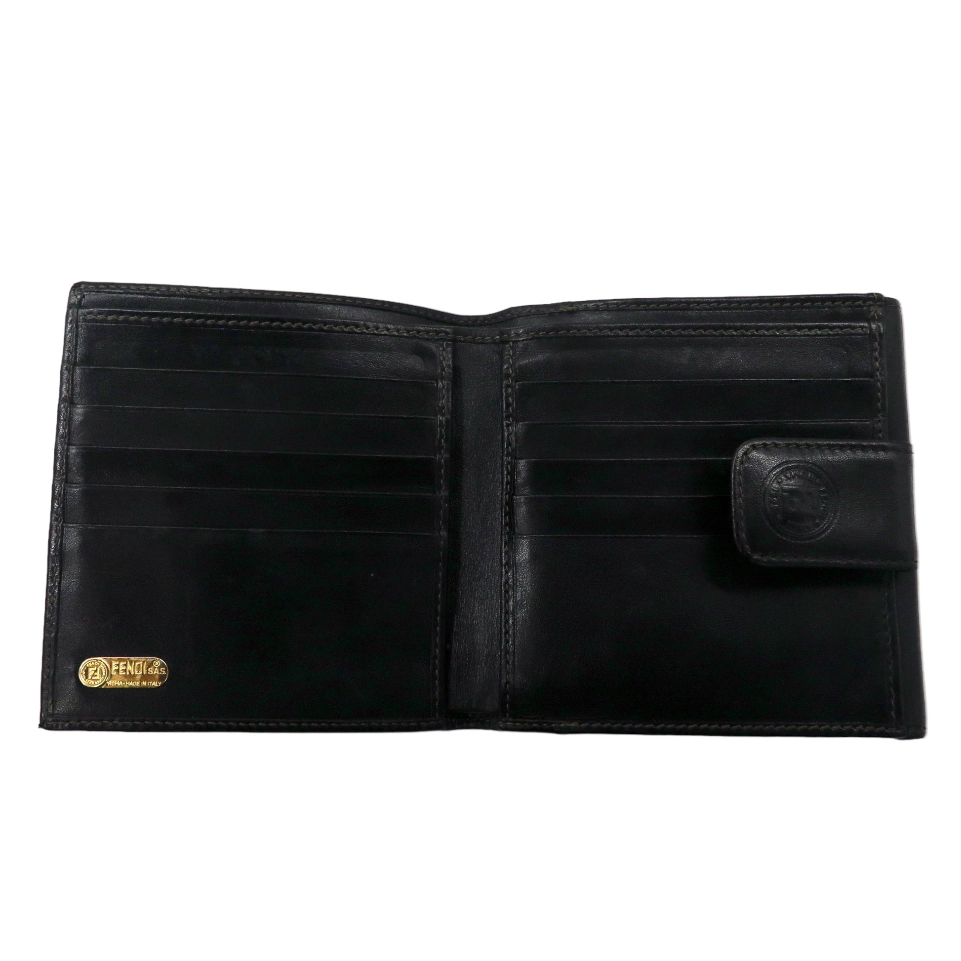 FENDI 2つ折り財布 コンパクトウォレット ペカン柄 ブラック カーキ レザー PVC オールド 2251-01695-078 イタリア製