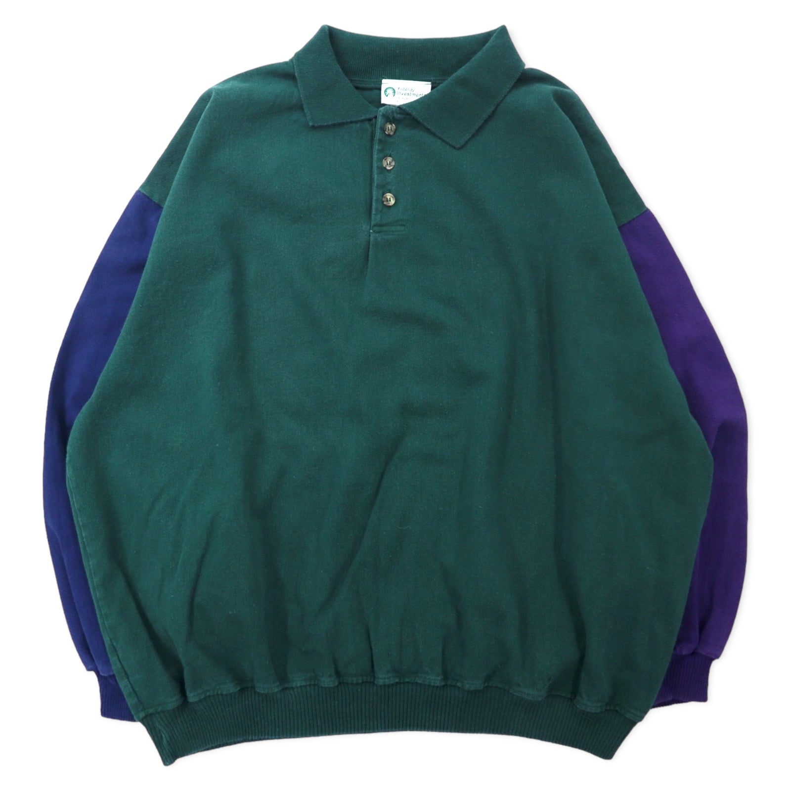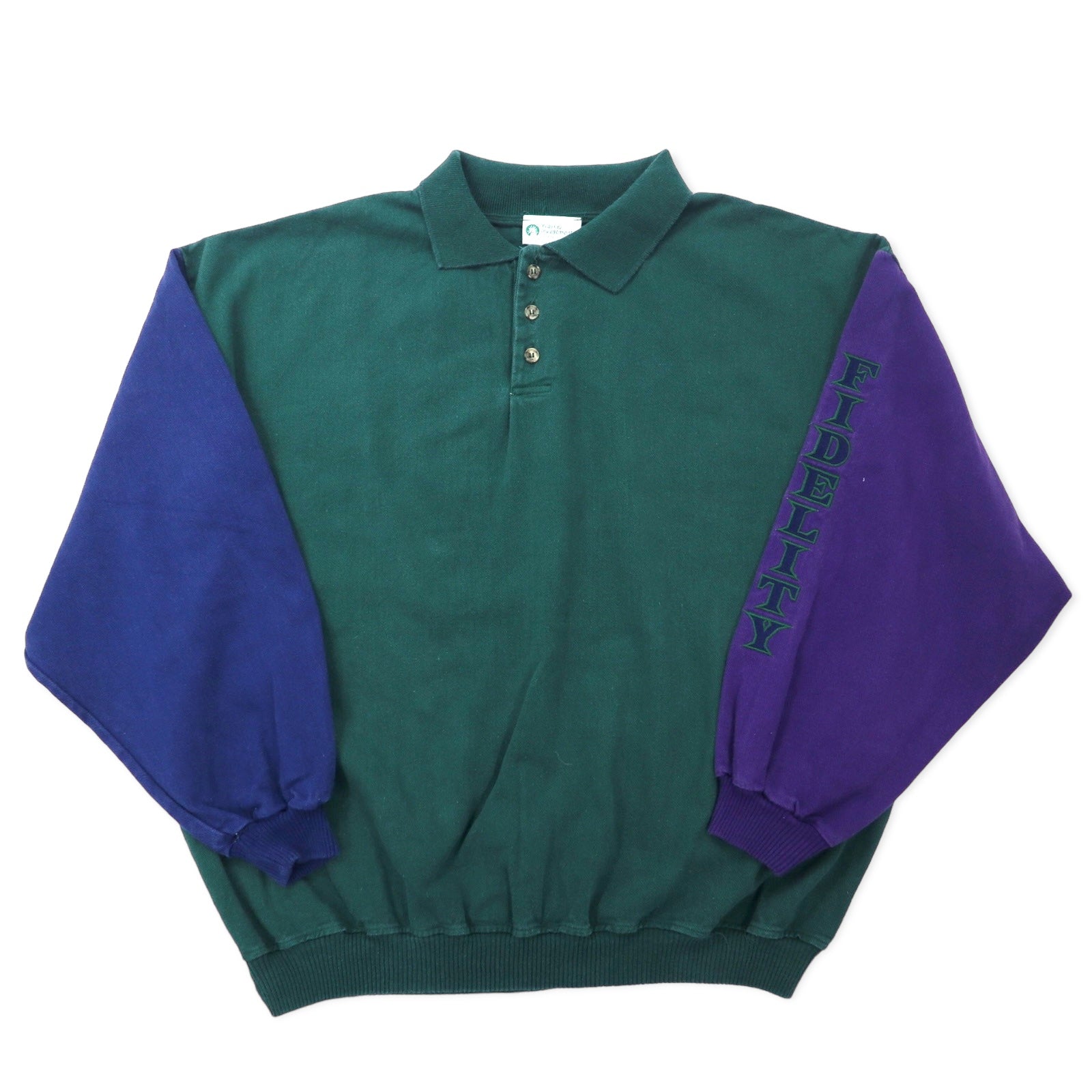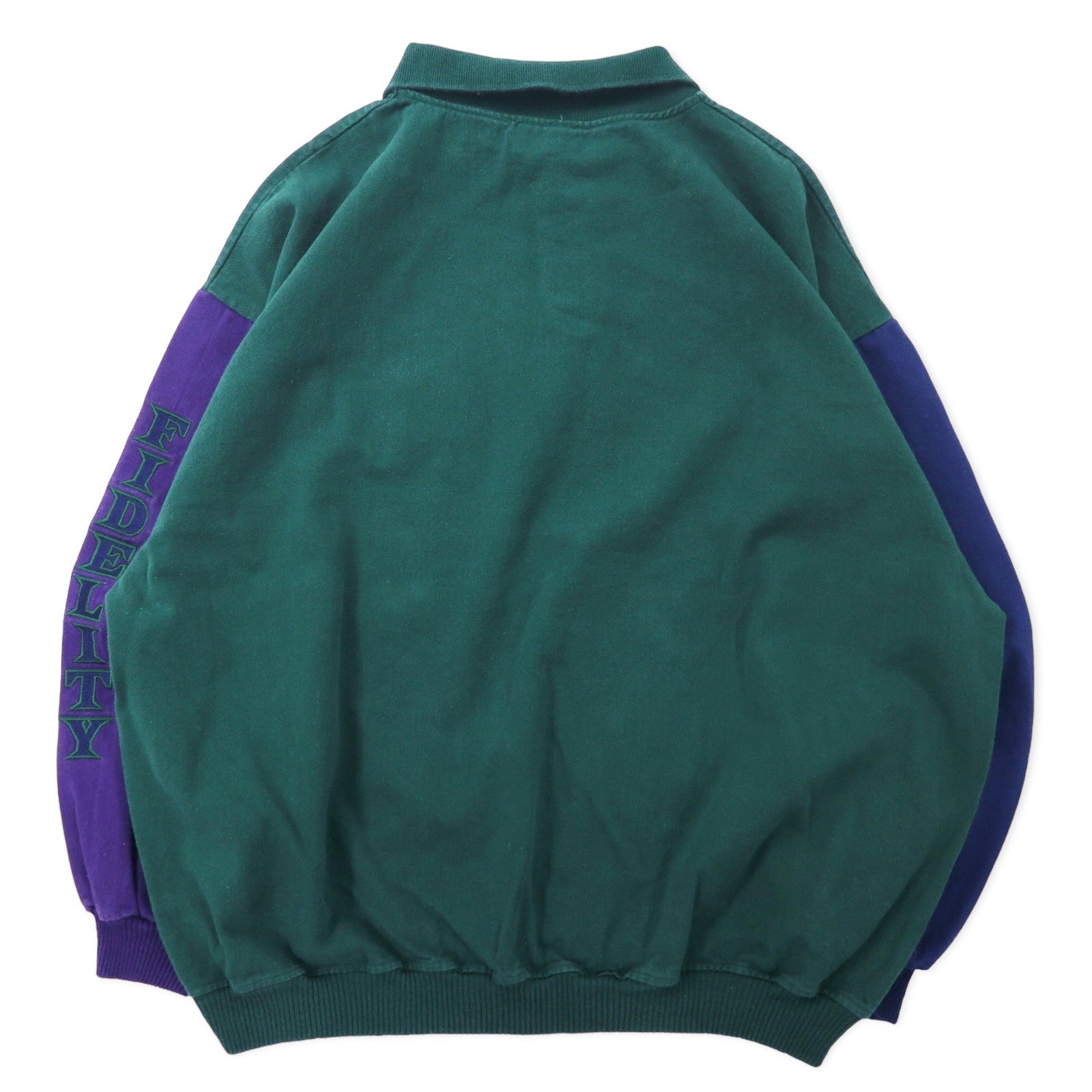 Fidelity Investments カナダ製 ポロスウェット シャツ XL グリーン コットン キャンバス 袖刺繍 ビッグサイズ