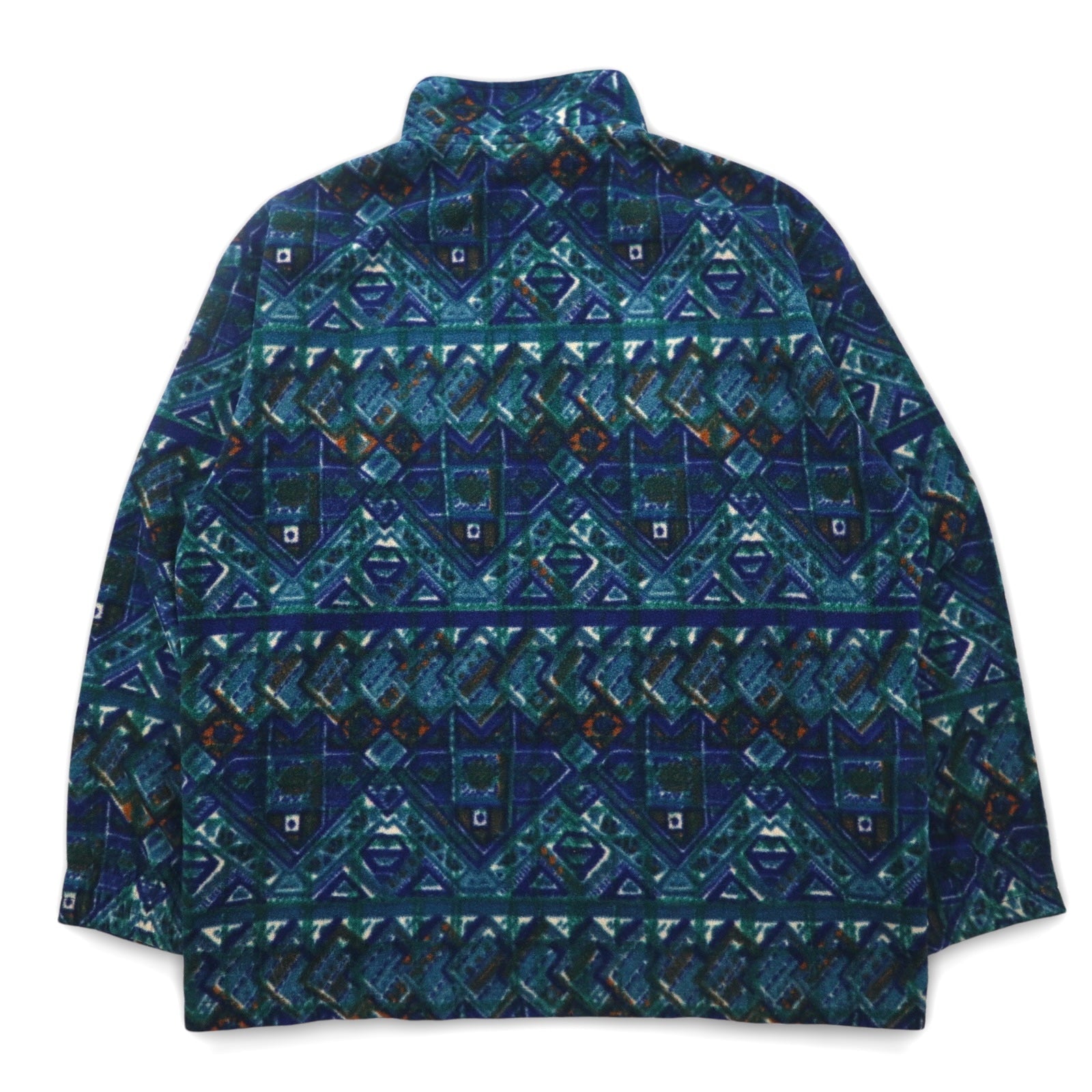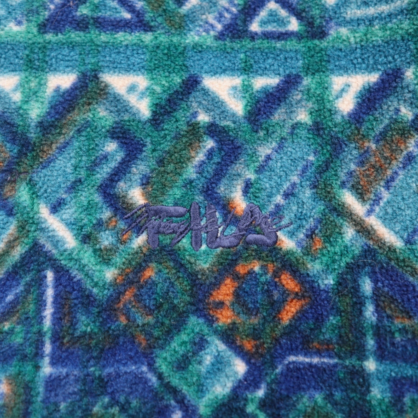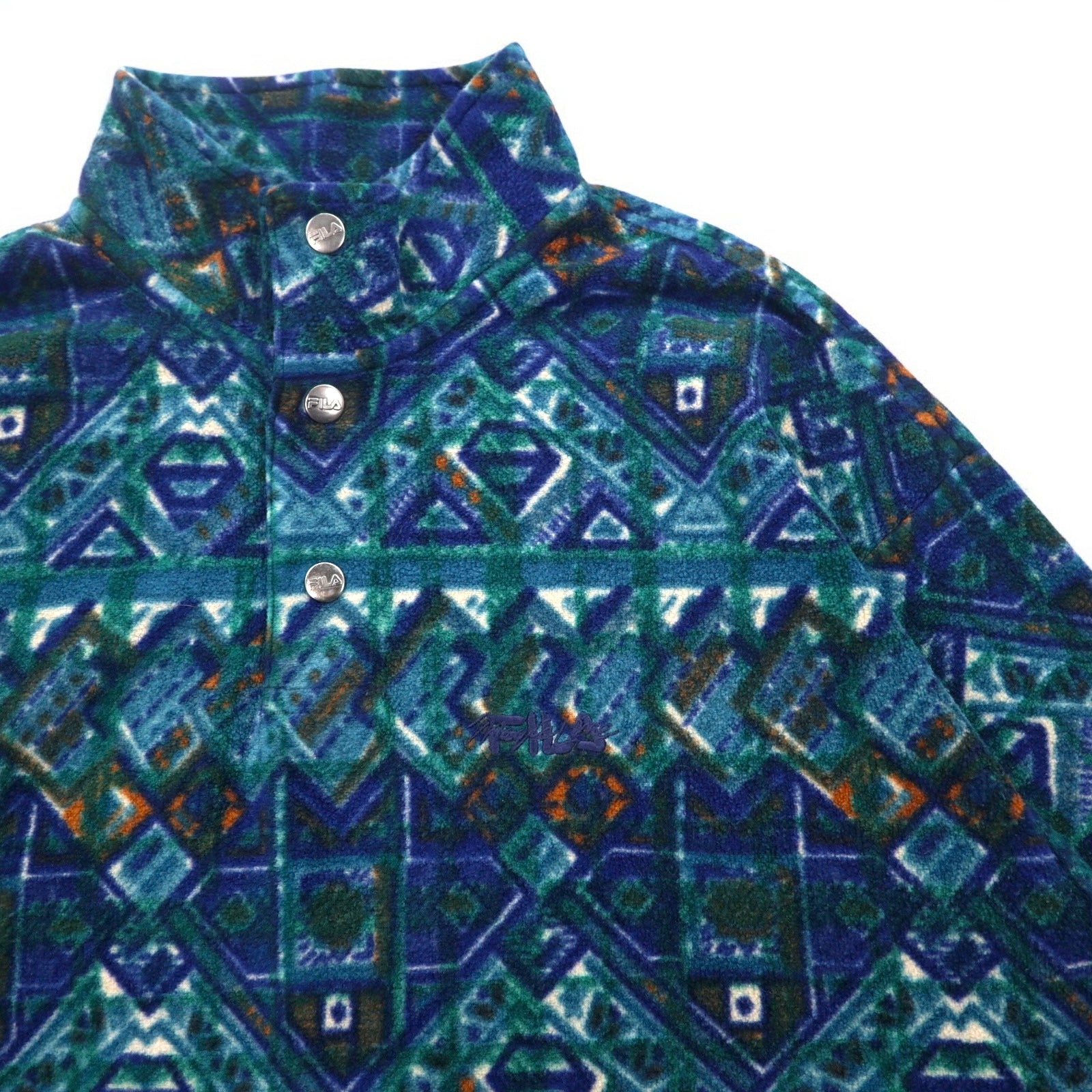 FILA イタリア製 90年代 総柄 ハーフボタン スナップT フリースジャケット XXL グリーン ブルー