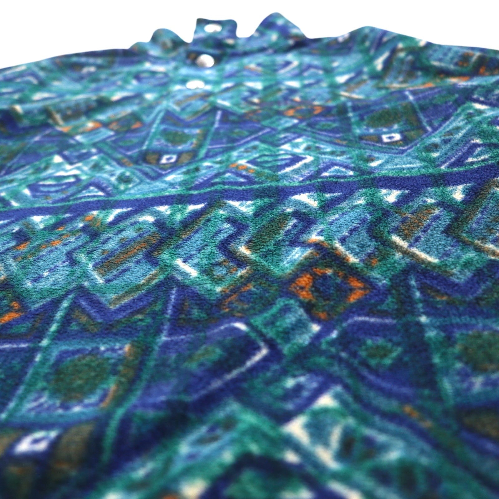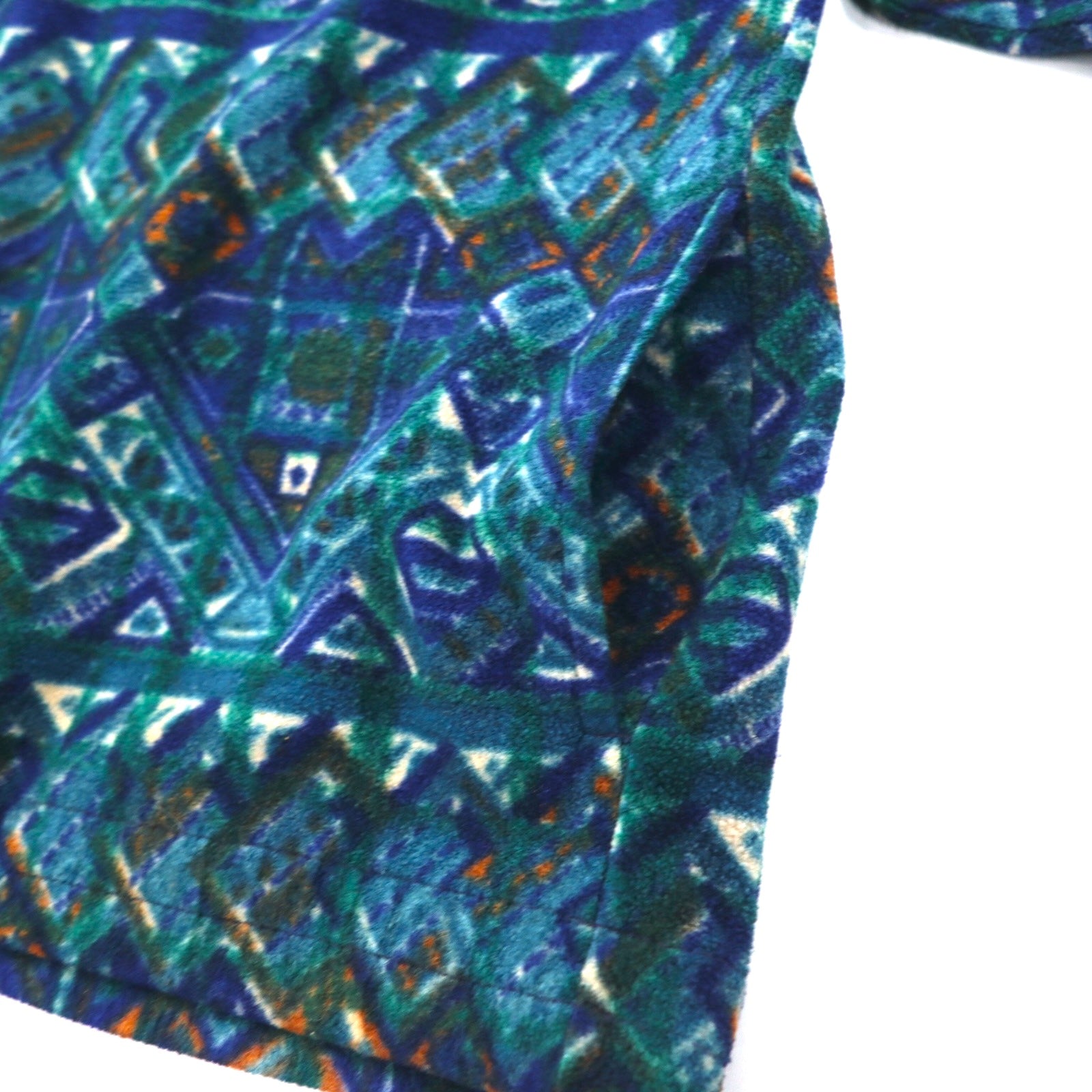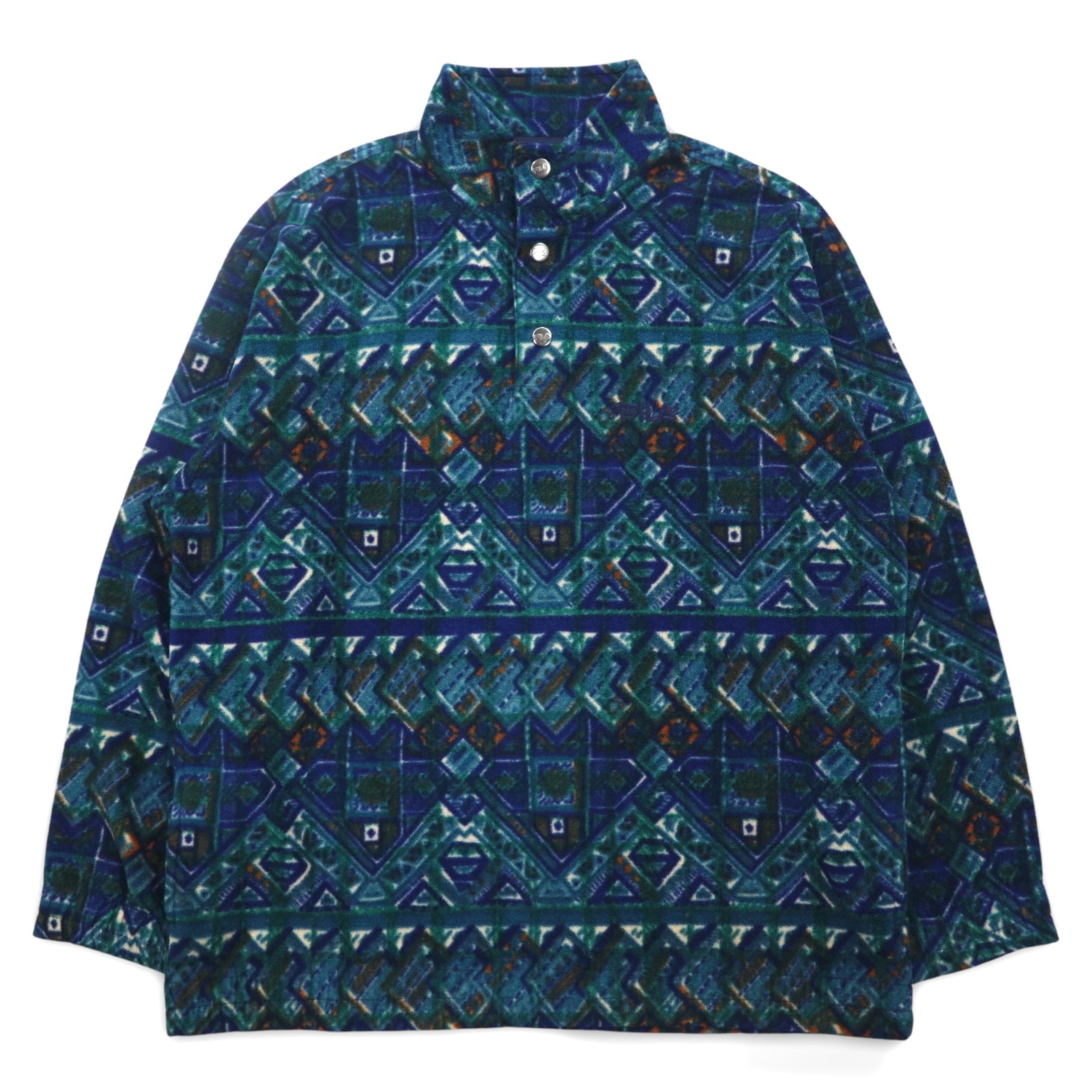 FILA イタリア製 90年代 総柄 ハーフボタン スナップT フリースジャケット XXL グリーン ブルー