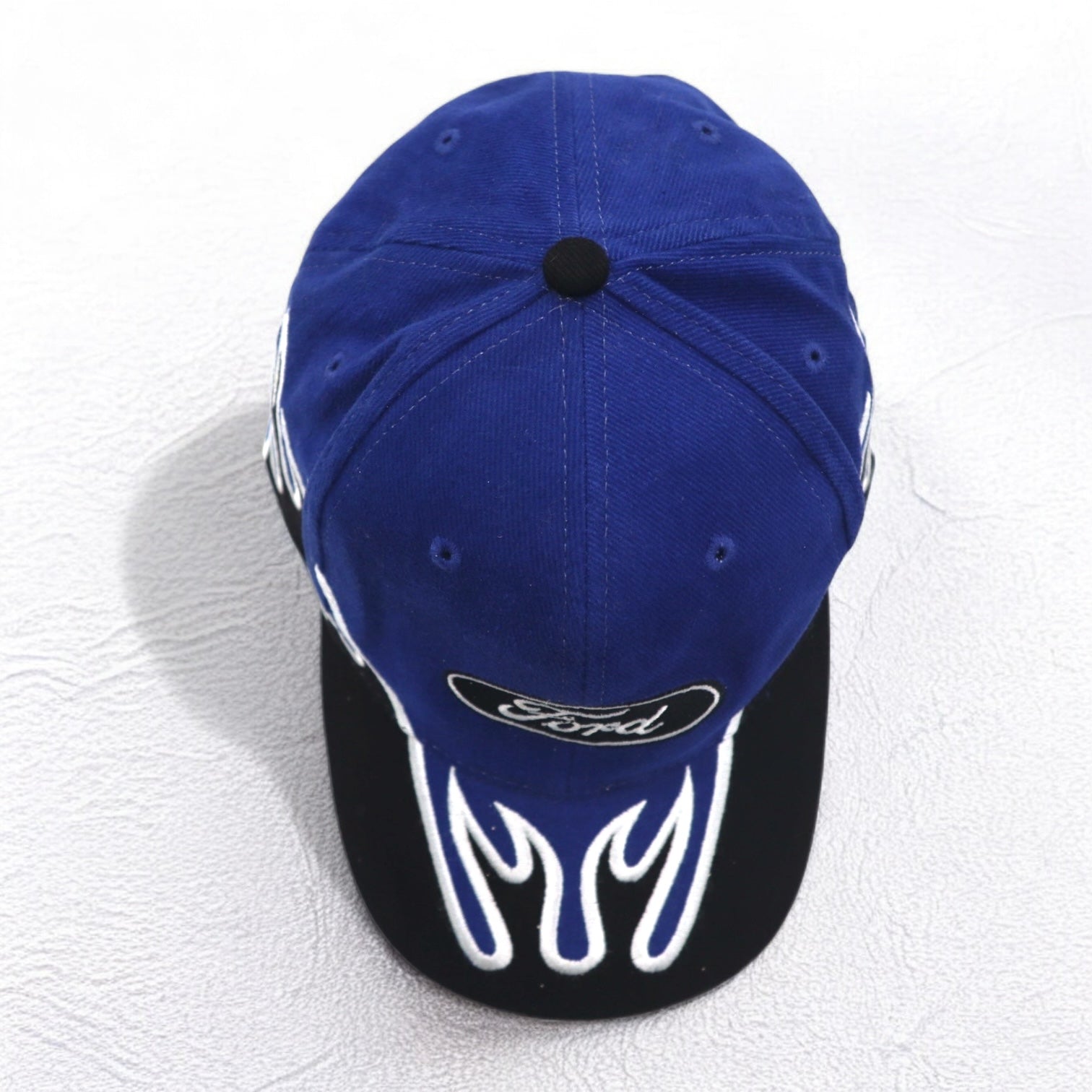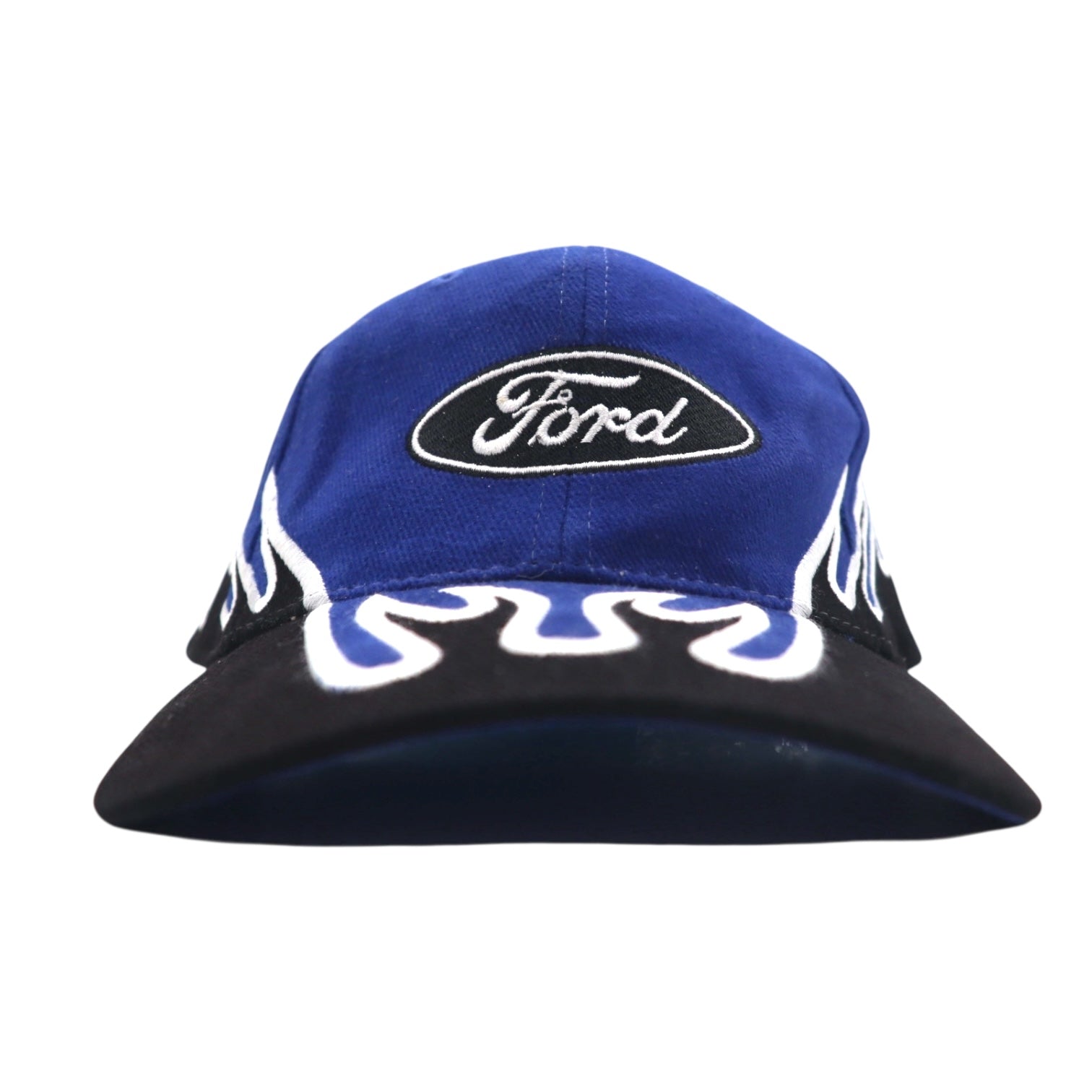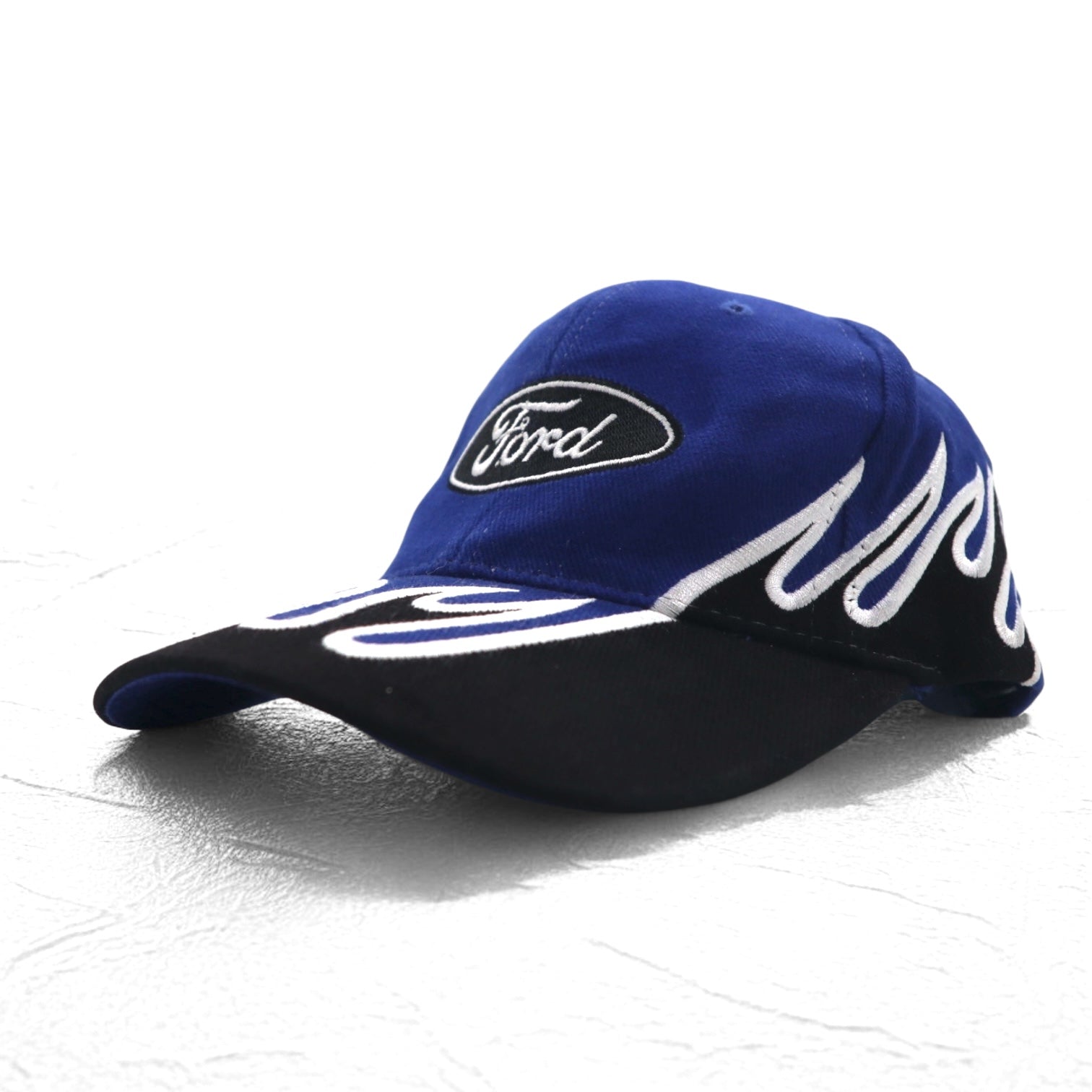 Ford 90年代 ファイヤーパターン 6パネルキャップ FREE ベルト ブルー ブラック レーシング