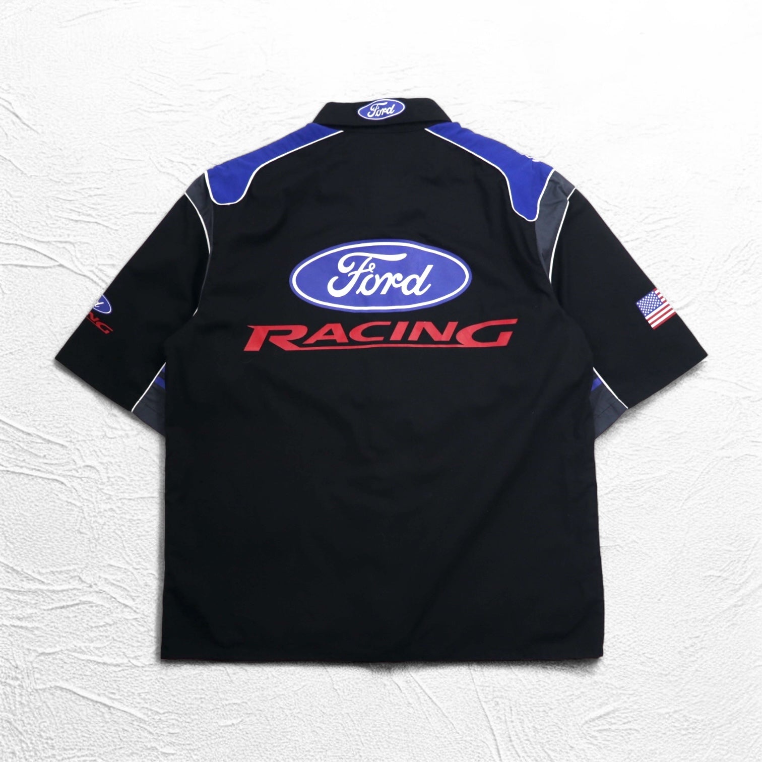 Ford by JEFF HAMILTON 半袖 レーシングシャツ L ブラック スナップボタン 両面プリント