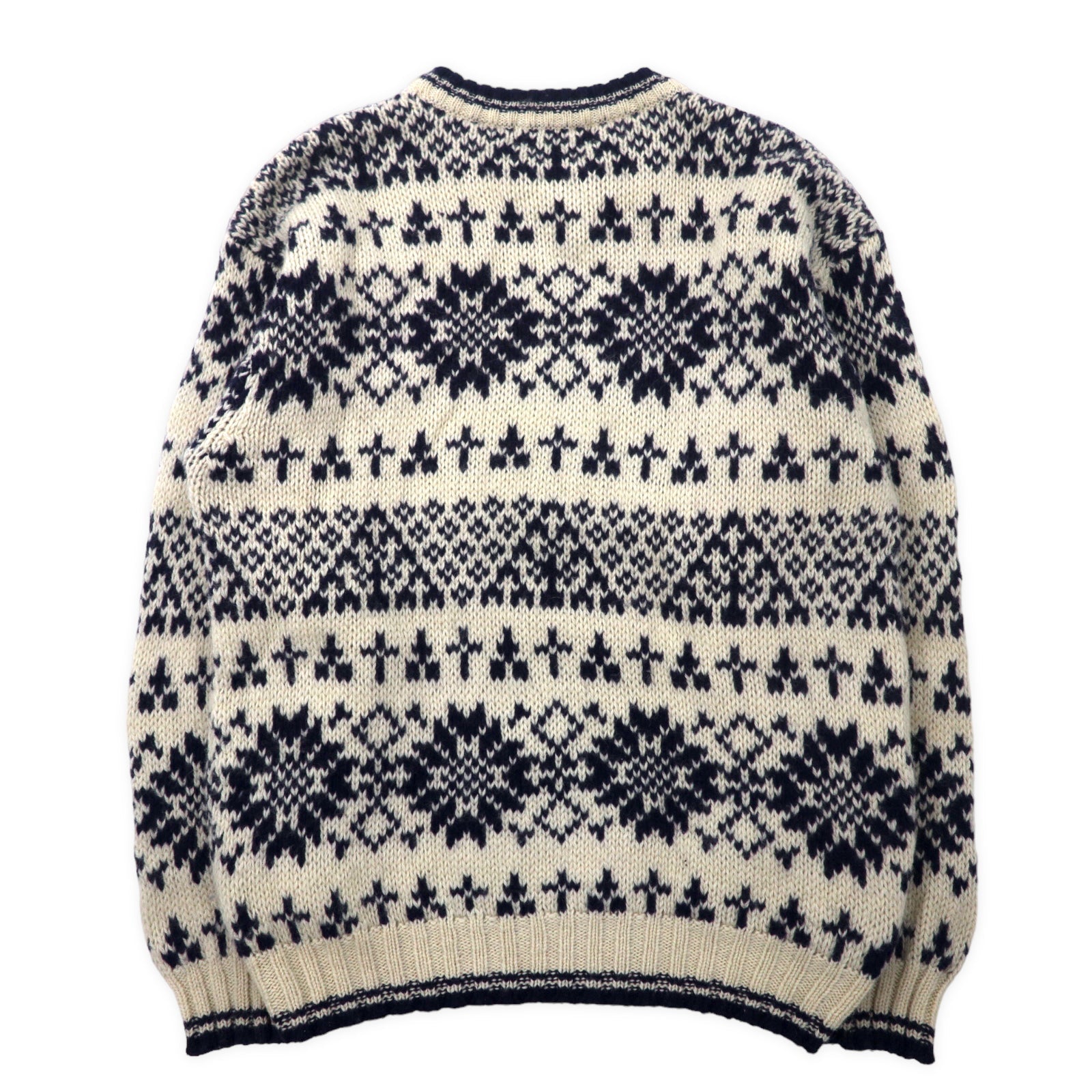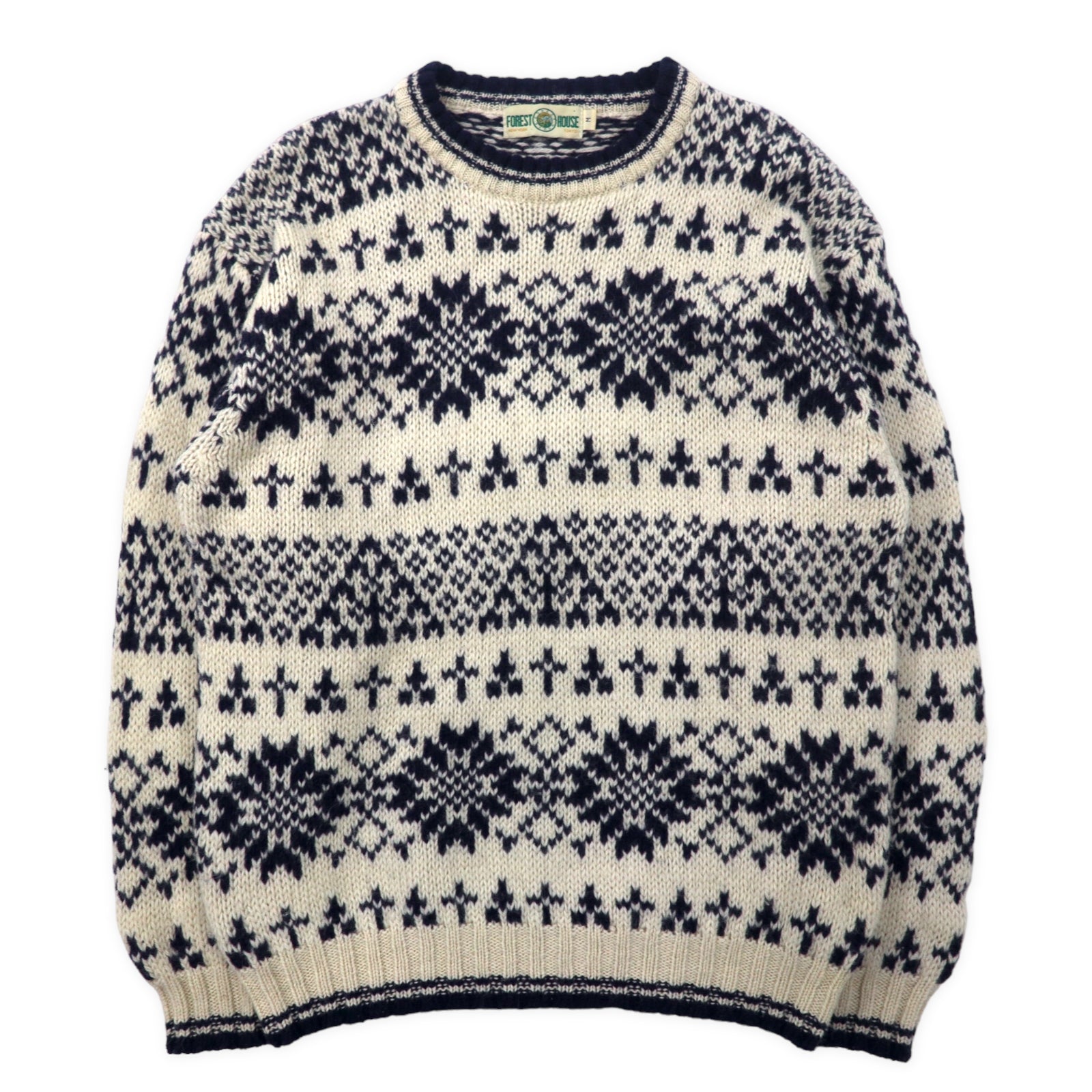 FOREST HOUSE ノルディック ニット セーター M ホワイト ネイビー ウール ビッグサイズ