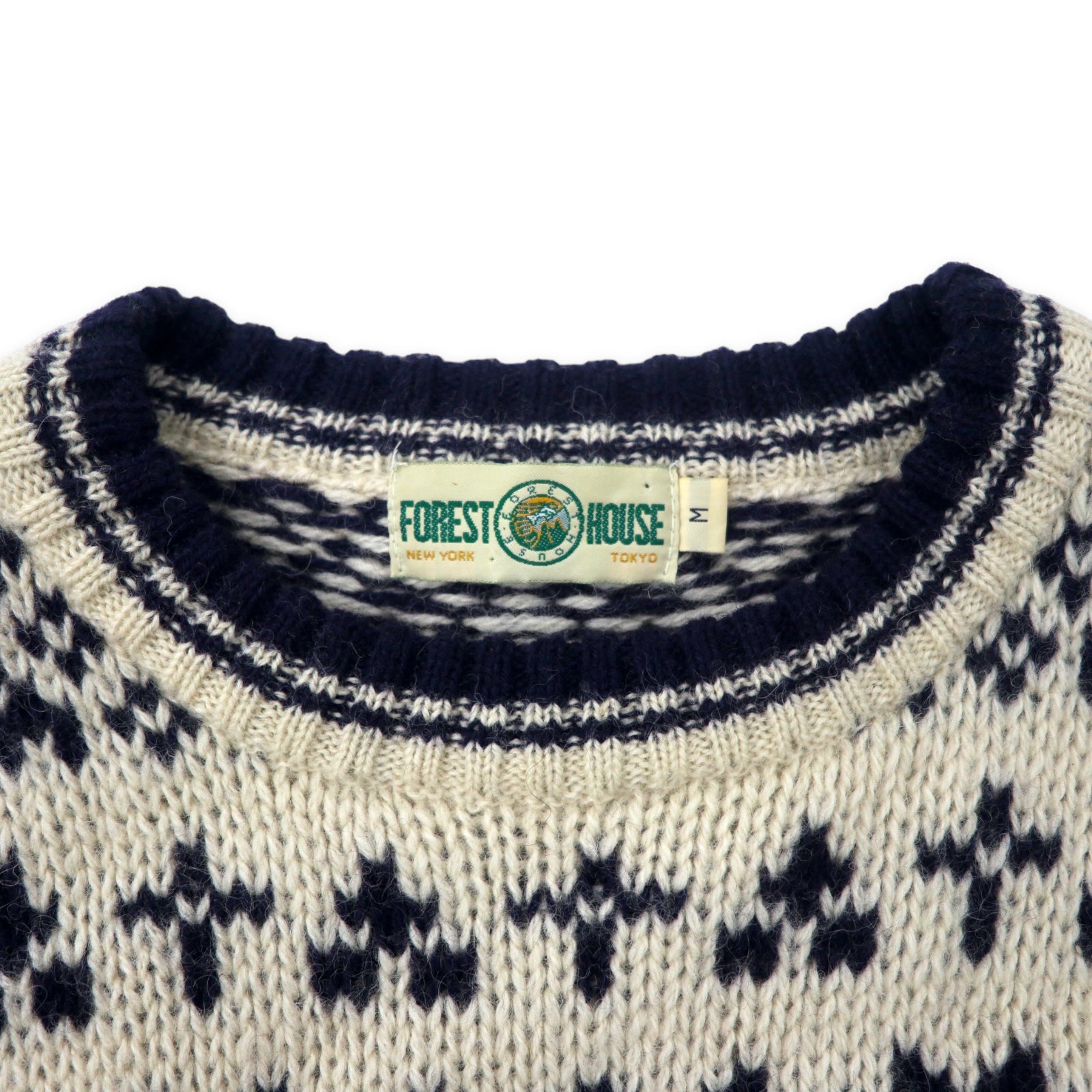 FOREST HOUSE ノルディック ニット セーター M ホワイト ネイビー ウール ビッグサイズ