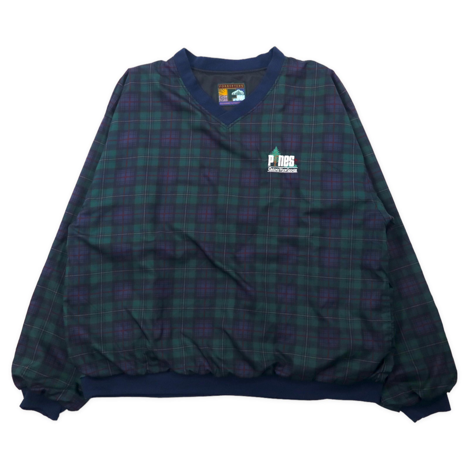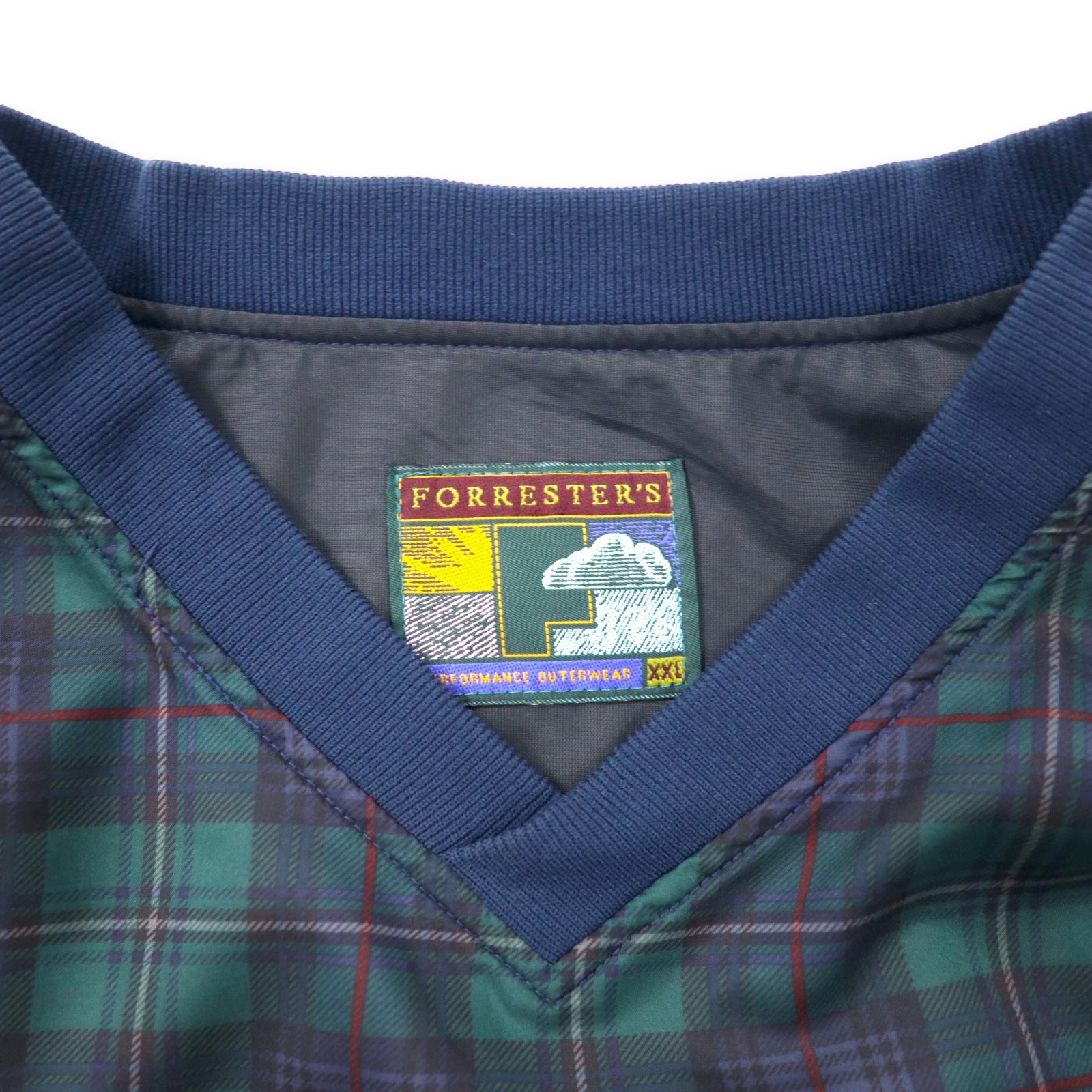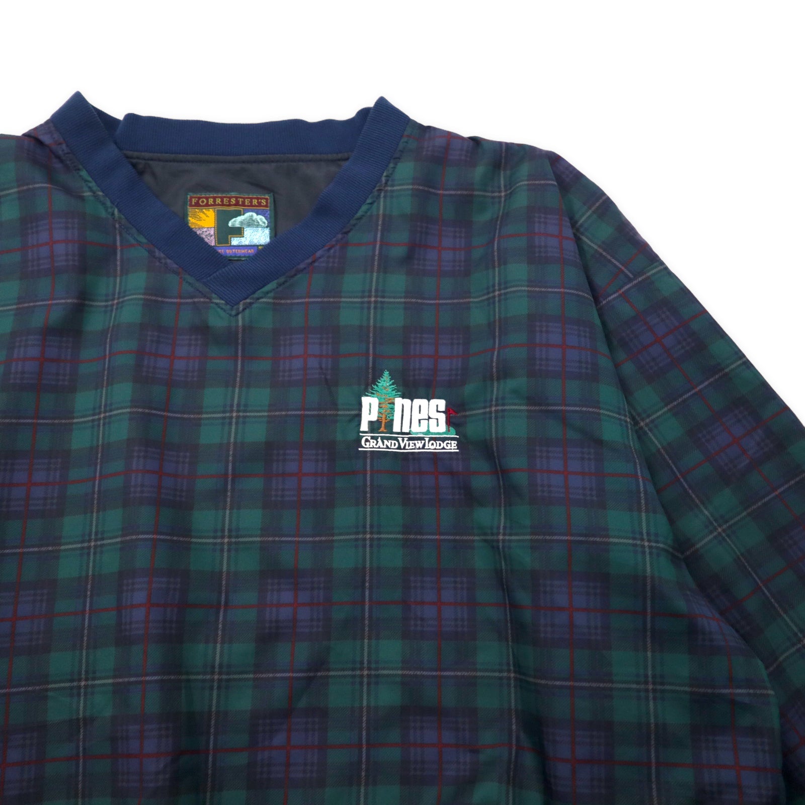 FORRESTER'S ピステ プルオーバー ナイロンジャケット XXL グリーン タータンチェック ポリエステル GRAND VIEW LODGE 刺繍 ビッグサイズ