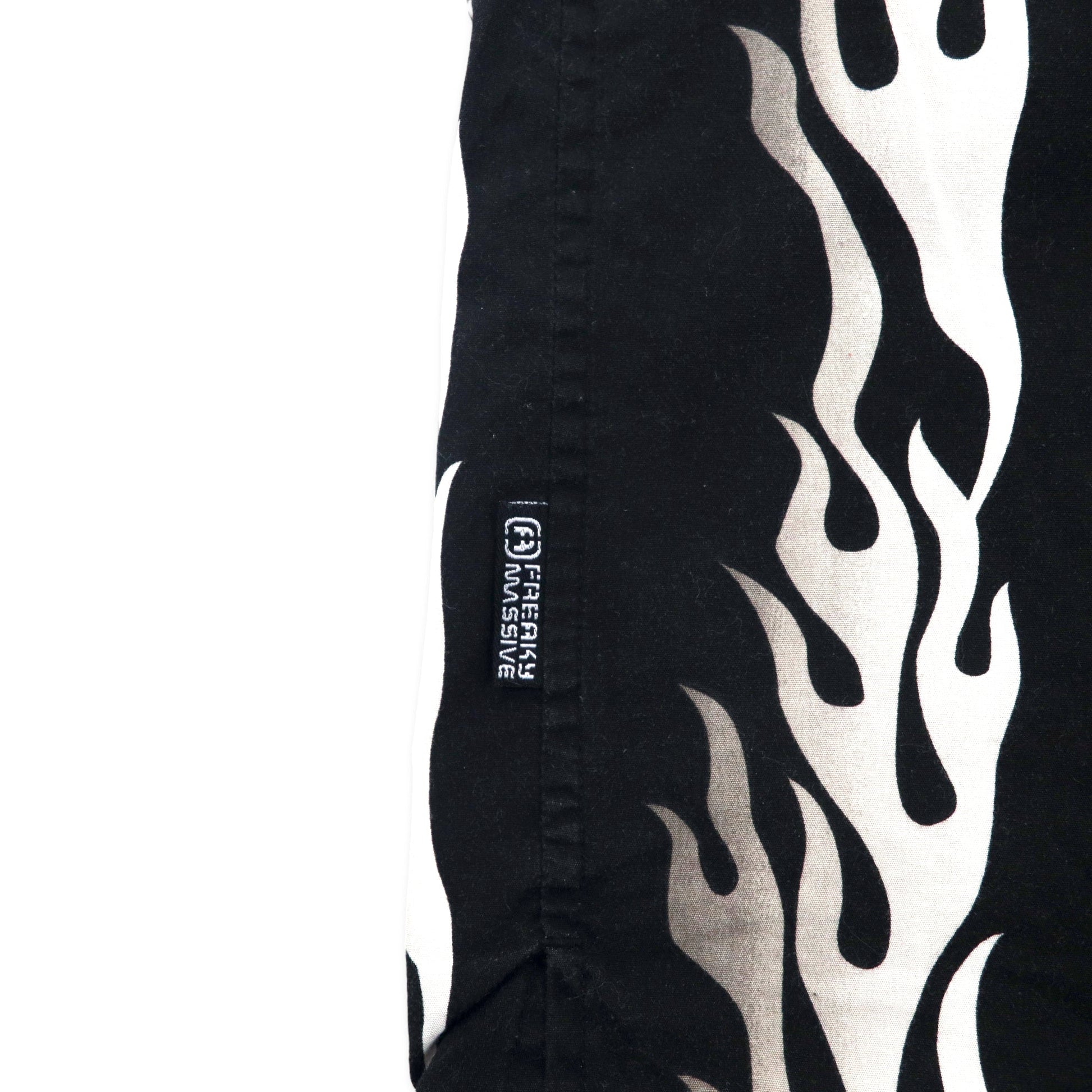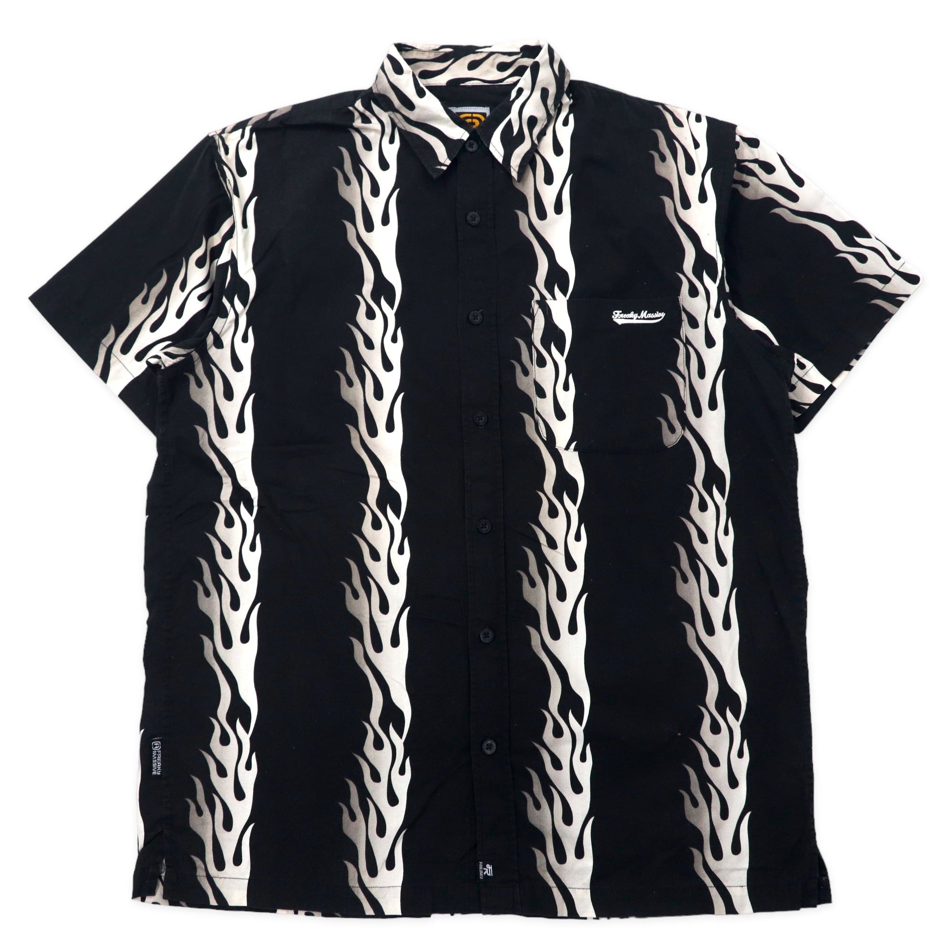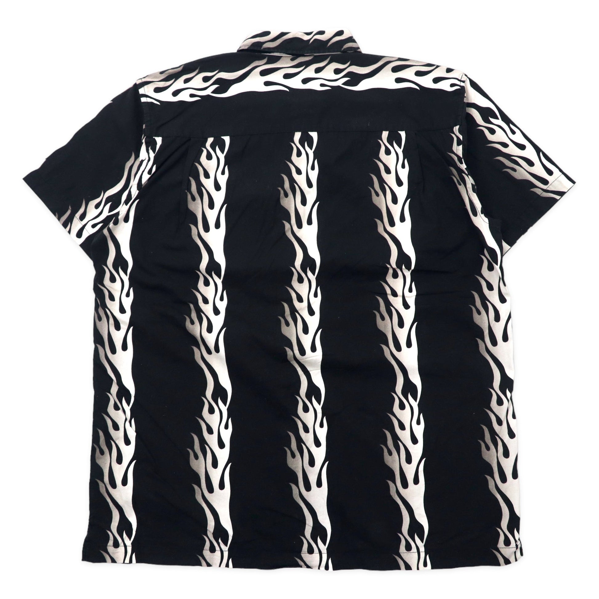 FREAKY 90年代 ファイヤーパターン 半袖シャツ アロハシャツ L ブラック コットン 総柄