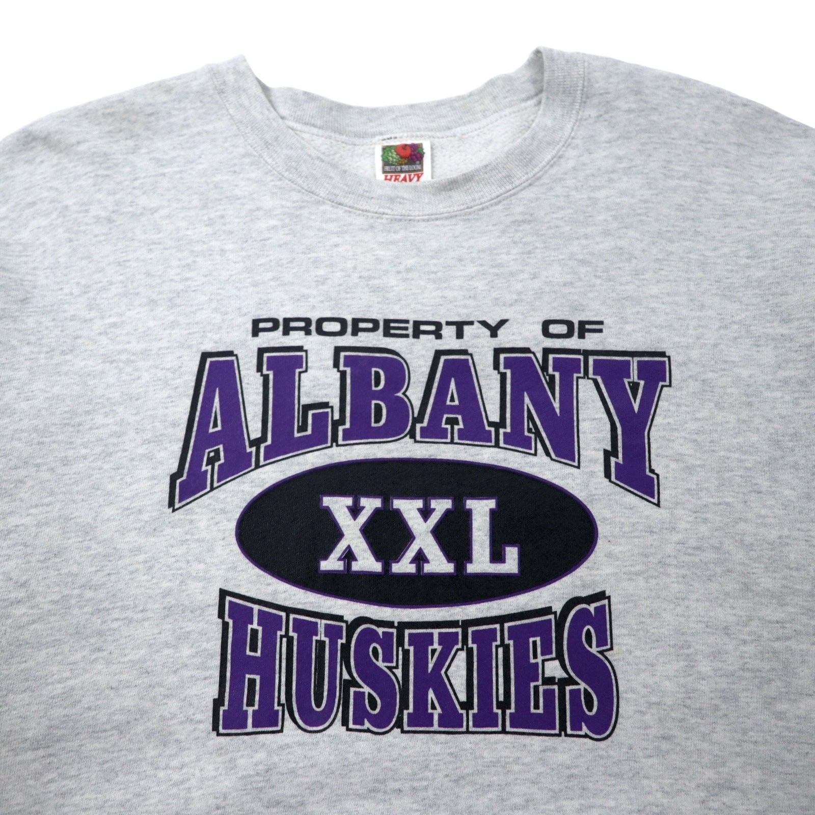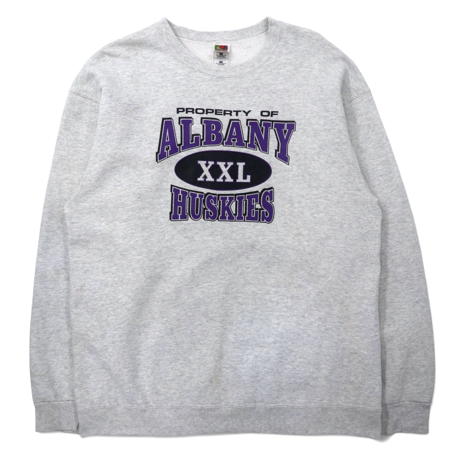 FRUIT OF THE LOOM 00年代 カレッジ プリント スウェット XL グレー コットン ALBANY HUSKIES 3段プリント メキシコ製