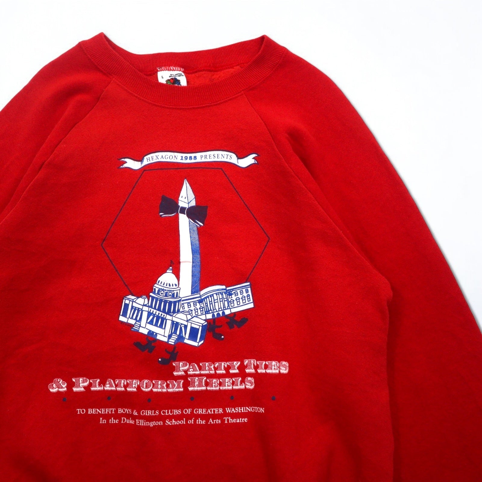 FRUIT OF THE LOOM 80年代 USA製 プリント スウェット L レッド コットン 裏起毛