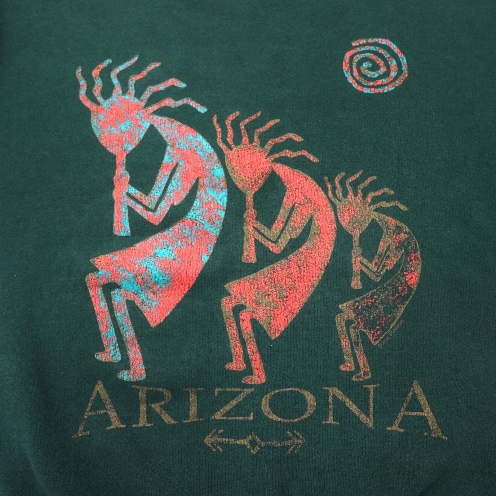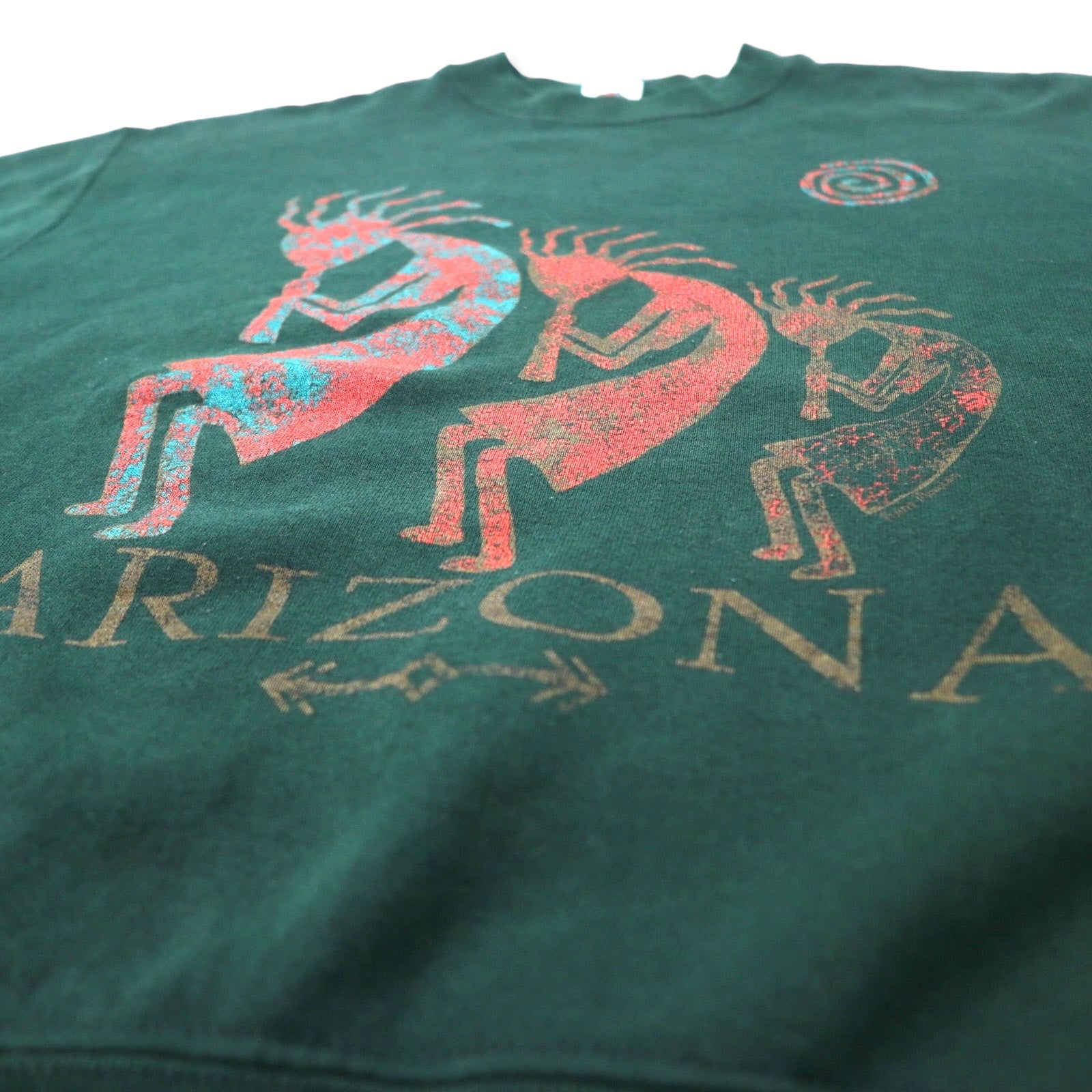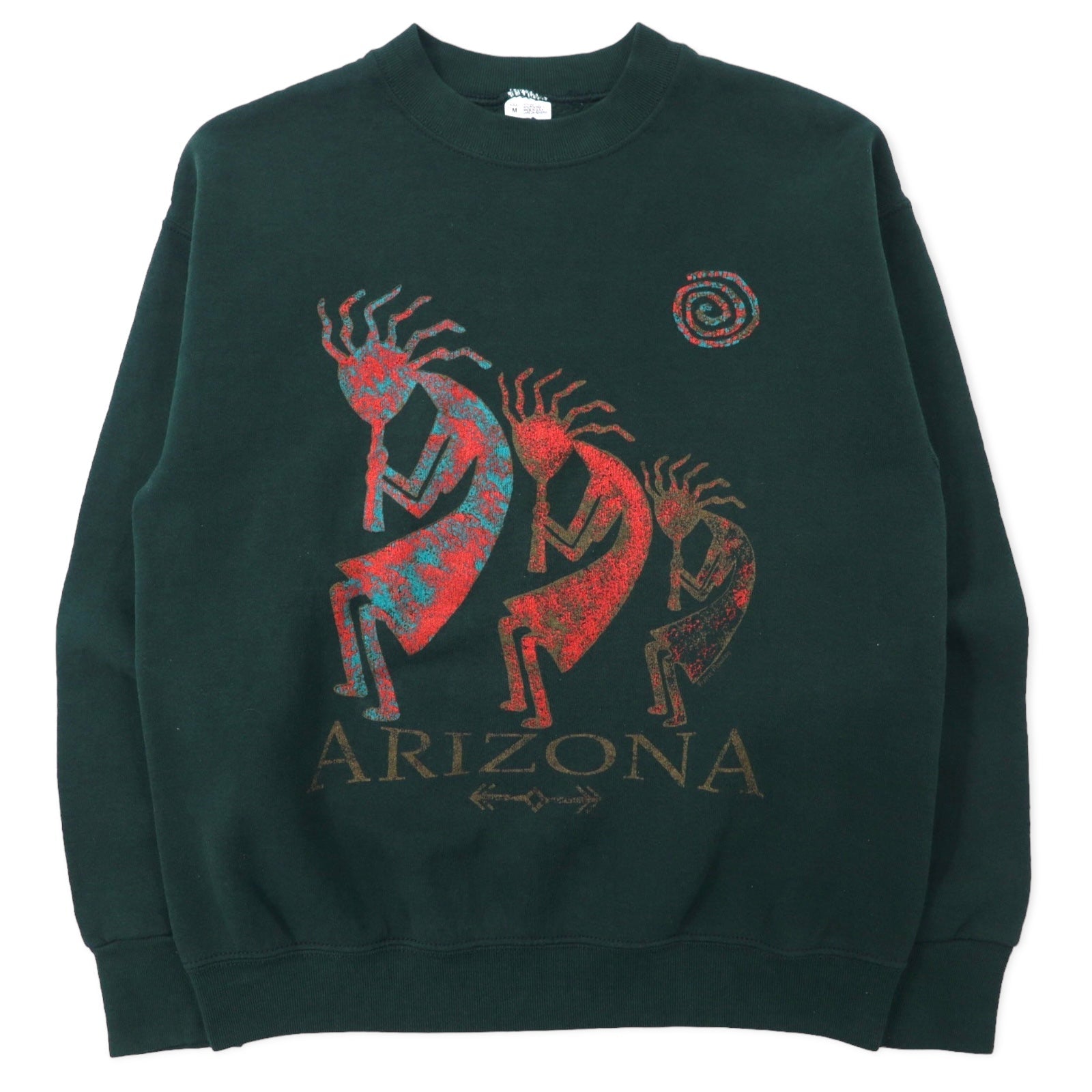 FRUIT OF THE LOOM USA製 90年代 インディアン プリント スウェット M グリーン コットン ARIZONA ココペリ