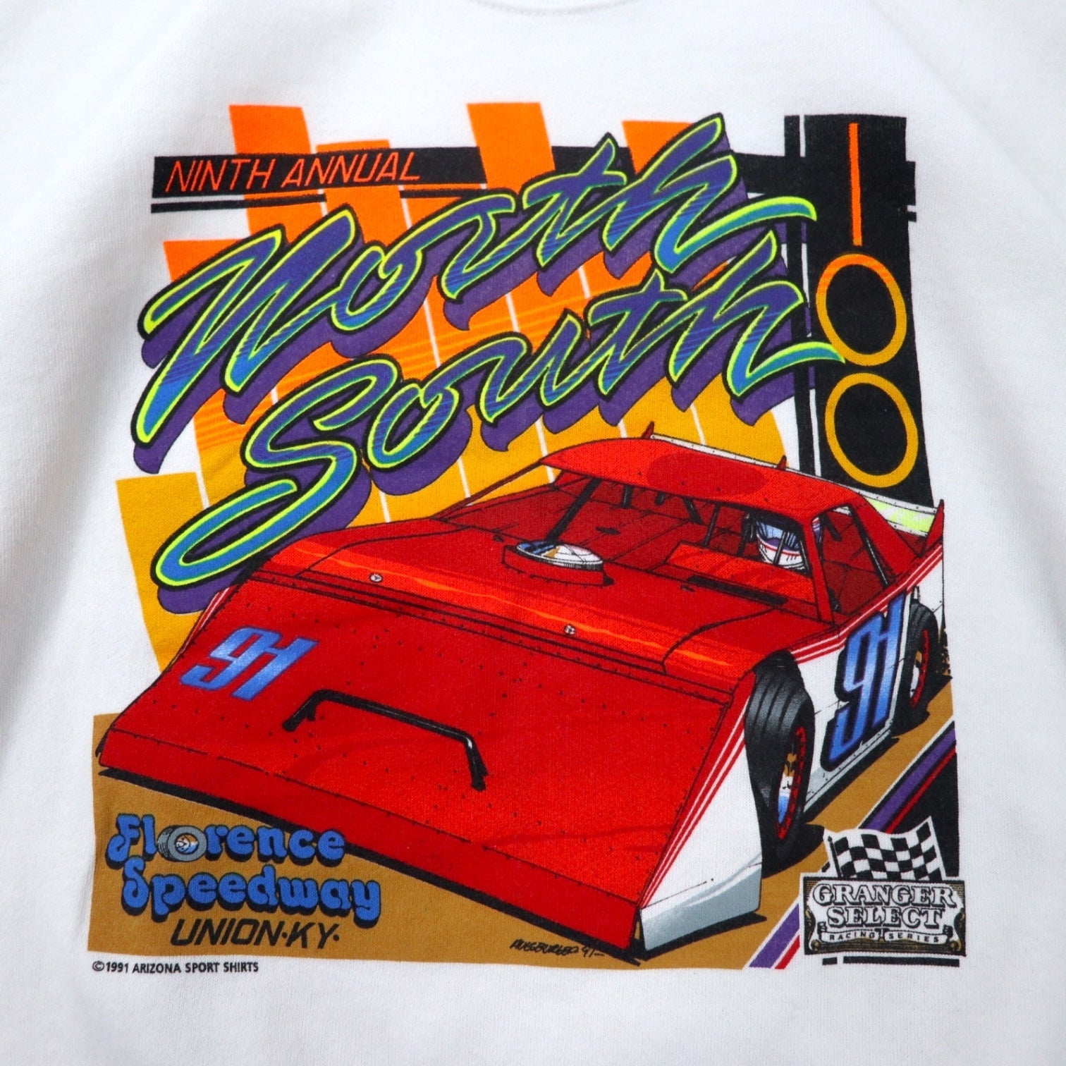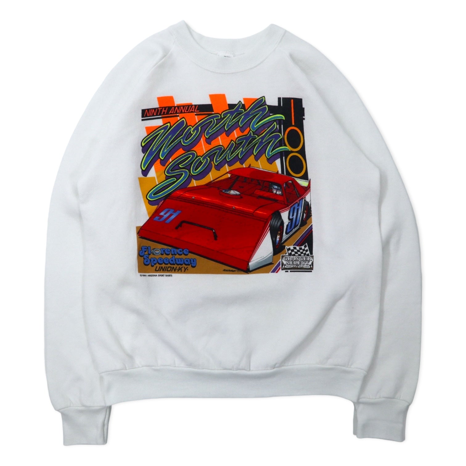 FRUIT OF THE LOOM USA製 90年代 レーシングカー プリント スウェット L ホワイト コットン 裏起毛 ARIZONA SPORT SHIRTS