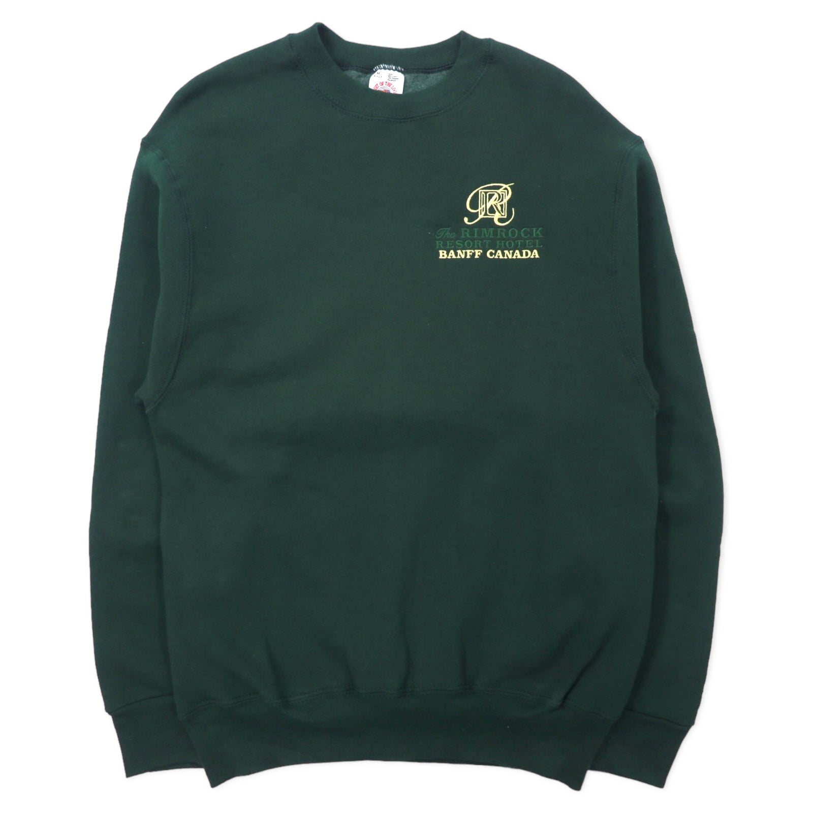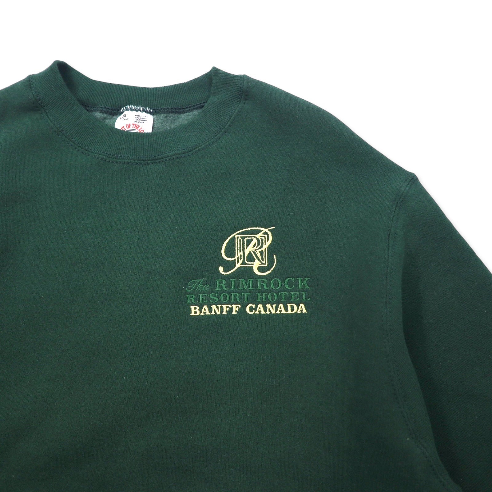 FRUIT OF THE LOOM USA製 90年代 ワンポイント 刺繍 スウェット M グリーン コットン 裏起毛 BANFF CANADA