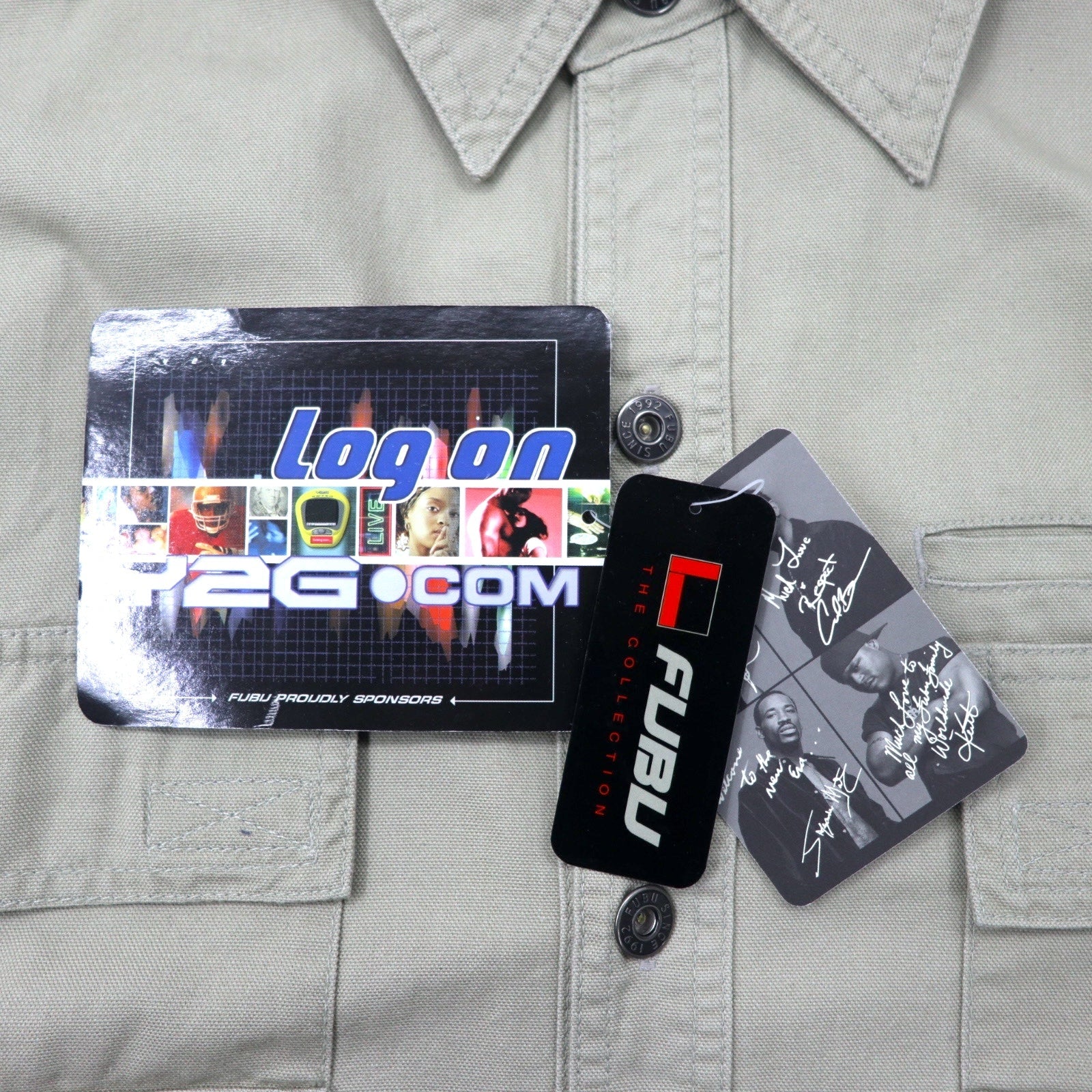 FUBU 00年代 ユーティリティ ワークシャツ M ベージュ コットン ビッグサイズ 未使用品