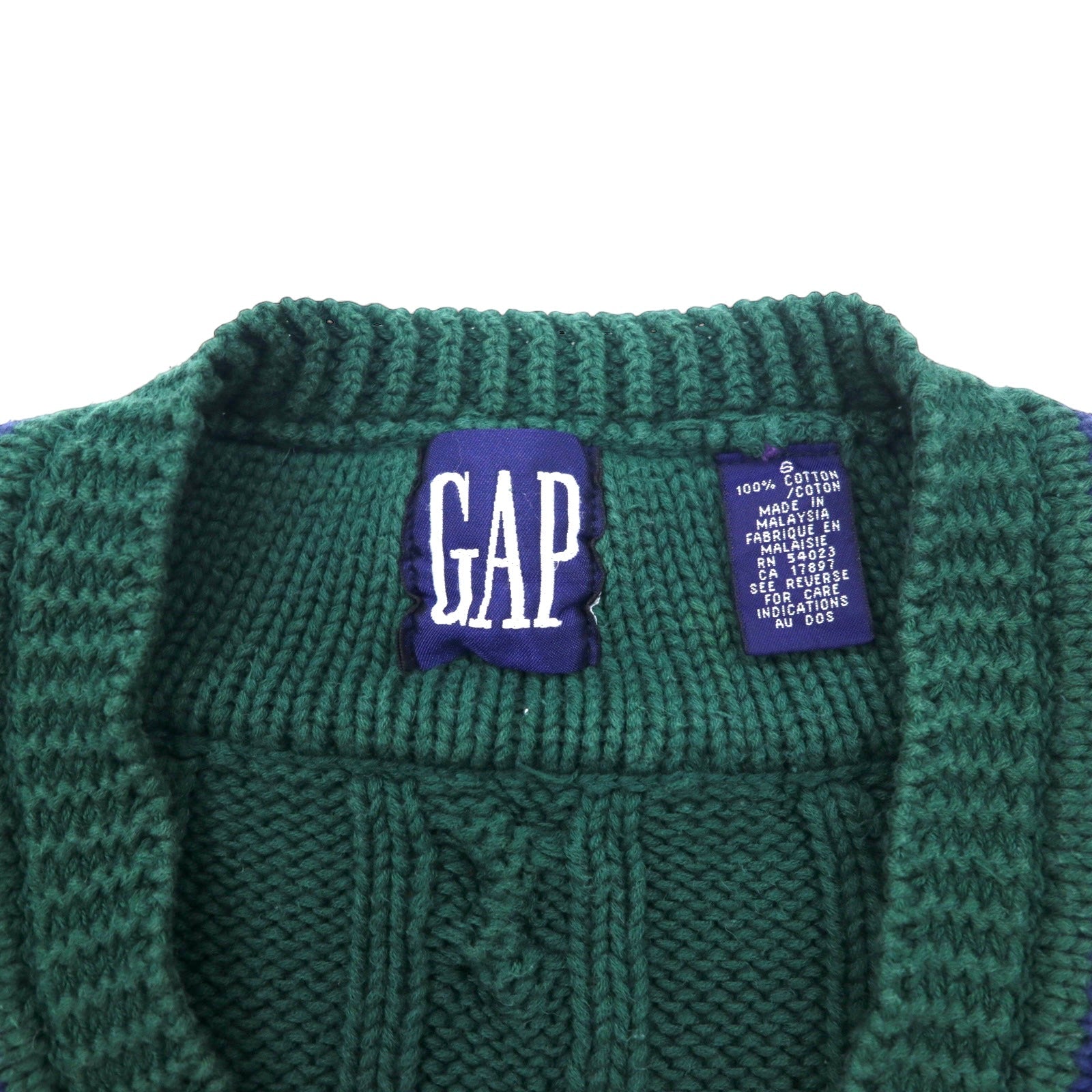 GAP 90年代 オールドギャップ チルデン ニット Vネック セーター L グリーン コットン