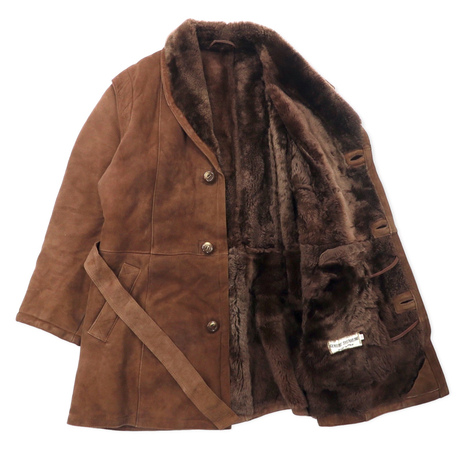 GENUINE SHEARLING スペイン製 80年代 ショールカラー ムートンステンカラーコート L ブラウン 羊革