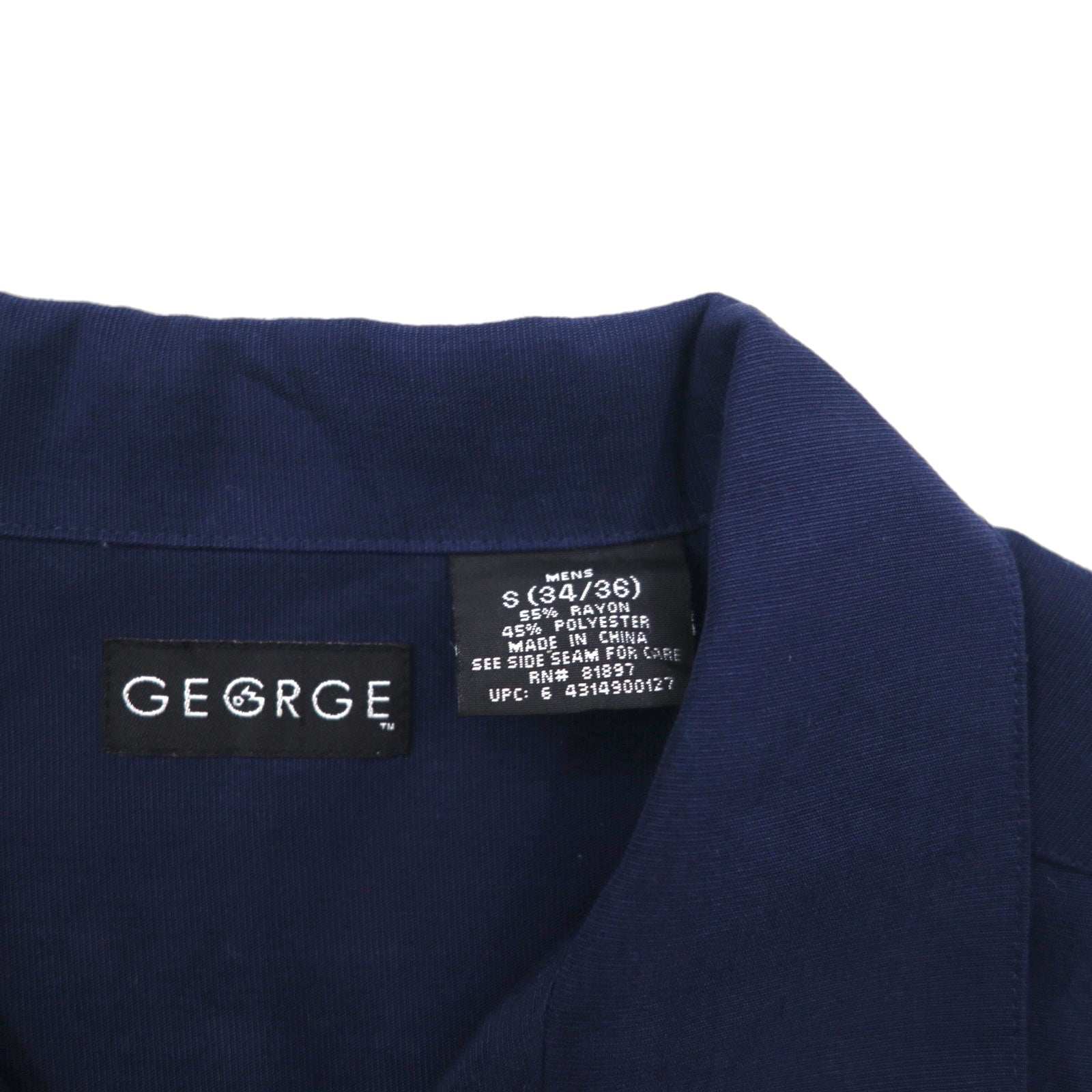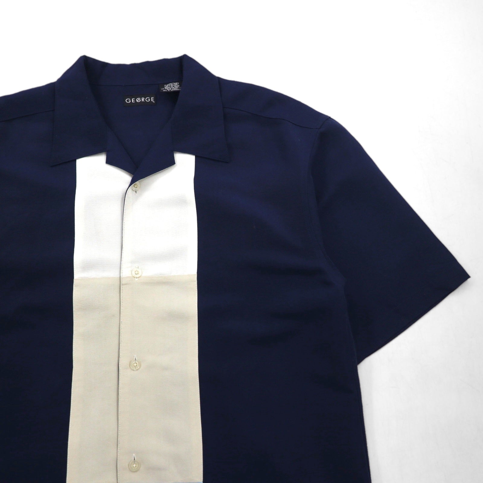 GEORGE 半袖 オープンカラー 開襟 ボックスシャツ L ネイビー レーヨン ポリエステル