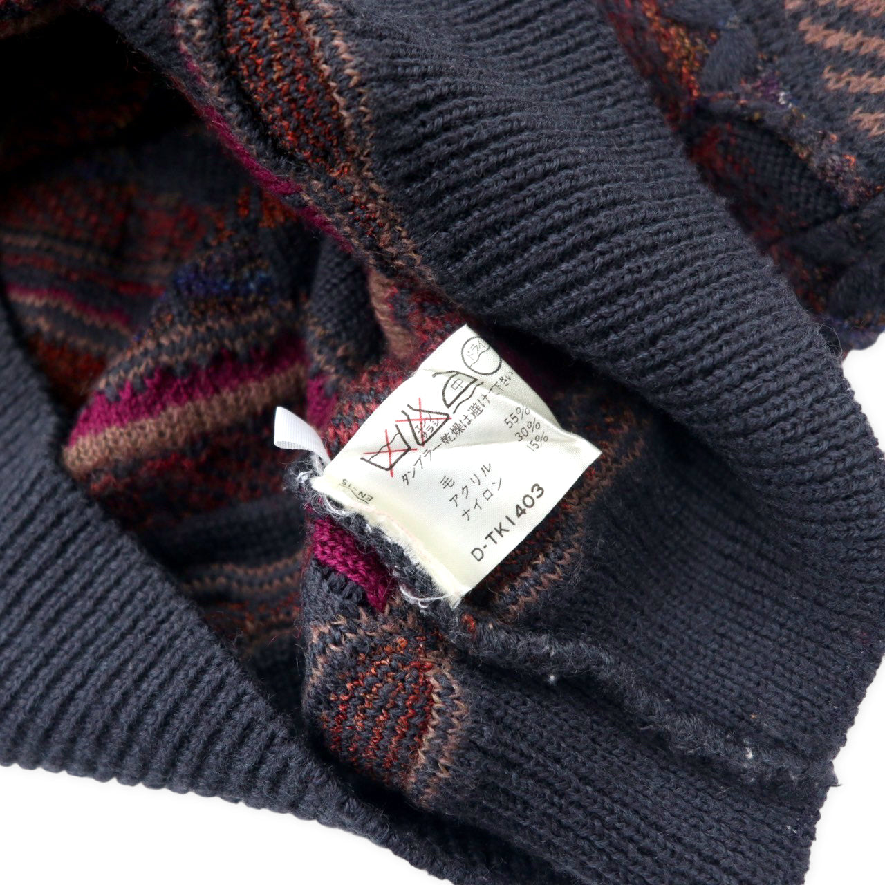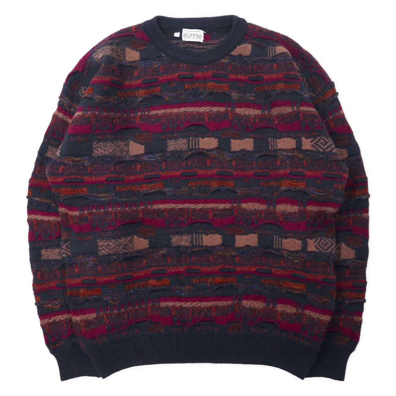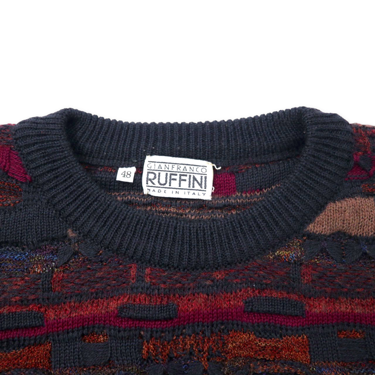 GIANFRANCO RUFFINI イタリア製 90年代 3Dニット セーター 48 カーキ パープル ウール アクリル