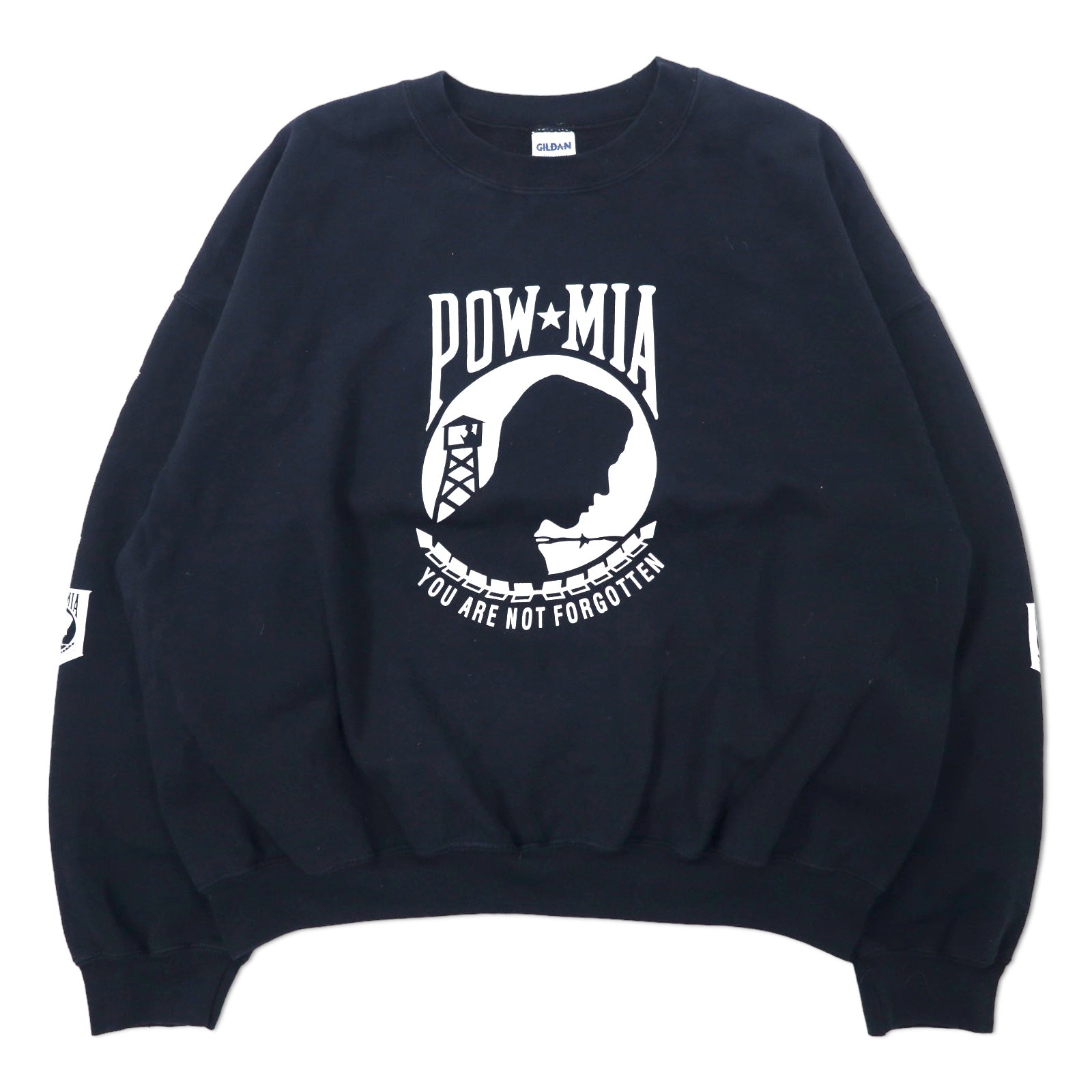 GILDAN プリント スウェット 2XL ブラック コットン 裏起毛 両面プリント POW MIA ベトナム戦争