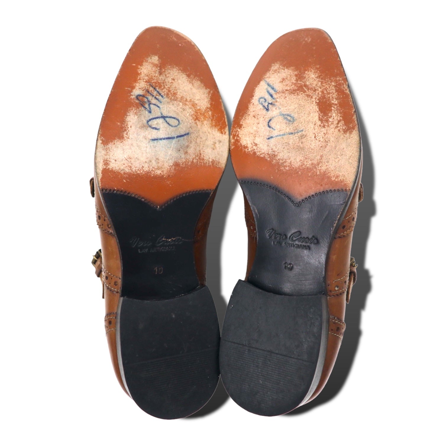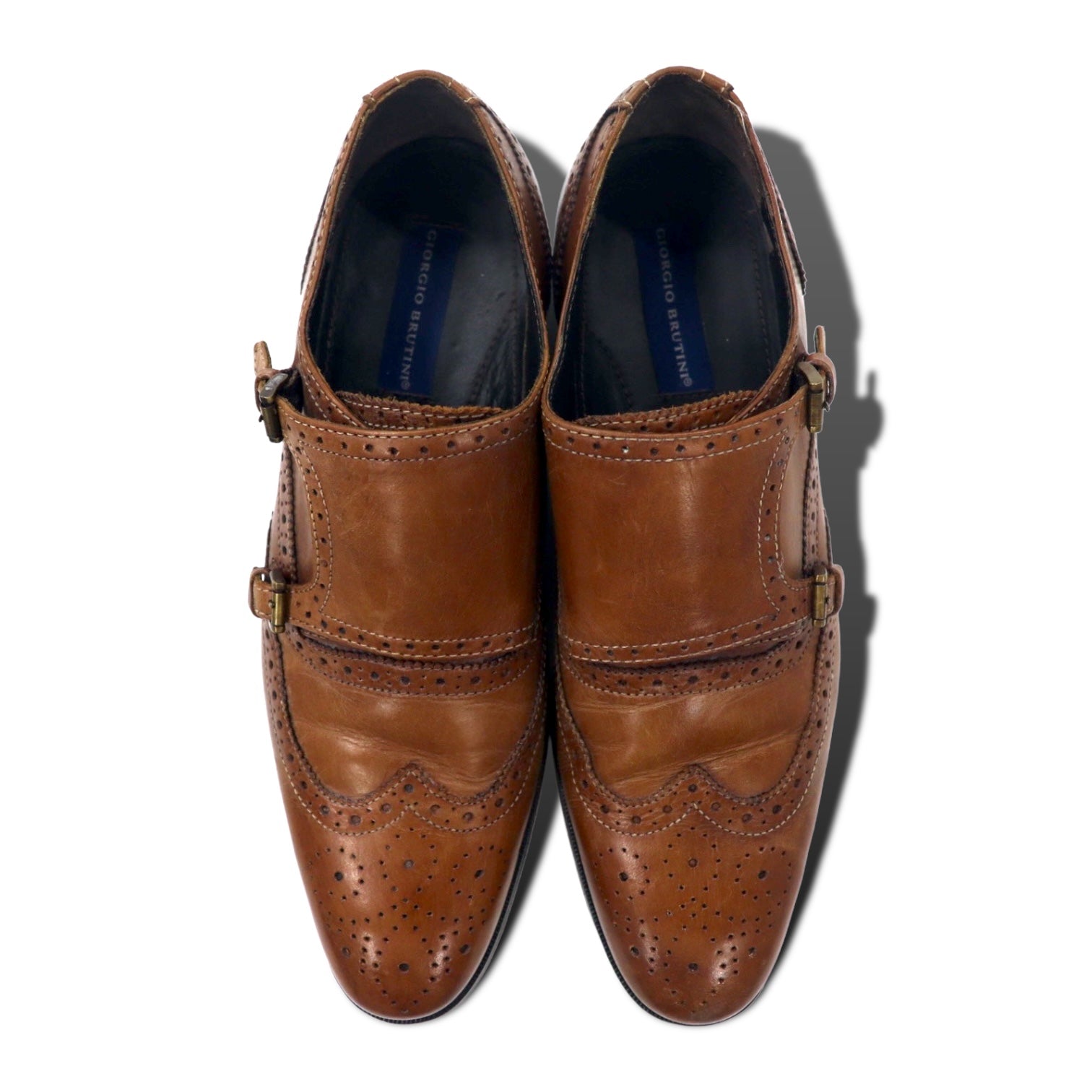 GIORGIO BRUTINI ダブル モンクストラップ ウイングチップ ドレスシューズ 28cm ブラウン レザー メダリオン 248764-1