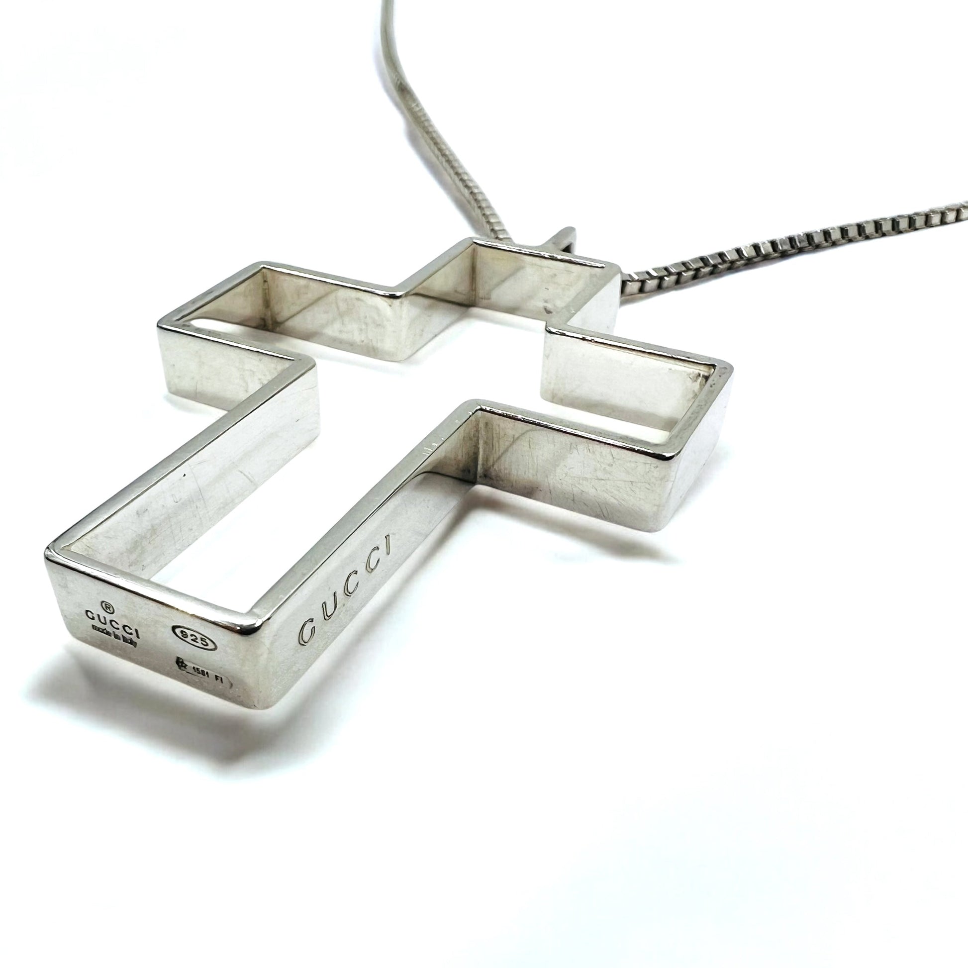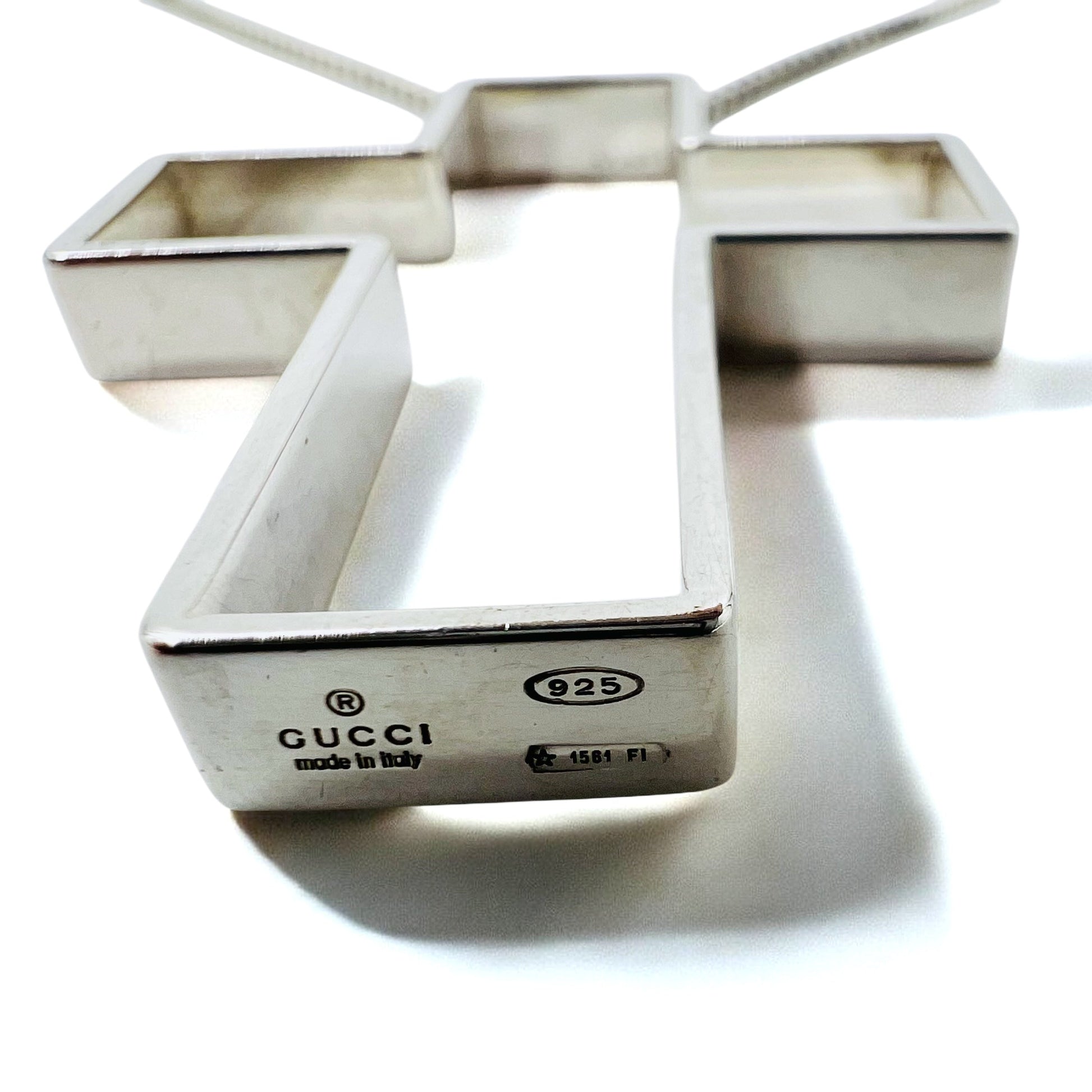 GUCCI イタリア製 オープンクロス ネックレス ペンダント シルバー SV925 十字架 3D クロス
