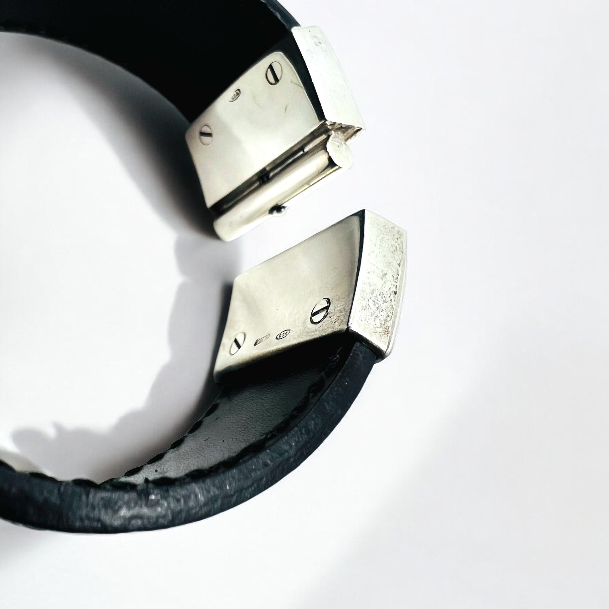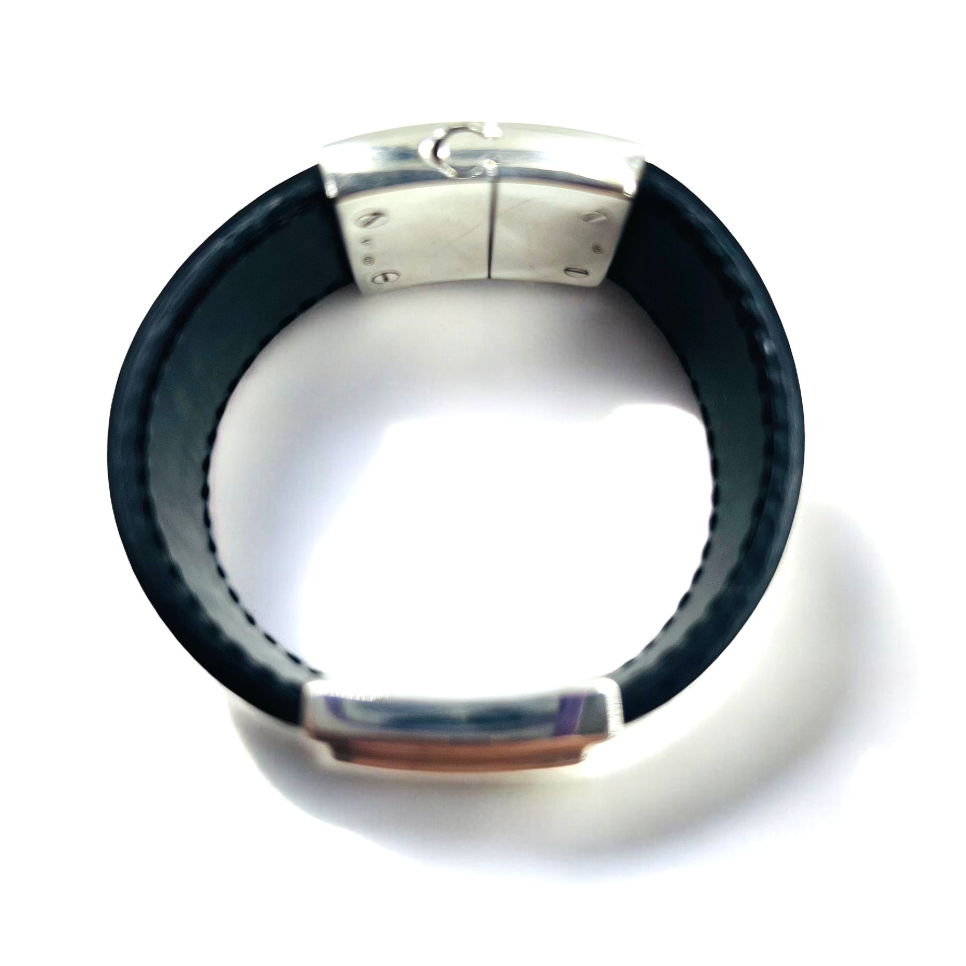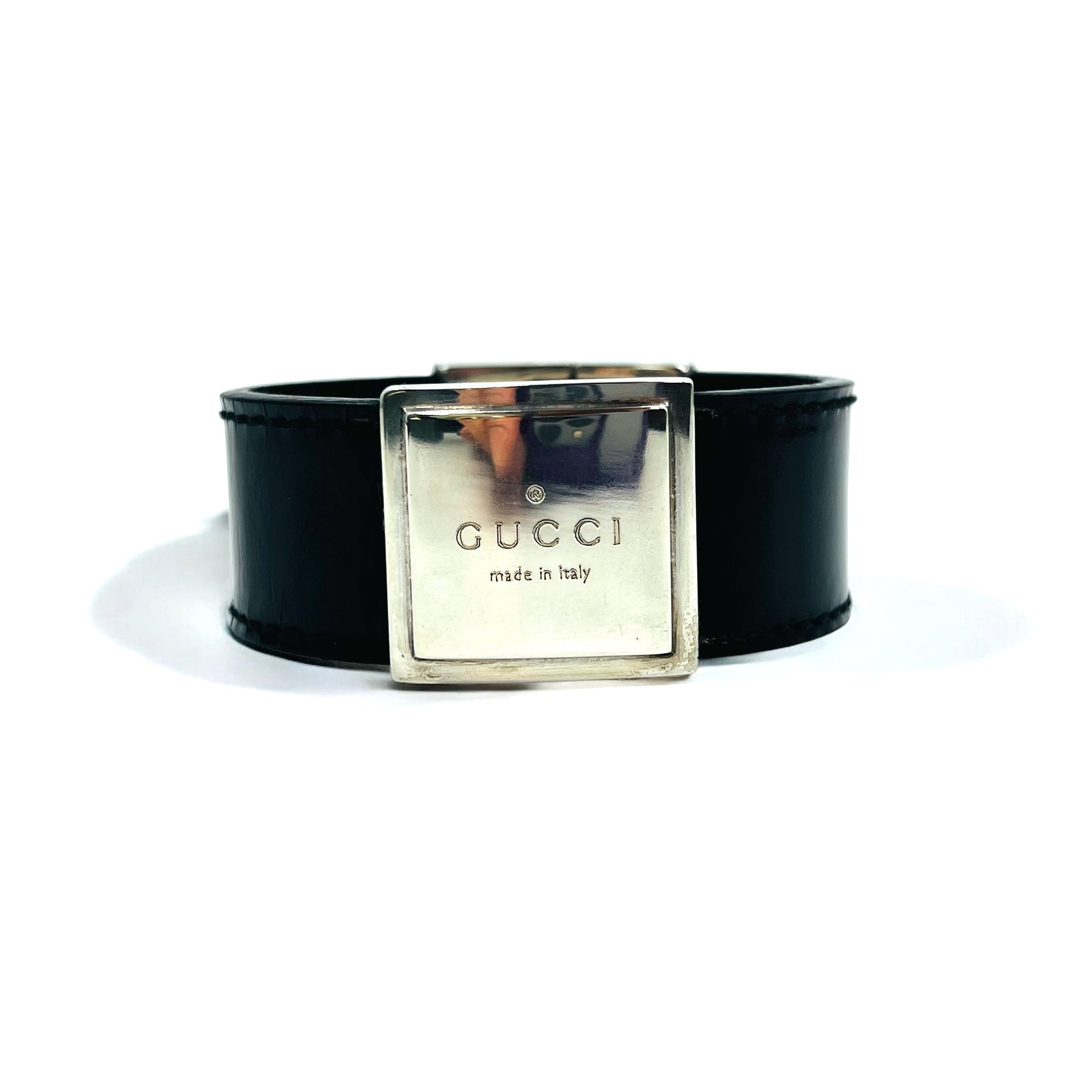 GUCCI イタリア製 ロゴプレート レザー ブレスレット ブラック シルバー 925