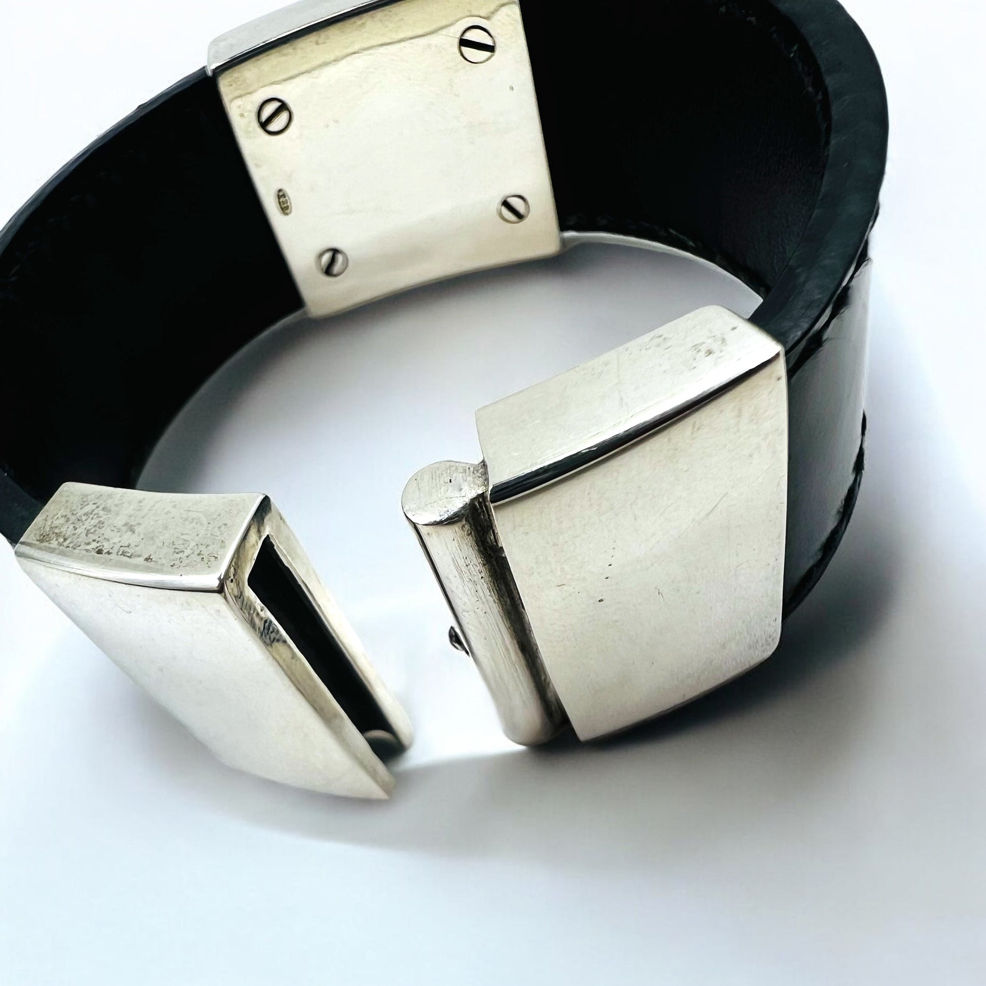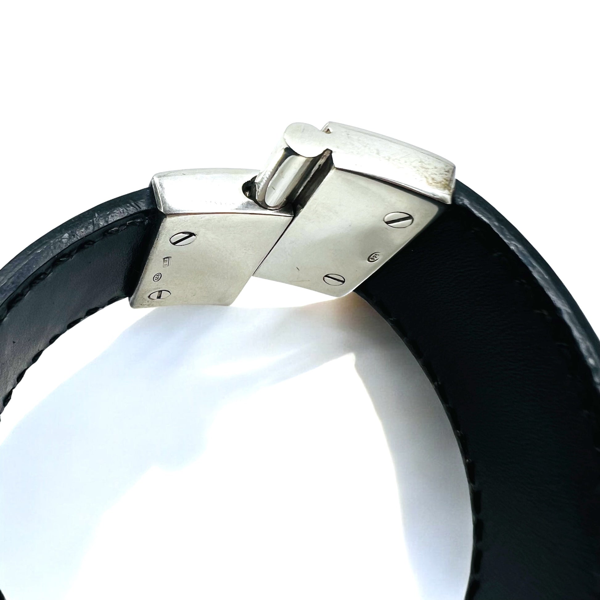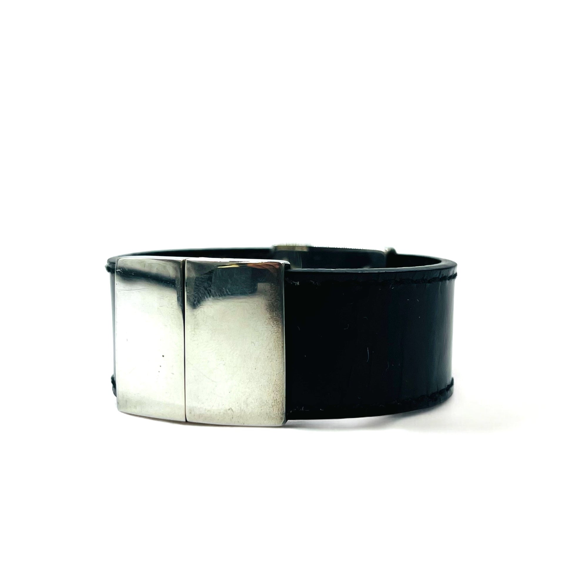 GUCCI イタリア製 ロゴプレート レザー ブレスレット ブラック シルバー 925