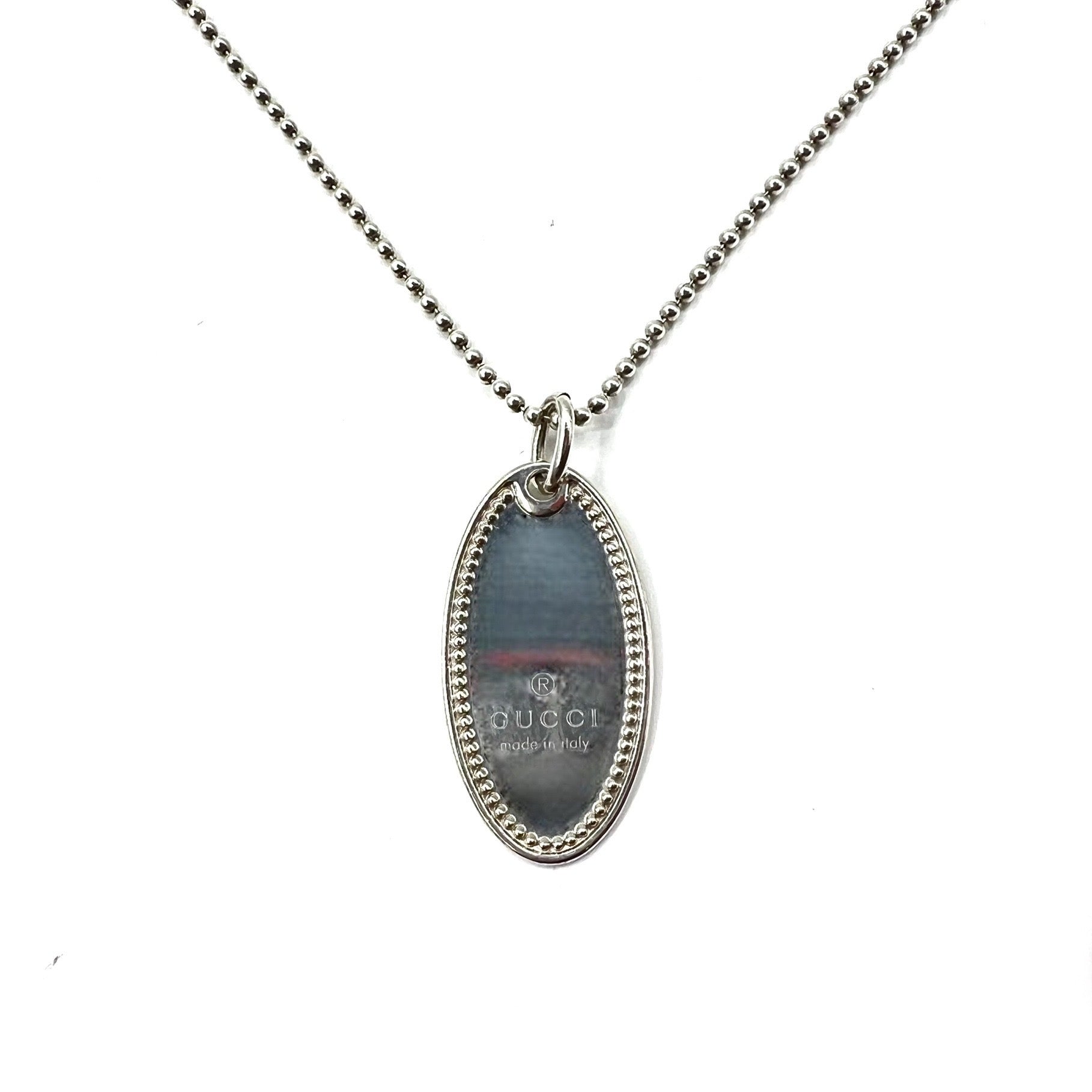 GUCCI オーバル プレート ネックレス SILVER 925 シルバー ミルグレイン ポールチェーン イタリア製