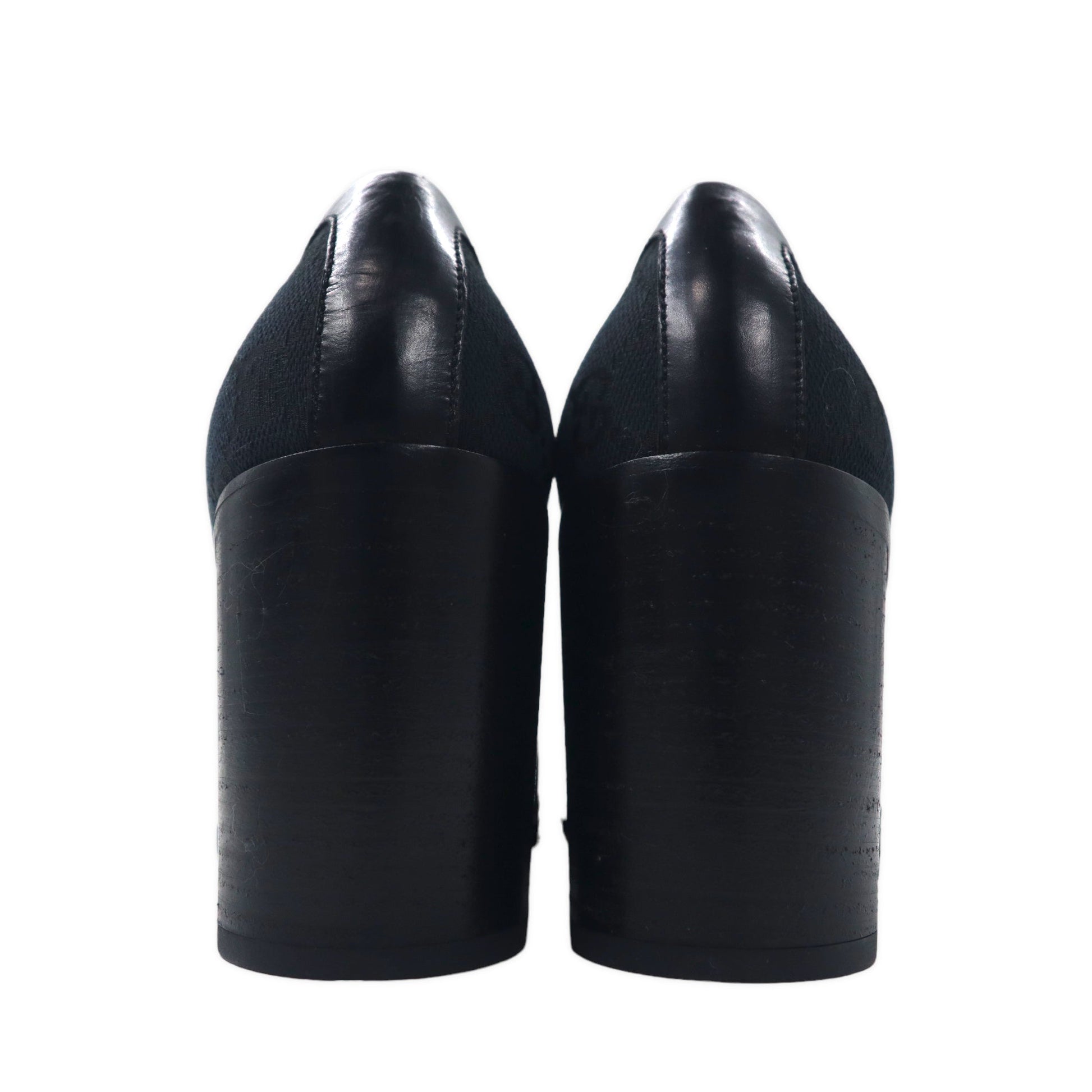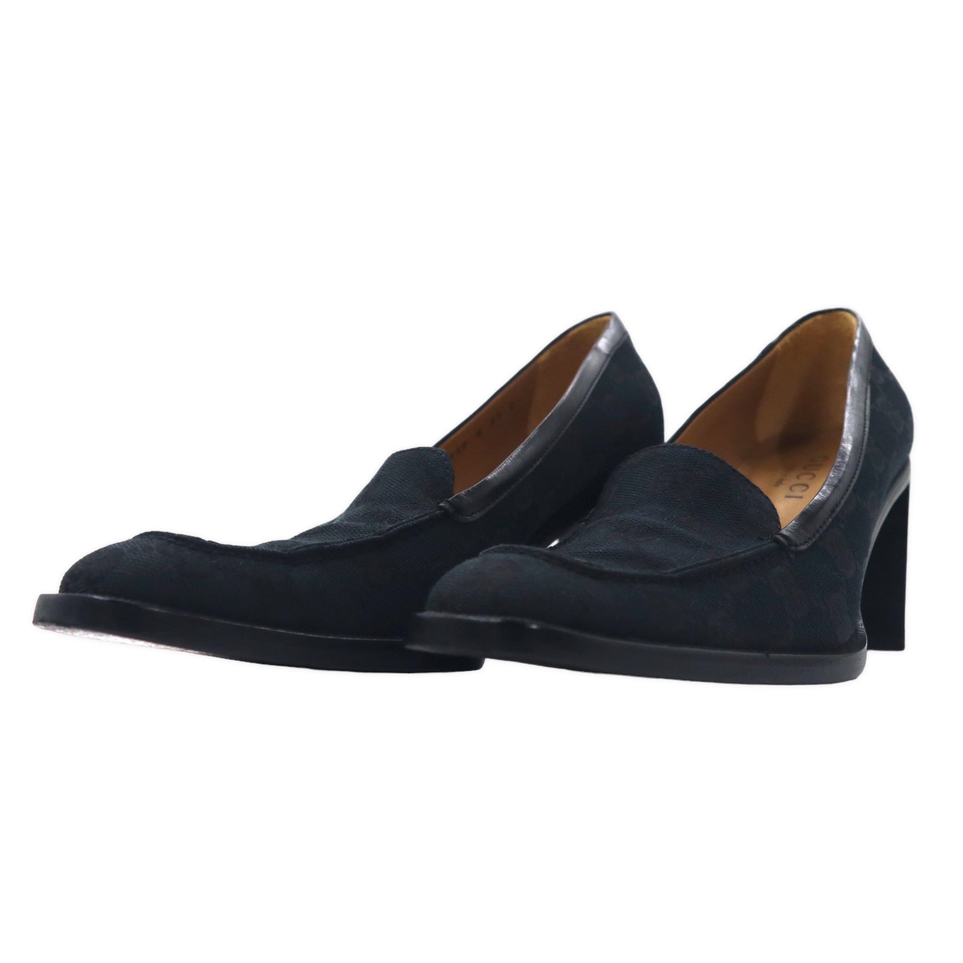 GUCCI チャンキーヒール パンプス 23.5cm ブラック 総柄 GGキャンバス 100 1118 イタリア製