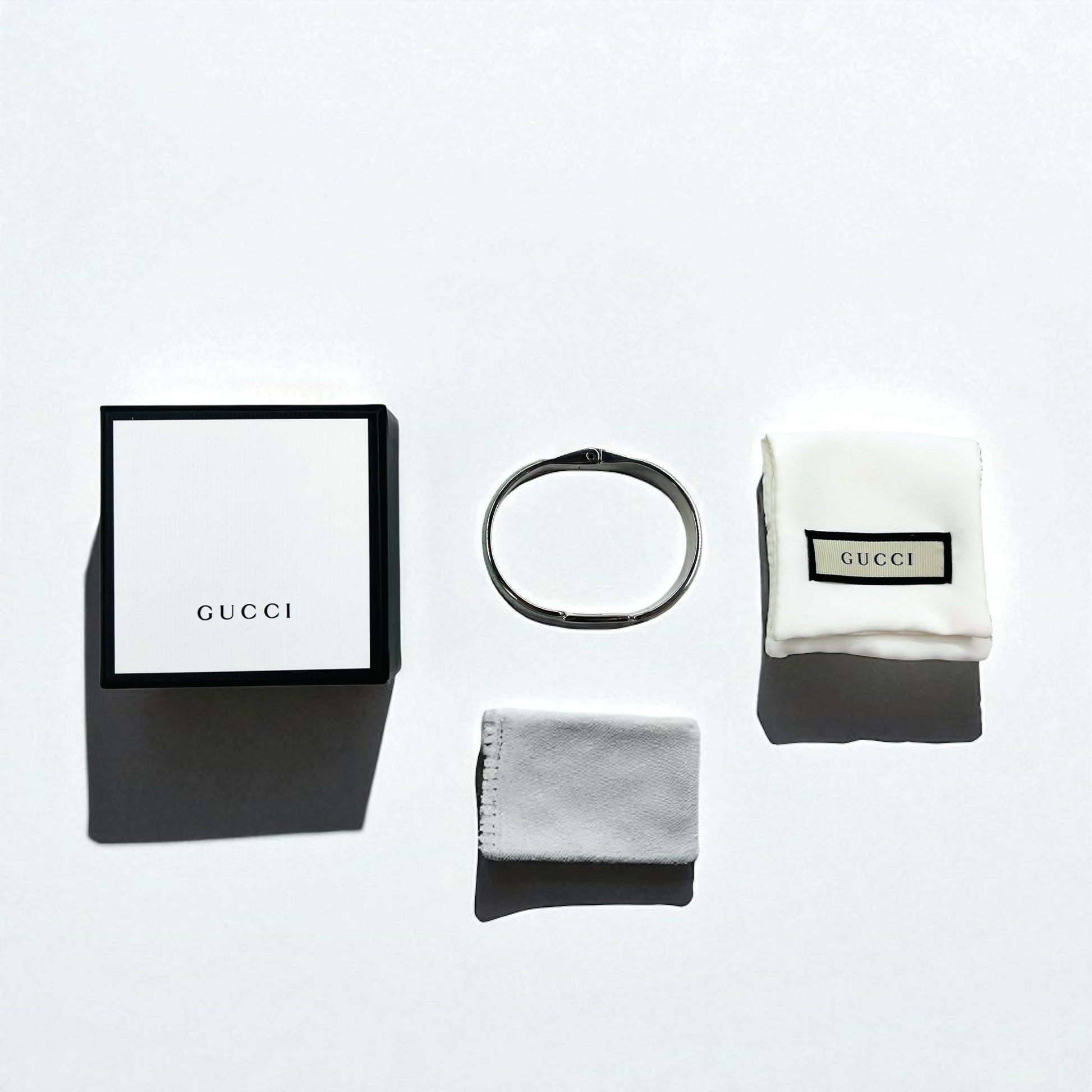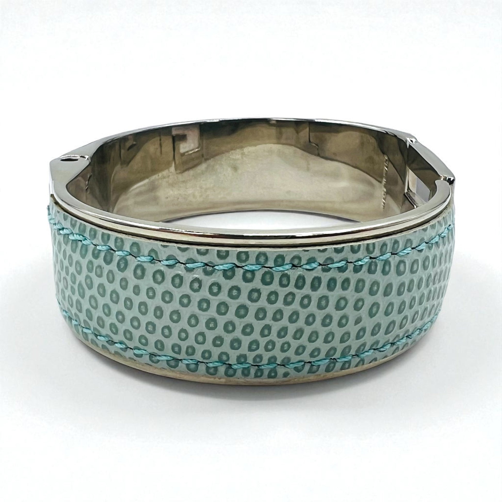 GUCCI リザード レザー Gロゴ ブレスレット バングル ブルー シルバー イタリア製
