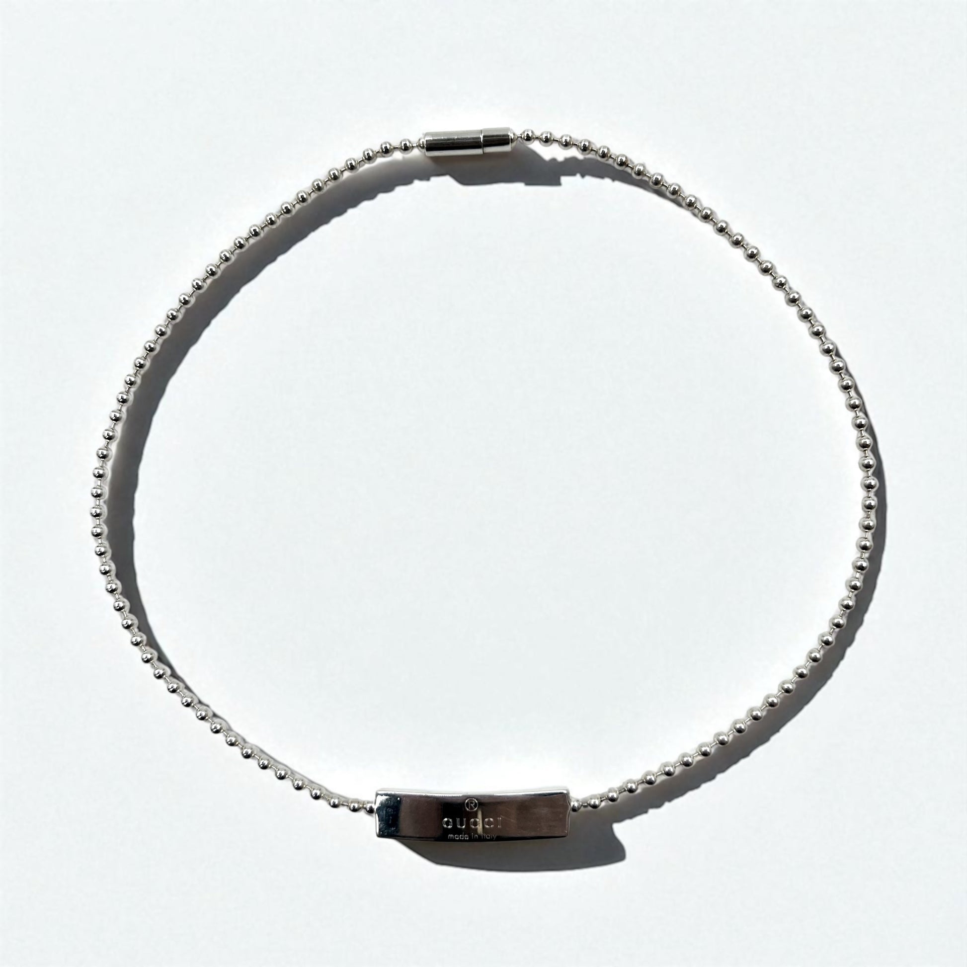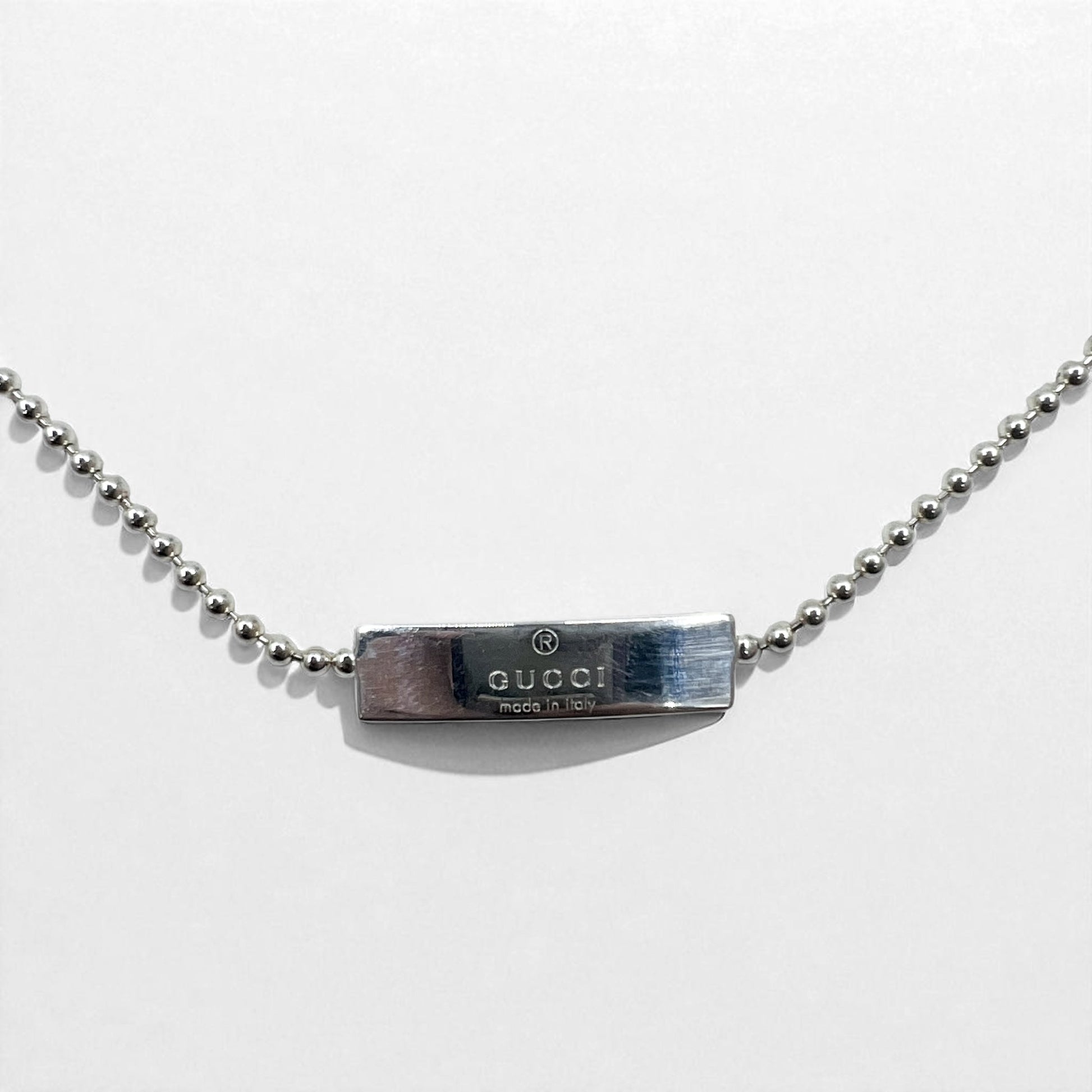 GUCCI ヴィンテージ ボールチェーン チョーカー ネックレス シルバー 925 ロゴプレート イタリア製
