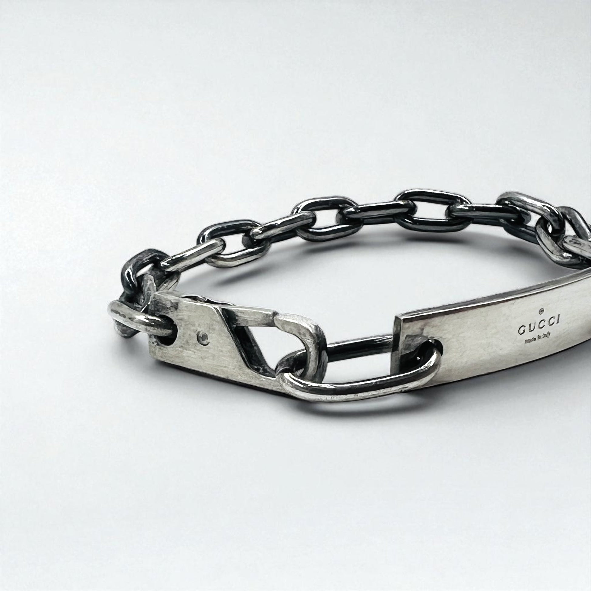 GUCCI ヴィンテージ ID シルバー チェーン ブレスレット SV925 ロゴプレート イタリア製