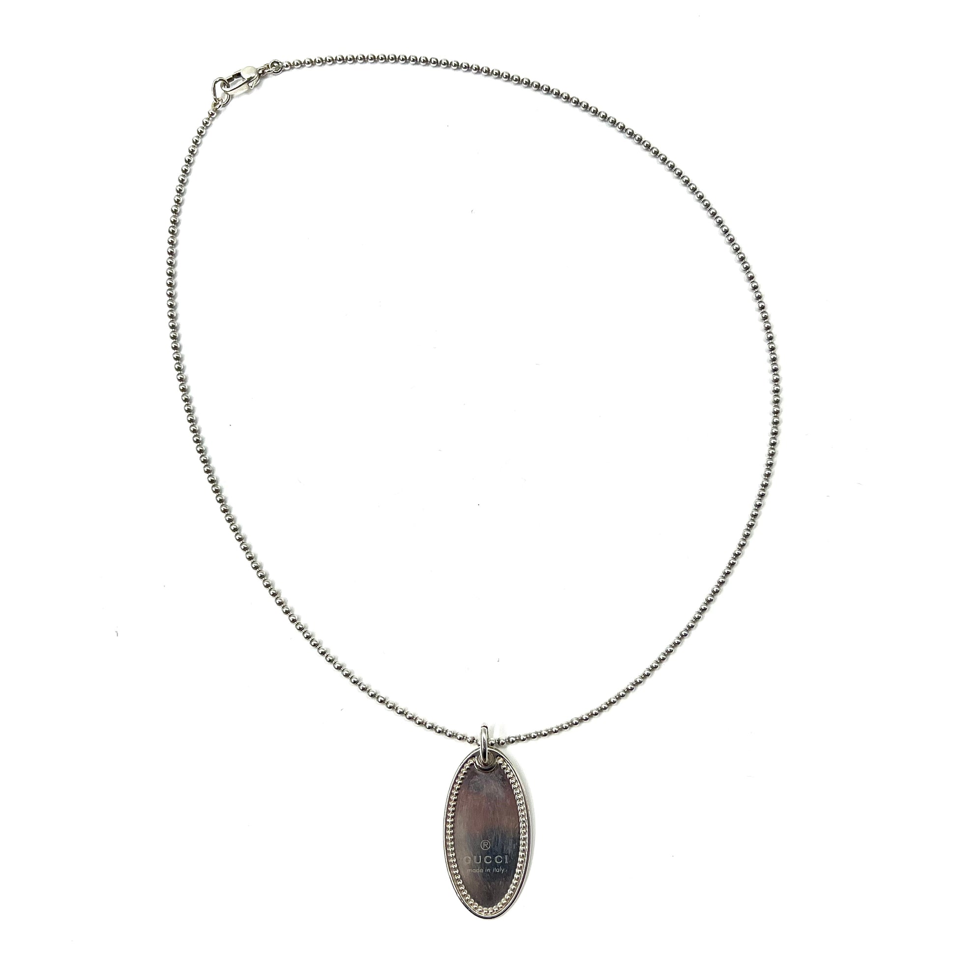GUCCI オーバル プレート ネックレス SILVER 925 シルバー ミルグレイン ポールチェーン イタリア製